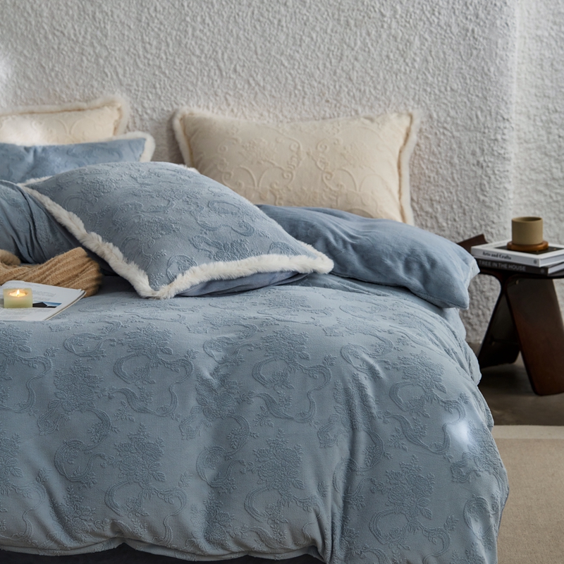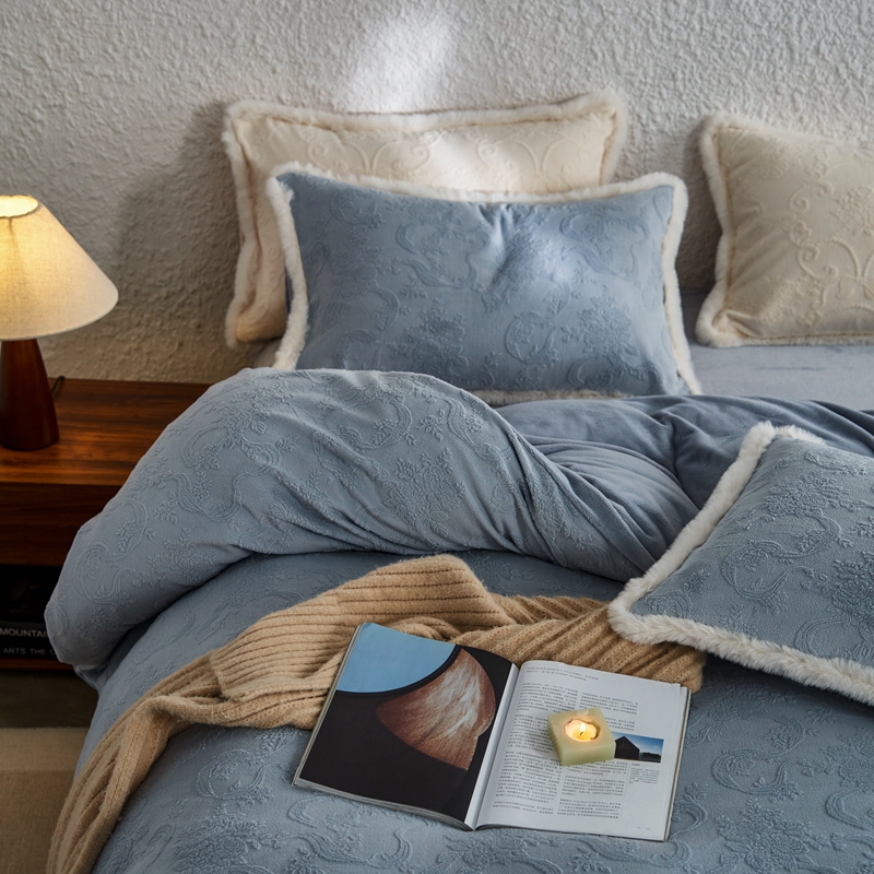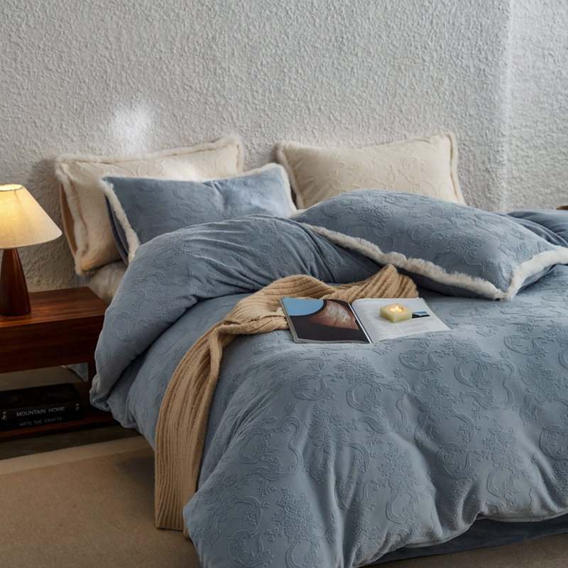 商品名称:时年家纺 2024新款240g全消光牛奶绒雕花系列四件套(充值会员优惠10元/套) 提花绒-蓝因