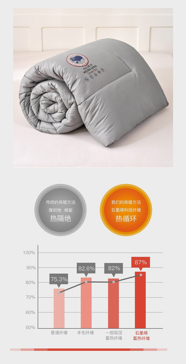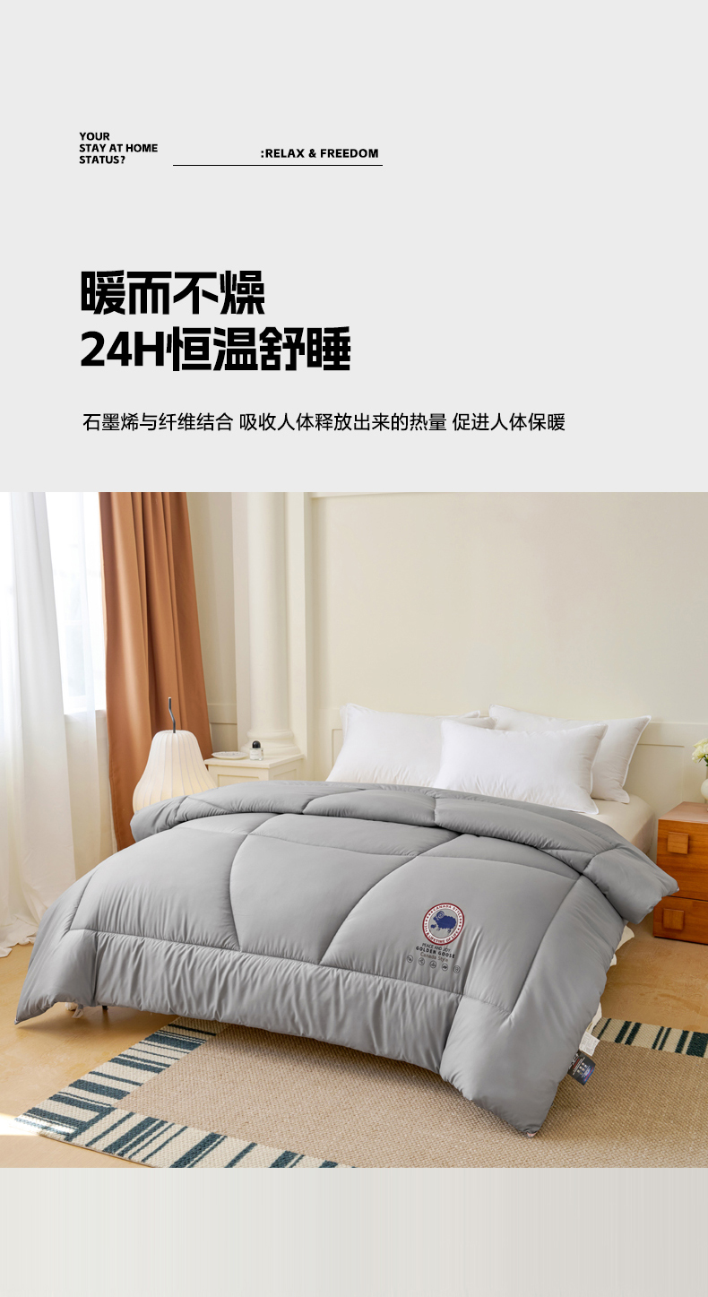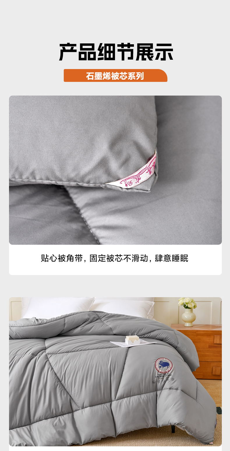 招财狼家纺 2024新款速暖石墨烯冬被被子被芯 灰色