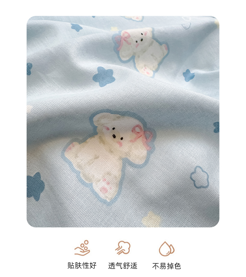 商品名称:曼之夏 2024新款全棉A类母婴级双层纱四件套 星星狗-兰