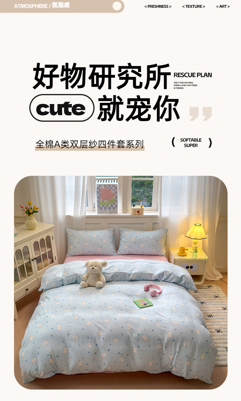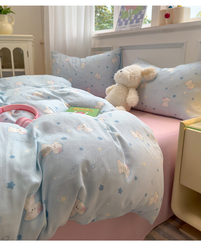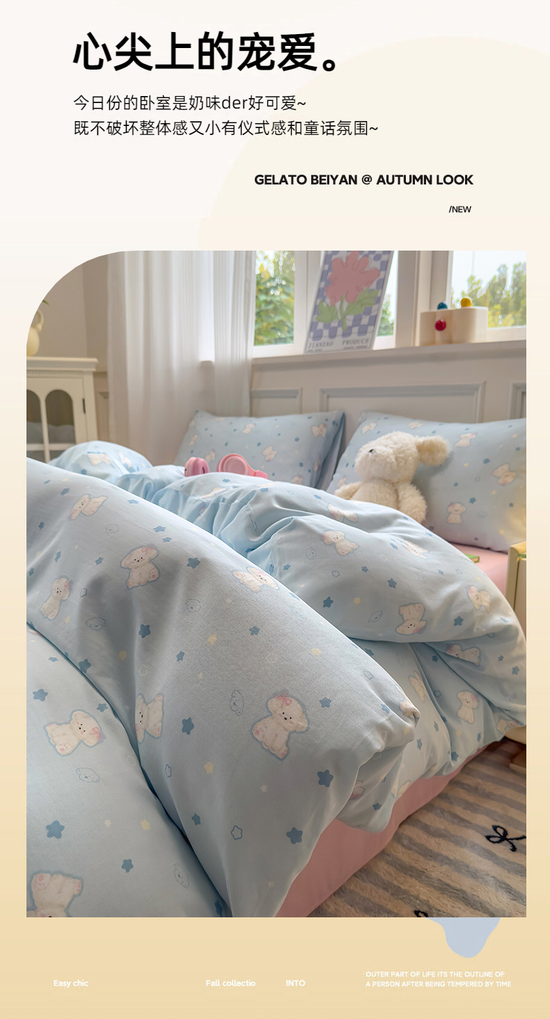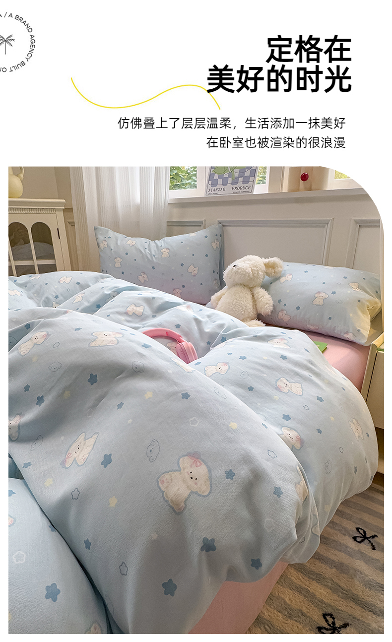 (总)曼之夏 2025新款原棉加厚磨毛印花四件套,比心,布鲁兔,春风十里,大都会,简兮,麦琪熊,麦语-灰,梦游记,眠时光,奇想,轻奢生活,塔维尔(米),甜心小熊,威斯丁,闲趣时光,意林(兰)