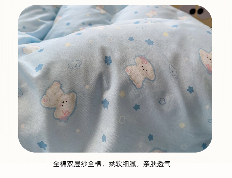 曼之夏 2024新款全棉A类母婴级双层纱四件套 星星狗-兰