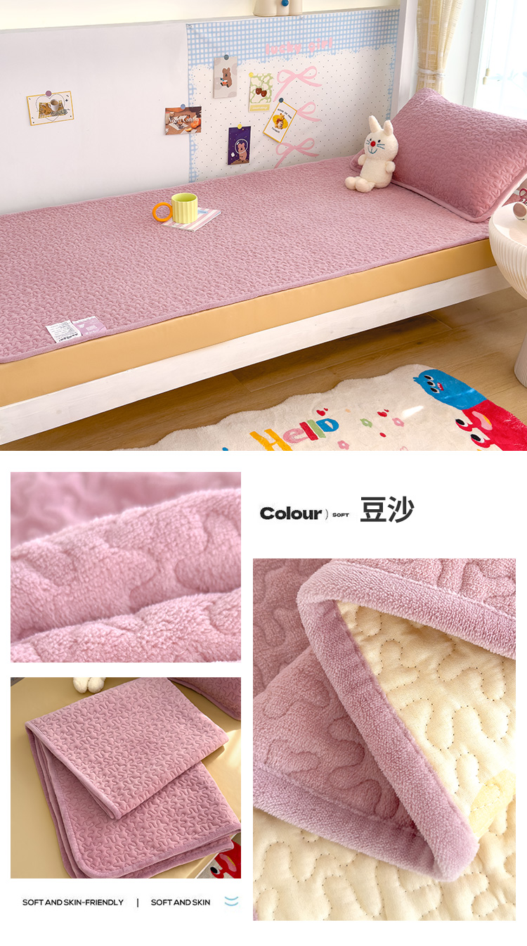 商品名称:赫梵茜 2024新款90✖200学生牛奶绒床盖豆沙