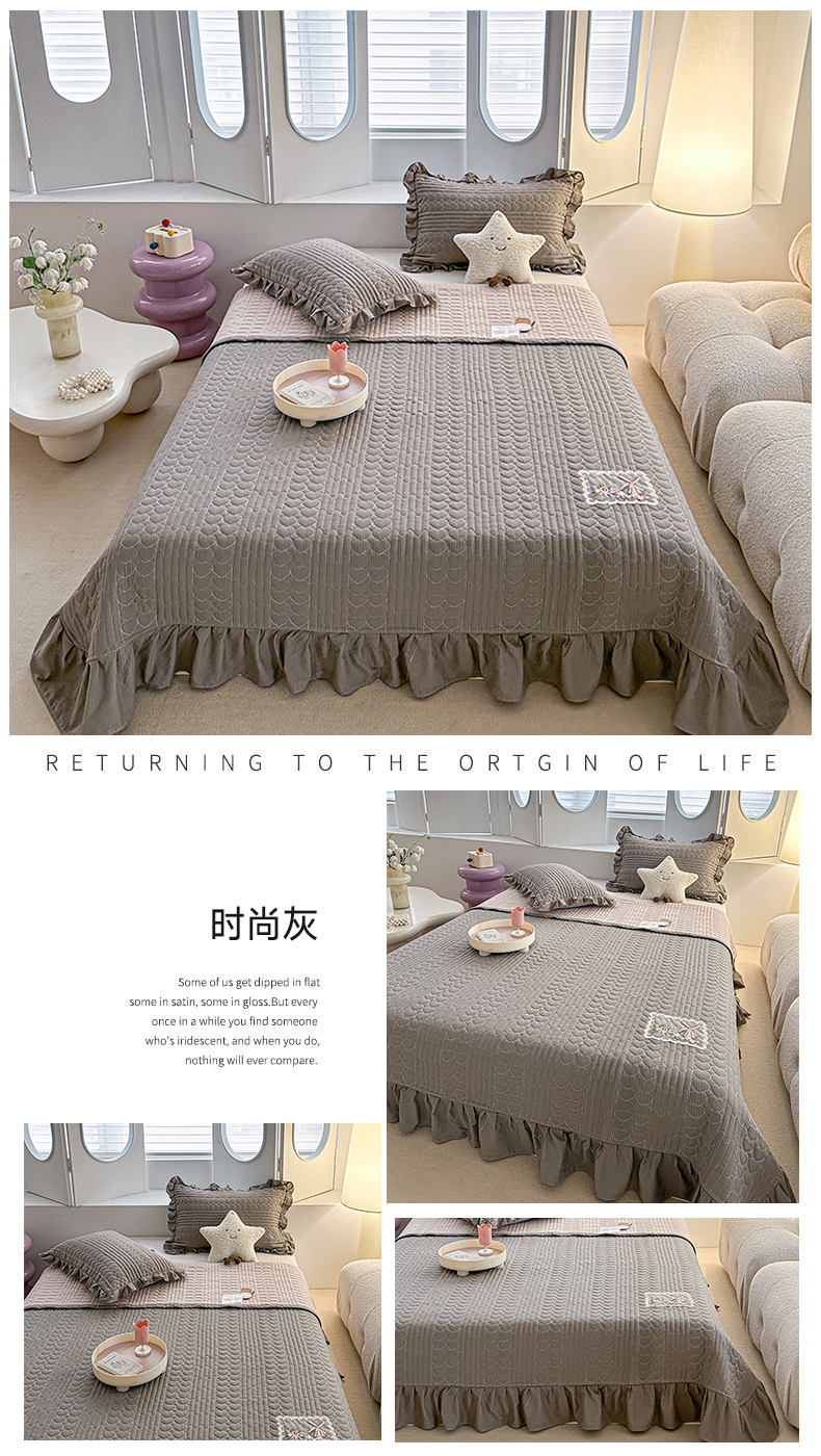 商品名称:源舜家纺 2025新款云感皱皱纱韩版纯色床盖三件套 时尚灰