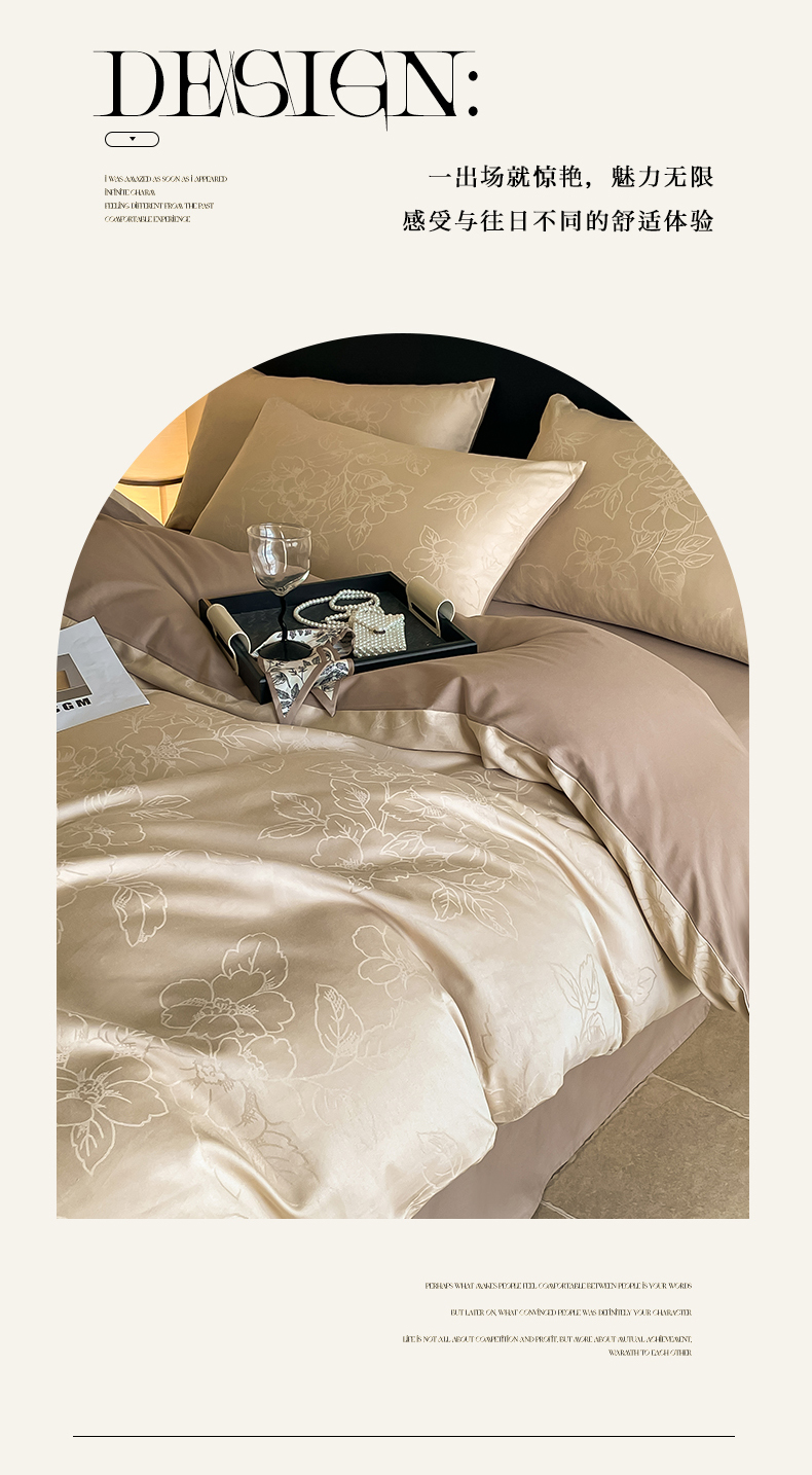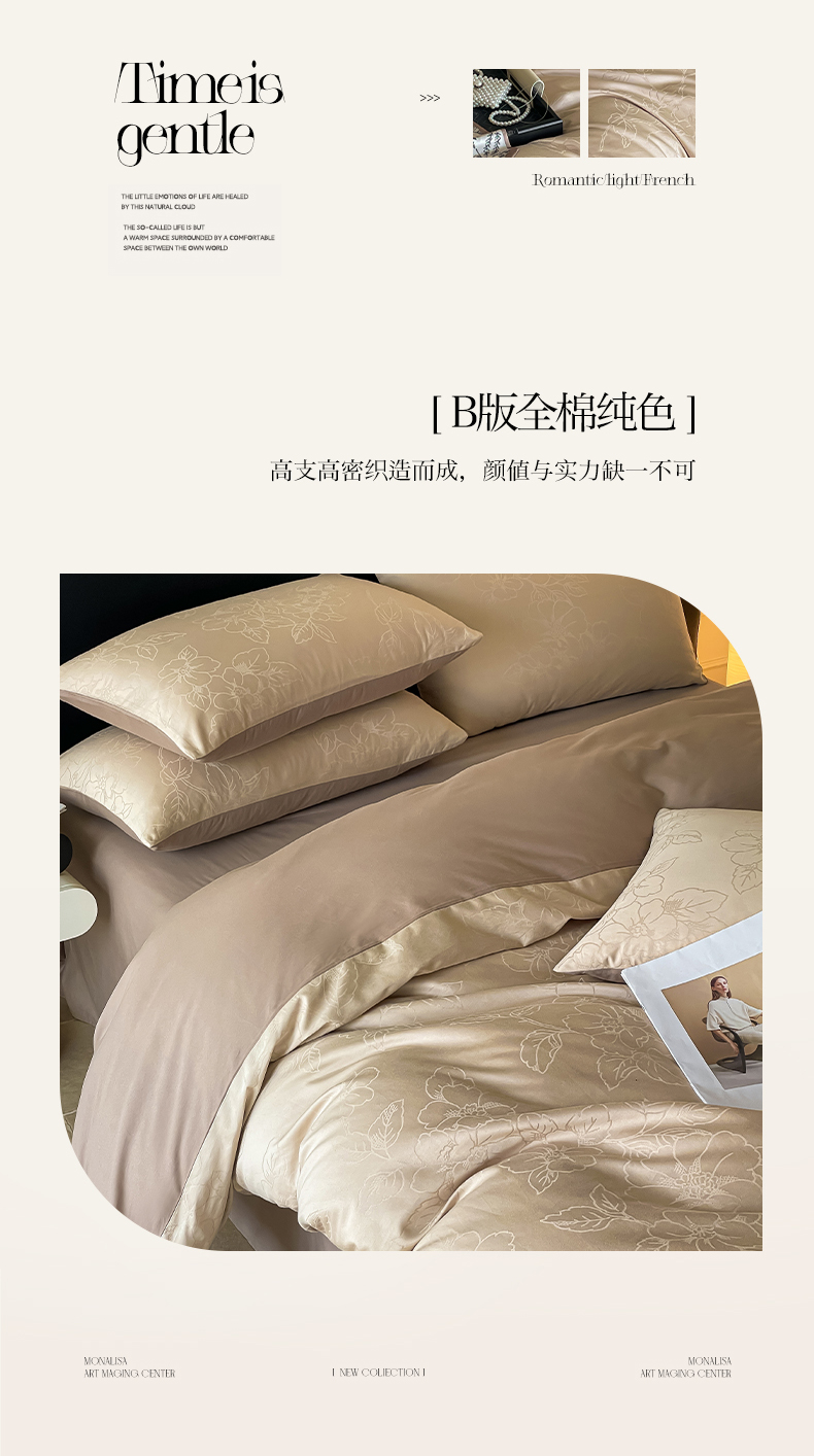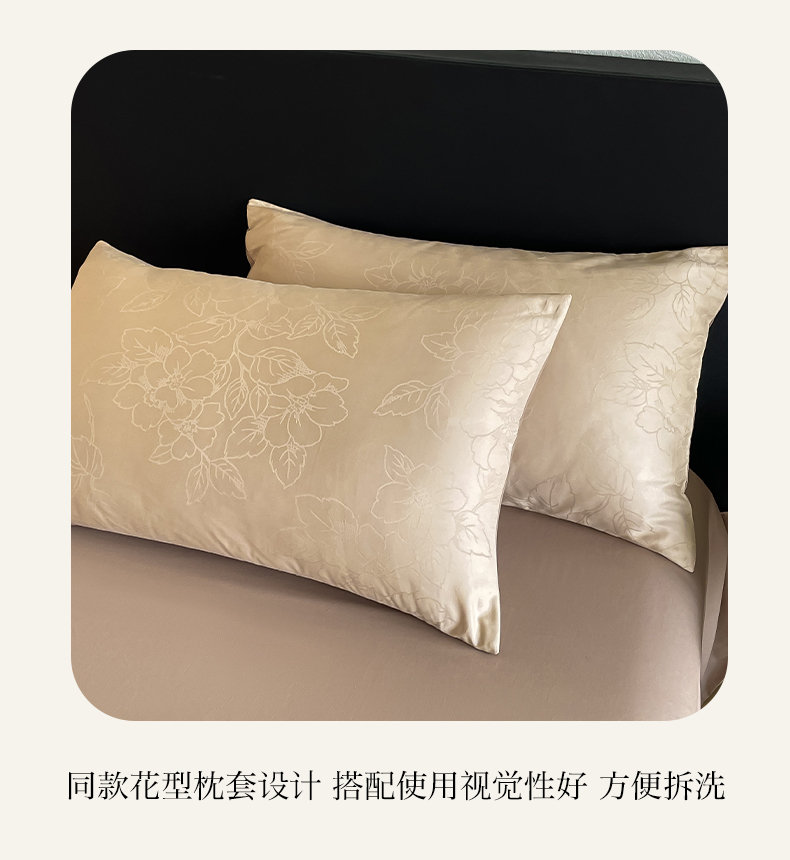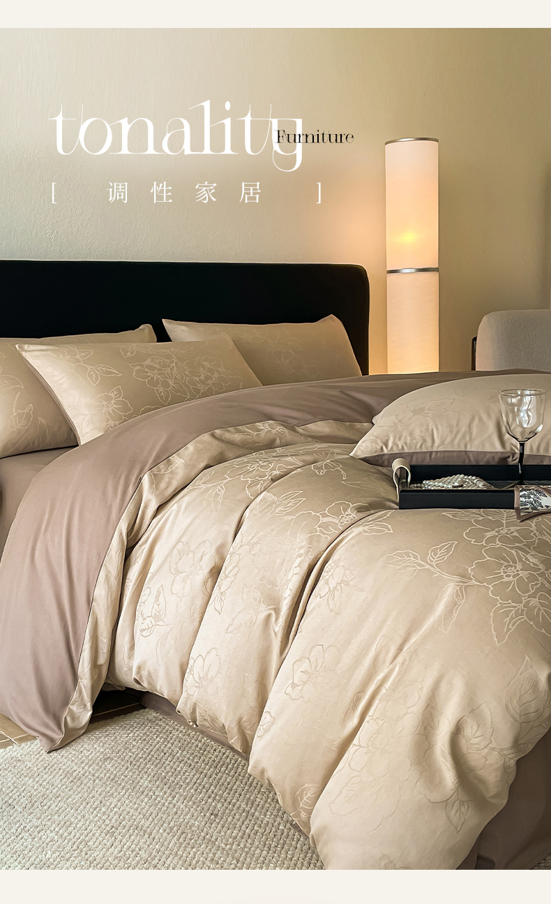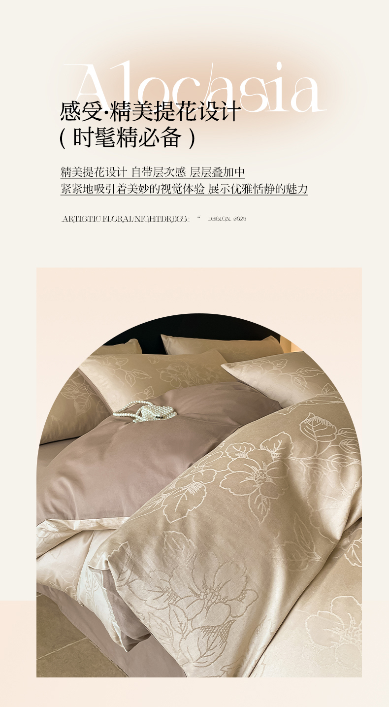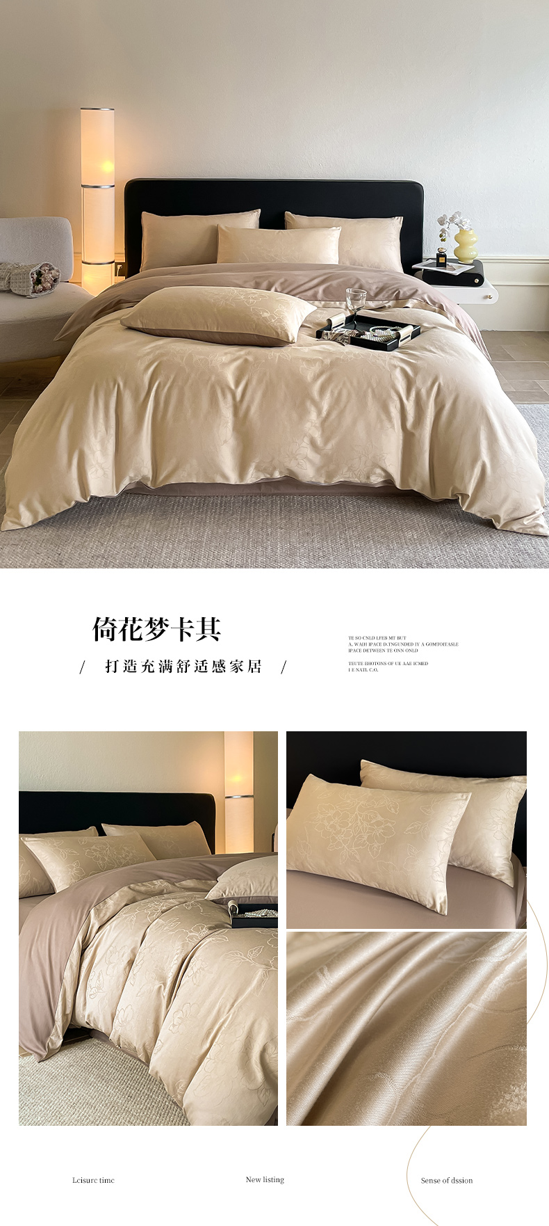 三朵家纺 2024新款全棉贡缎大提花四件套系列 倚花梦卡其