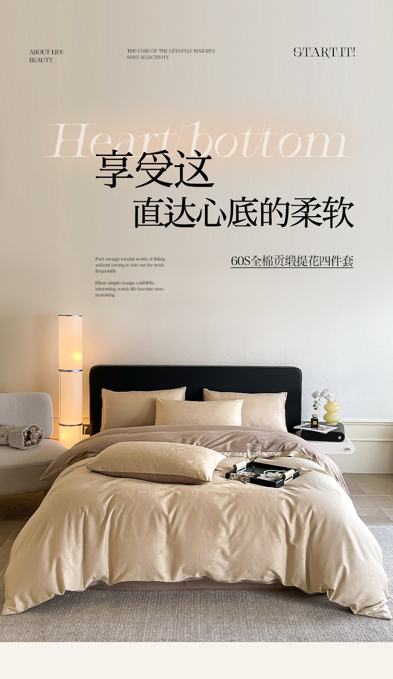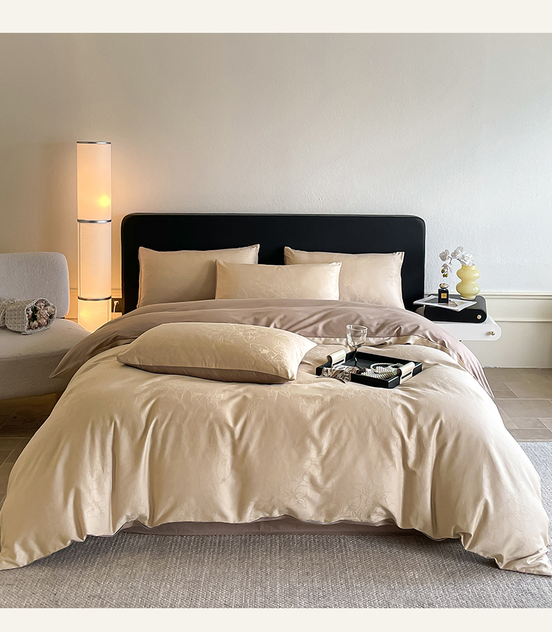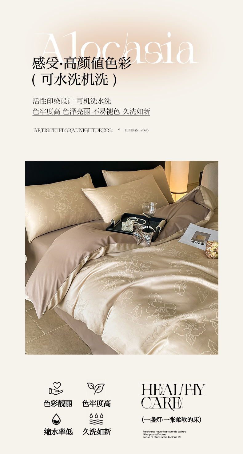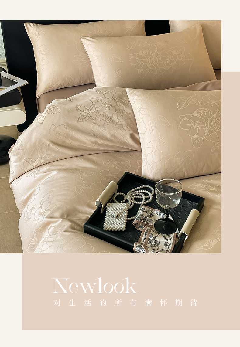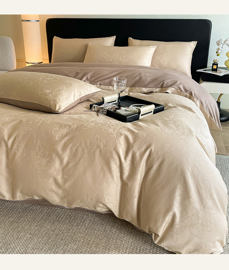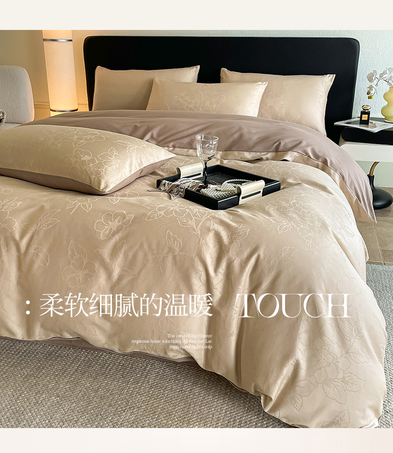 三朵家纺 2024新款全棉贡缎大提花四件套系列 倚花梦卡其
