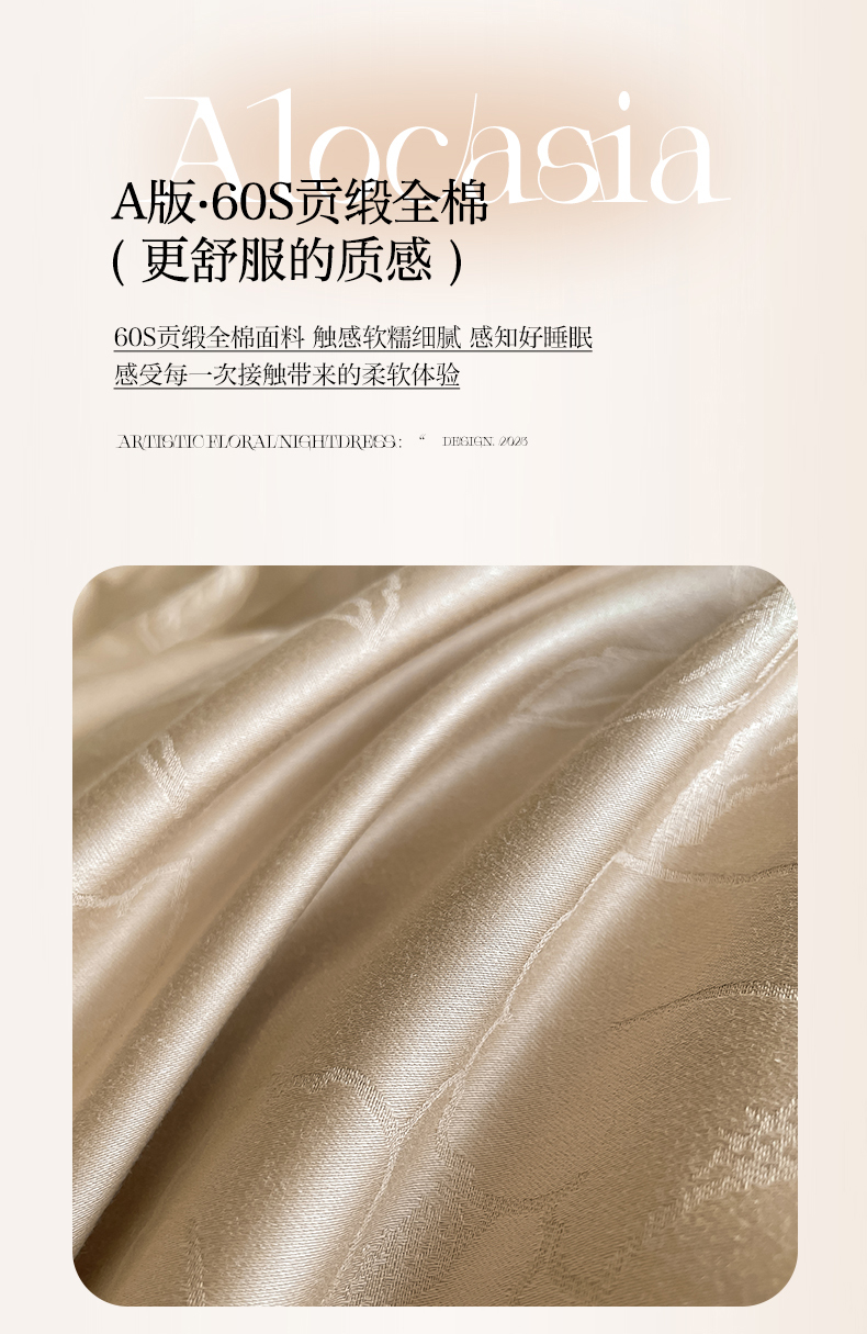 商品名称:三朵家纺 2024新款全棉贡缎大提花四件套系列 倚花梦卡其