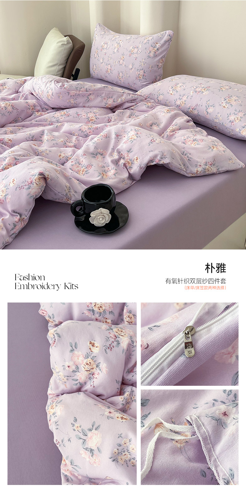 当前位置: 91家纺网 > 商品网购 > 床品套件 > 四件套 > 双层纱四件套 > 优选良品 2025针织棉双层纱四件套小碎花被套床单床笠款学生三件套新款直播爆款(第一批)朴雅