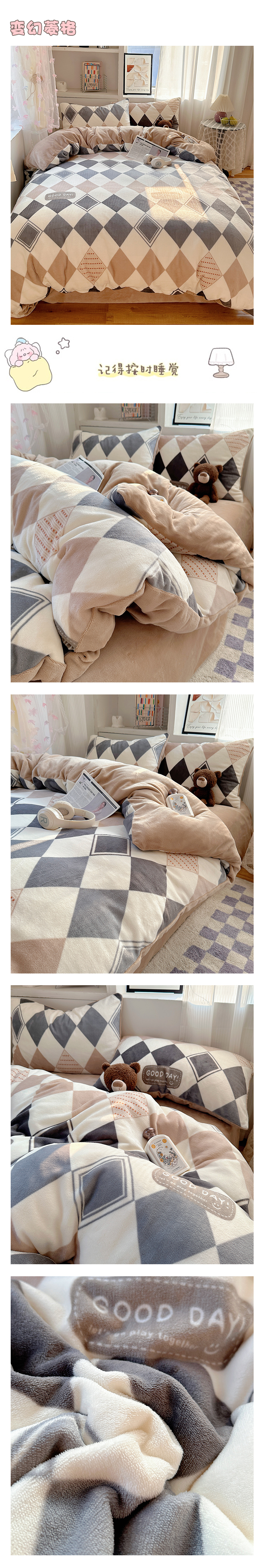 当前位置: 91家纺网 > 商品网购 > 床品套件 > 四件套 > 牛奶绒四件套 > (买家秀爆款不断货)A类母婴级双面牛奶绒四件套珊瑚绒四件套雪花绒四件套儿童高克重卡通牛奶绒四件套儿童 变幻菱格