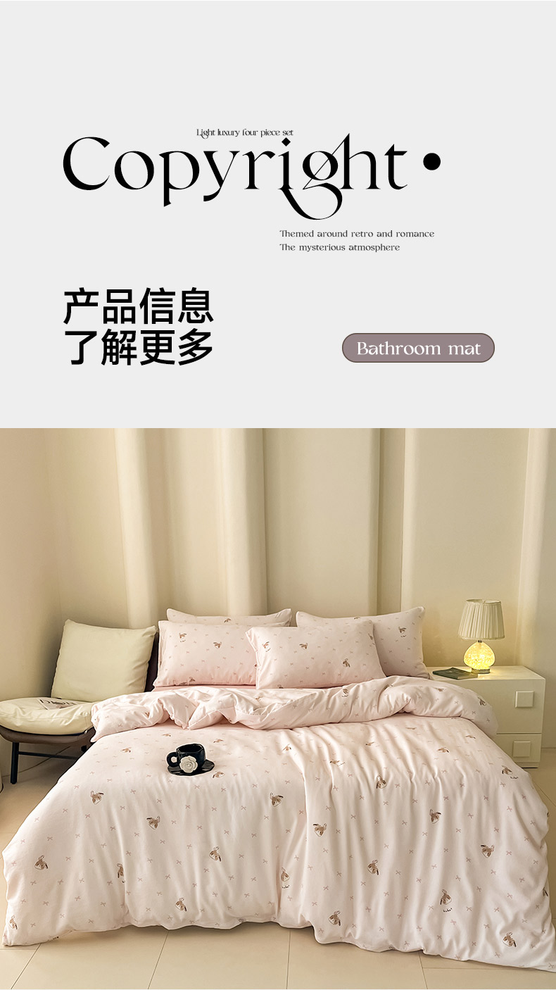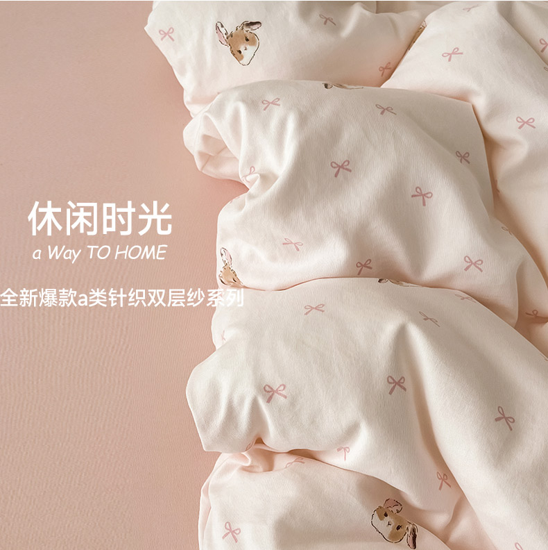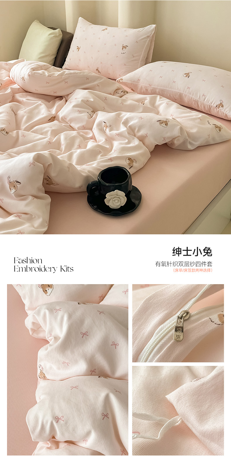 当前位置: 91家纺网 > 商品网购 > 床品套件 > 四件套 > 其它四件套 > 暖芯优选 2025新款针织棉双层纱四件套小碎花被套床单床笠款学生三件套新款直播热款-叠拍图-系列一 绅士小兔