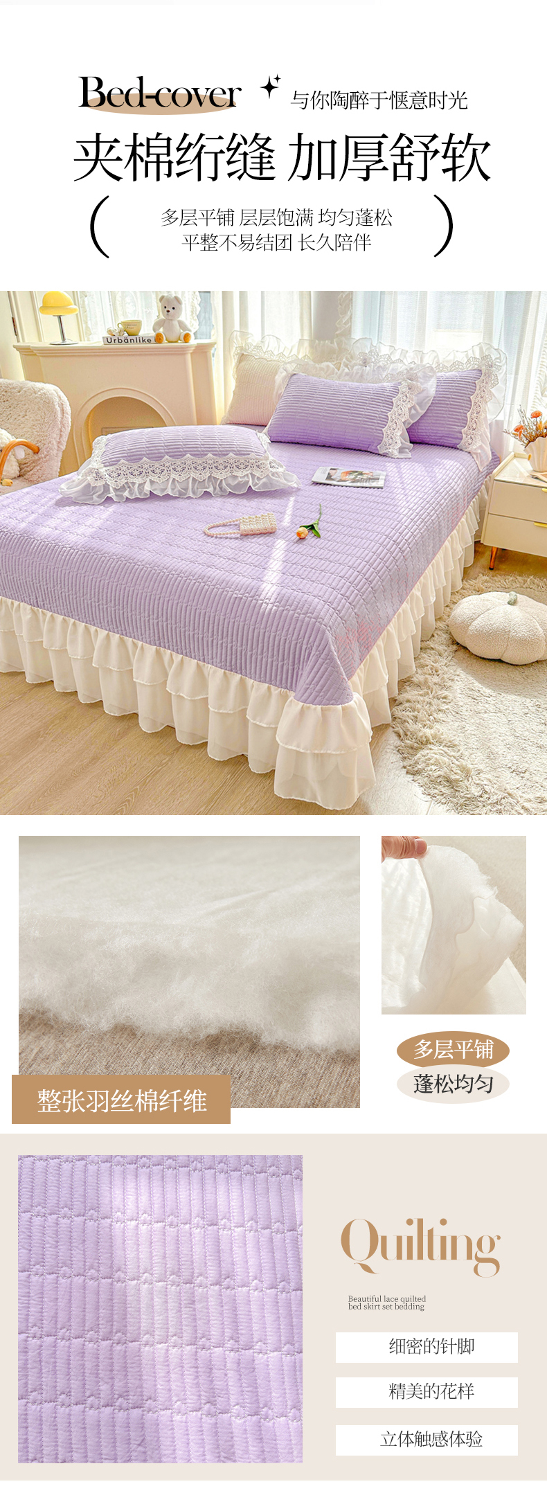 • 91家纺网 家纺一手货源 找家纺 锦格家纺 2025年新款A类全棉夹棉床盖-洛香忆梦 洛香忆梦-优雅紫
