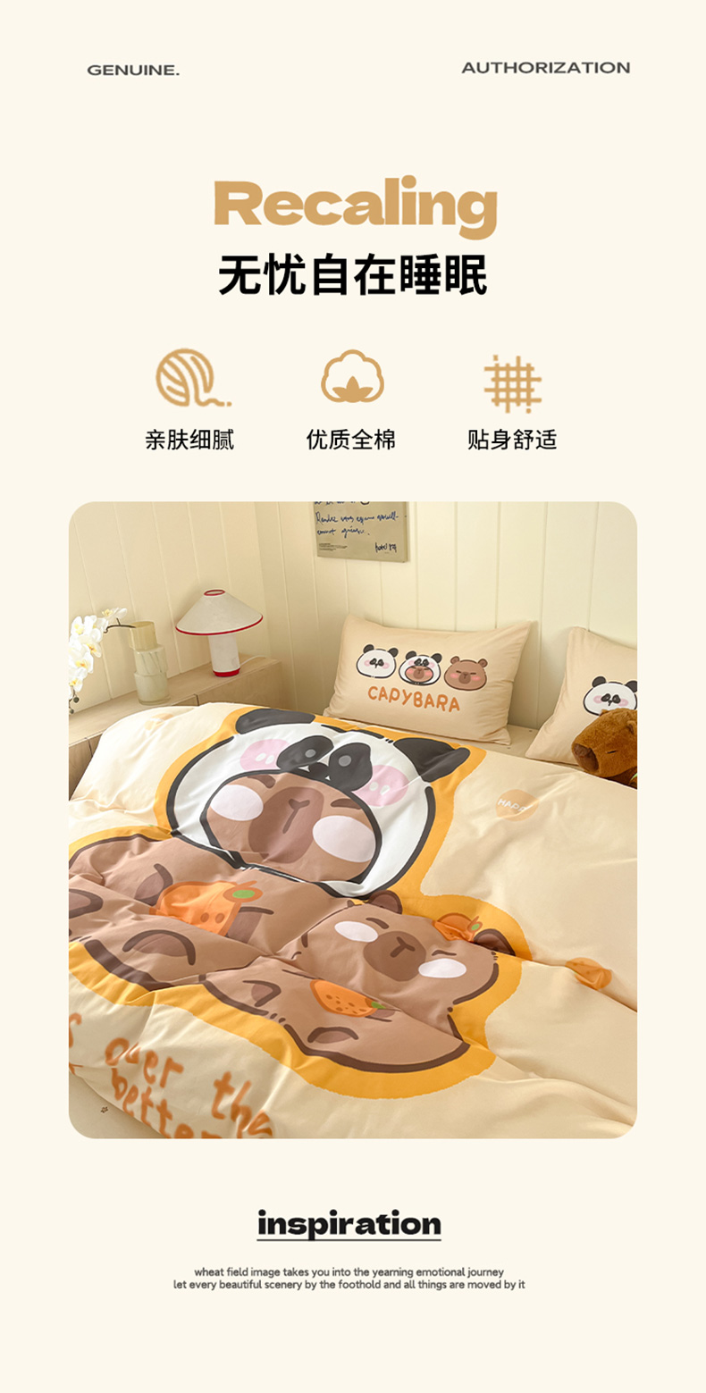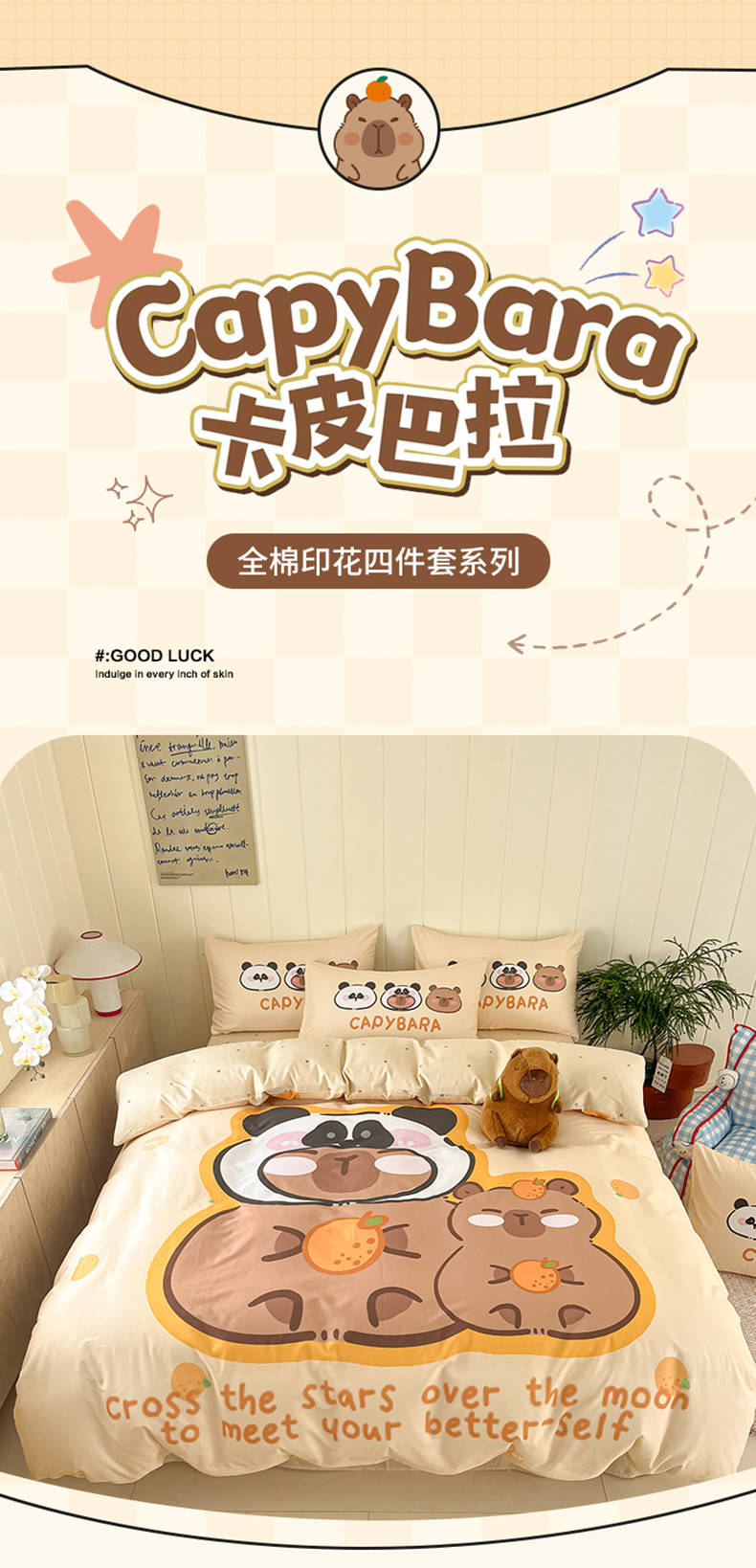 当前位置: 91家纺网 > 商品网购 > 床品套件 > 四件套 > 全棉普通四件套 > 博雅 2025新款卡皮巴拉系列全棉印花四件套 太空卡皮巴拉