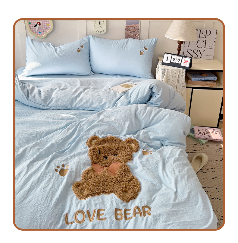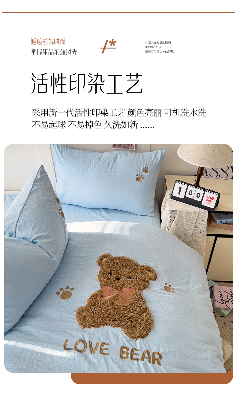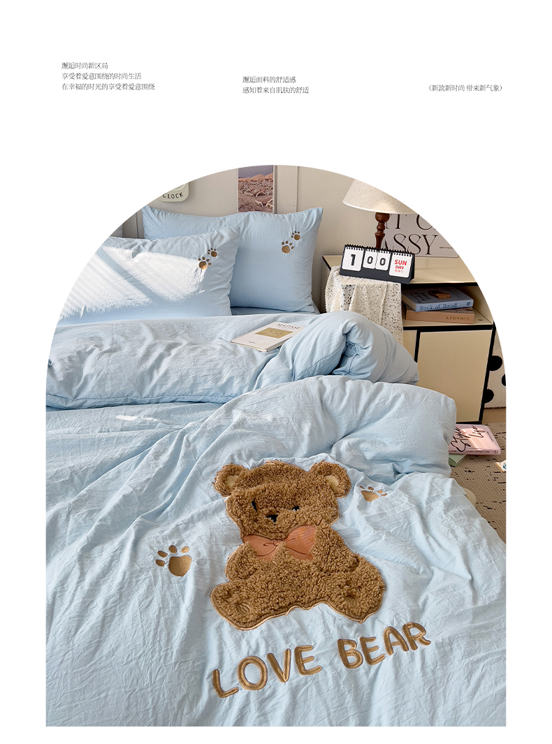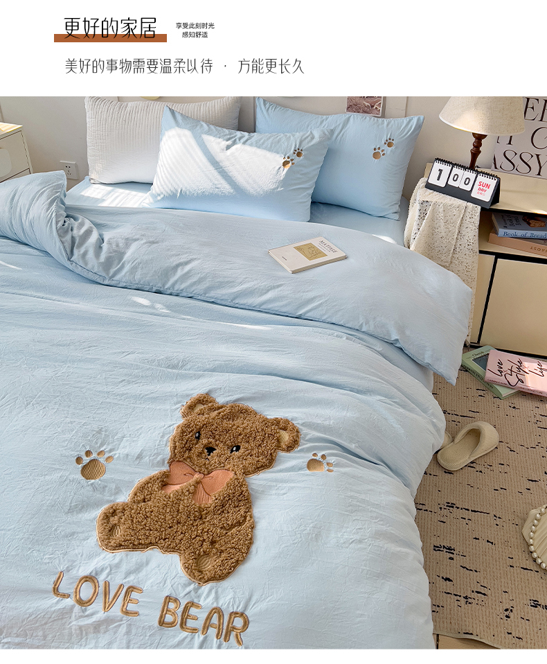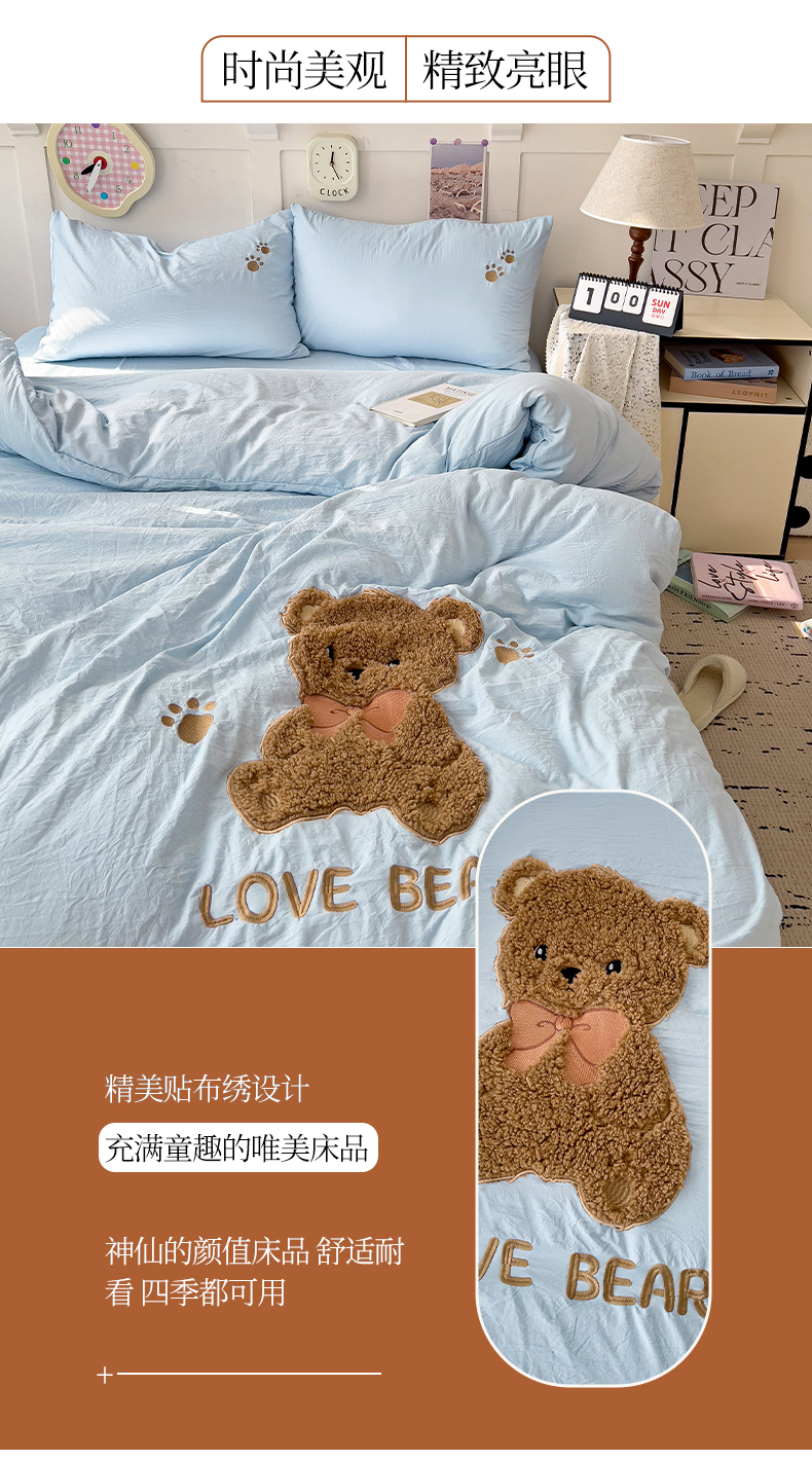 当前位置: 91家纺网 > 商品网购 > 床品套件 > 四件套 > 毛巾绣四件套 > 水墨江南 2025新款超柔水洗棉贴布绣四件套 抱抱熊蓝