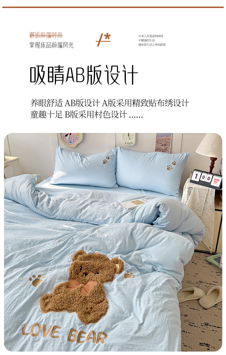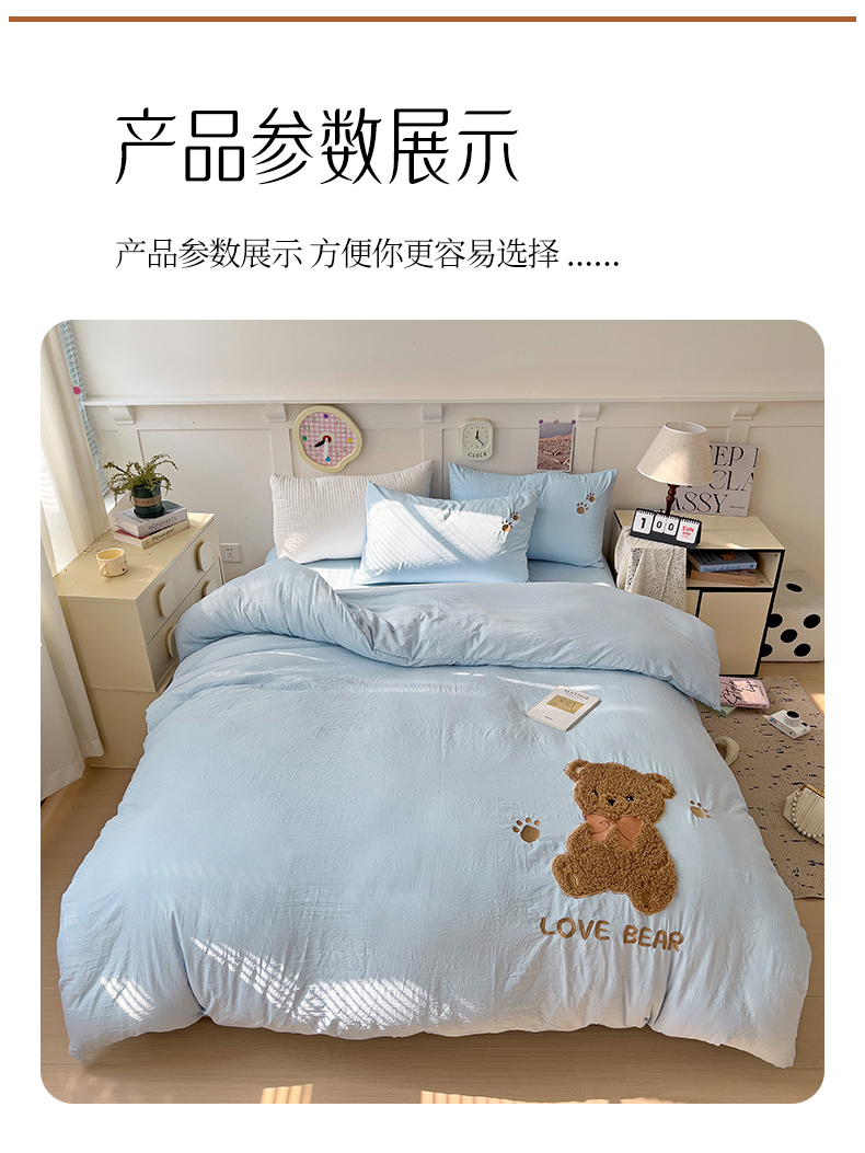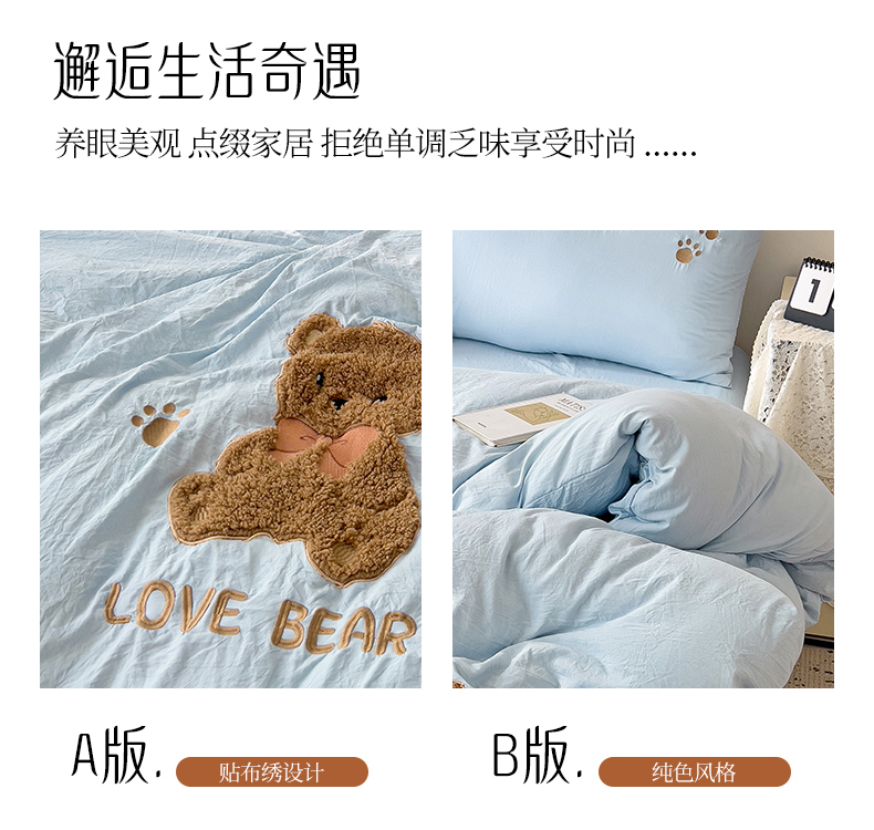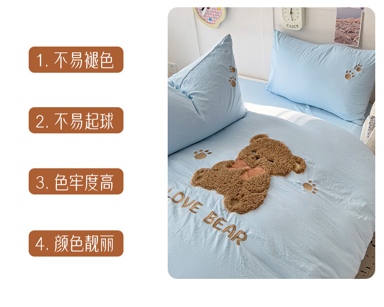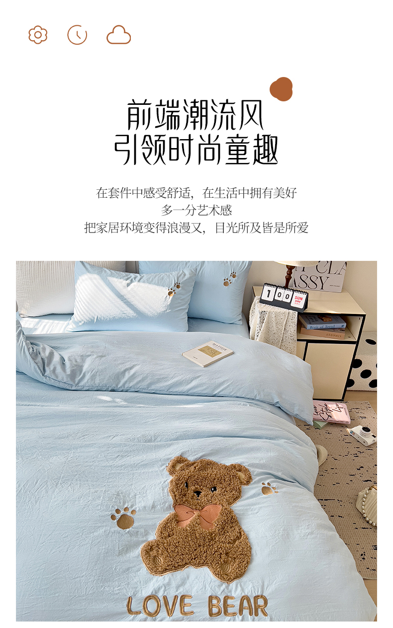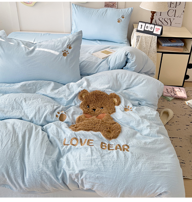当前位置: 91家纺网 > 商品网购 > 床品套件 > 四件套 > 毛巾绣四件套 > 水墨江南 2025新款超柔水洗棉贴布绣四件套 抱抱熊蓝