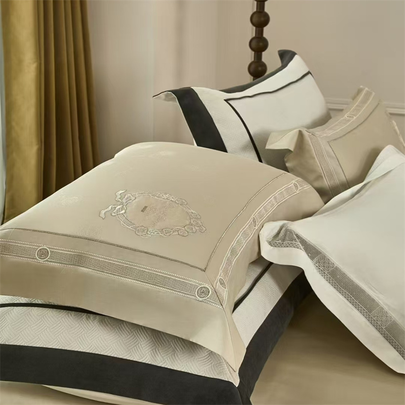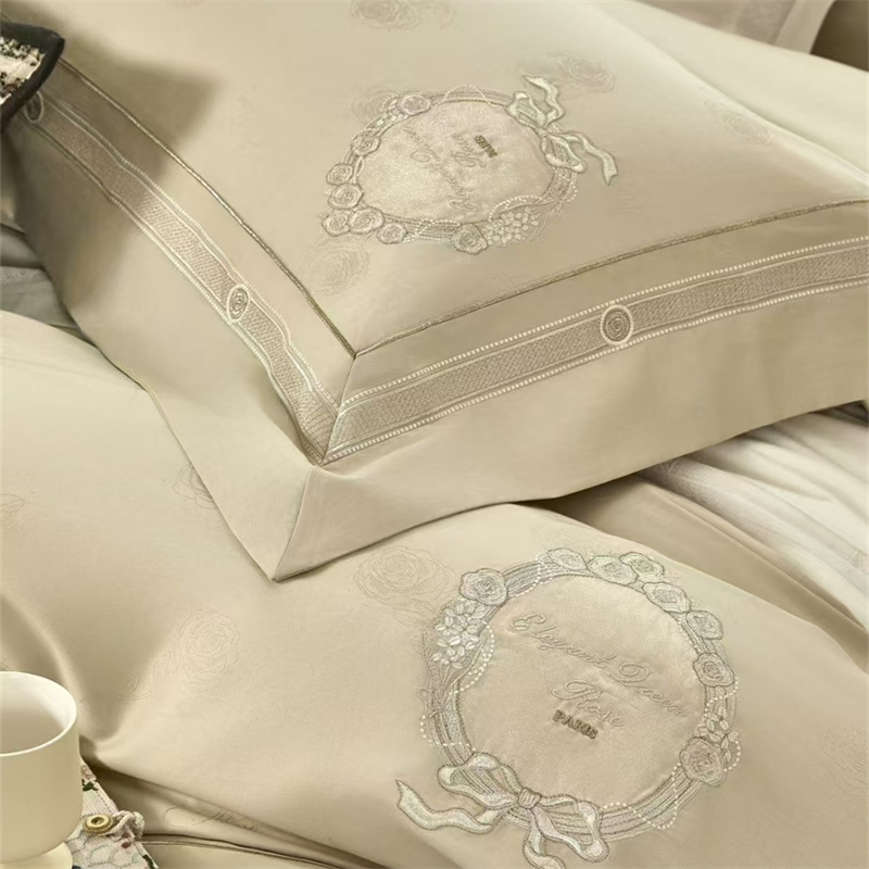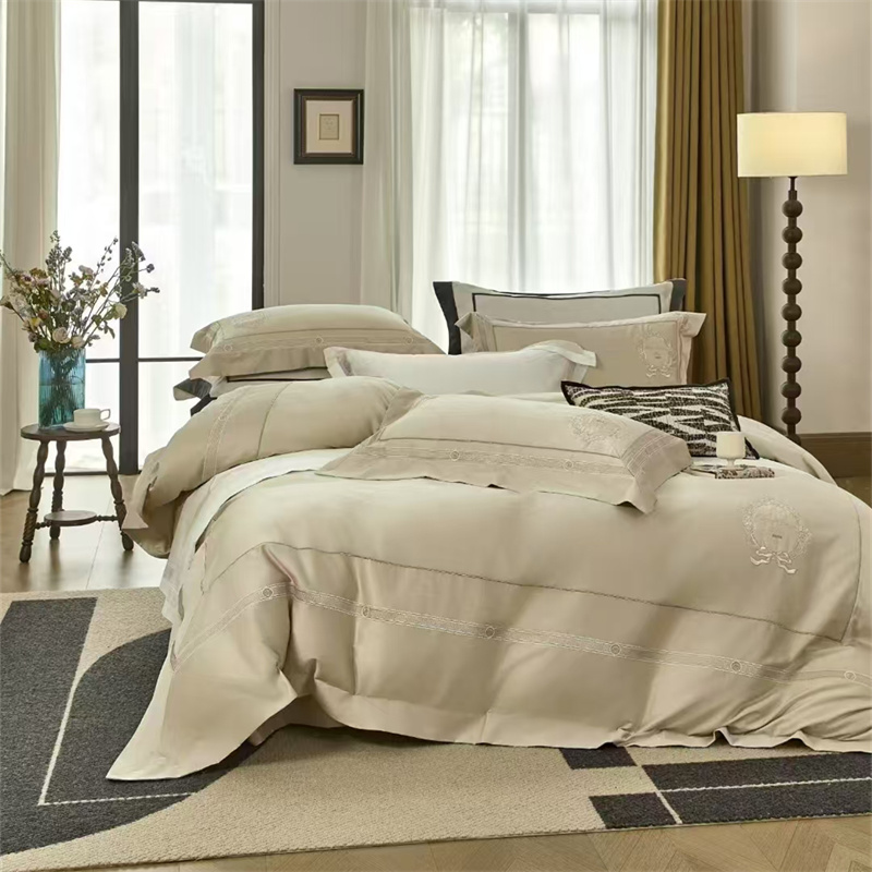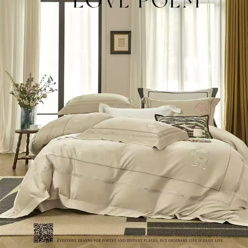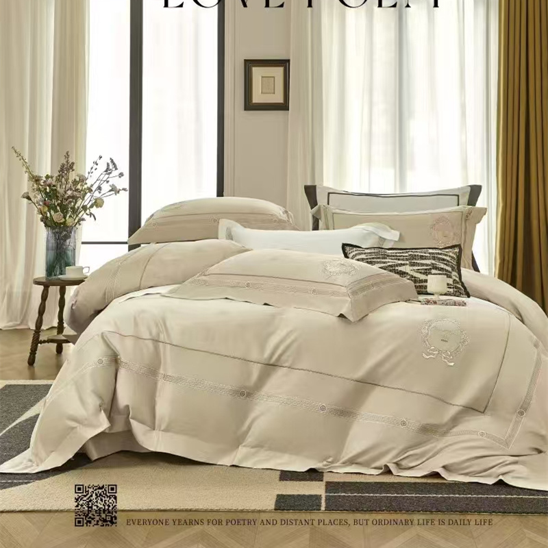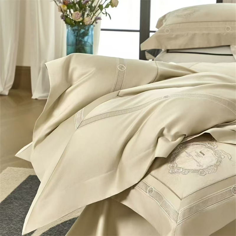 (总)玖玖爱家纺 2023新款120支贡缎长绒棉刺绣梦柔系列四件套,梦柔-香槟金,梦柔-香橙桔,梦柔-高级灰,梦柔-水蓝,梦柔-芙蓉玉