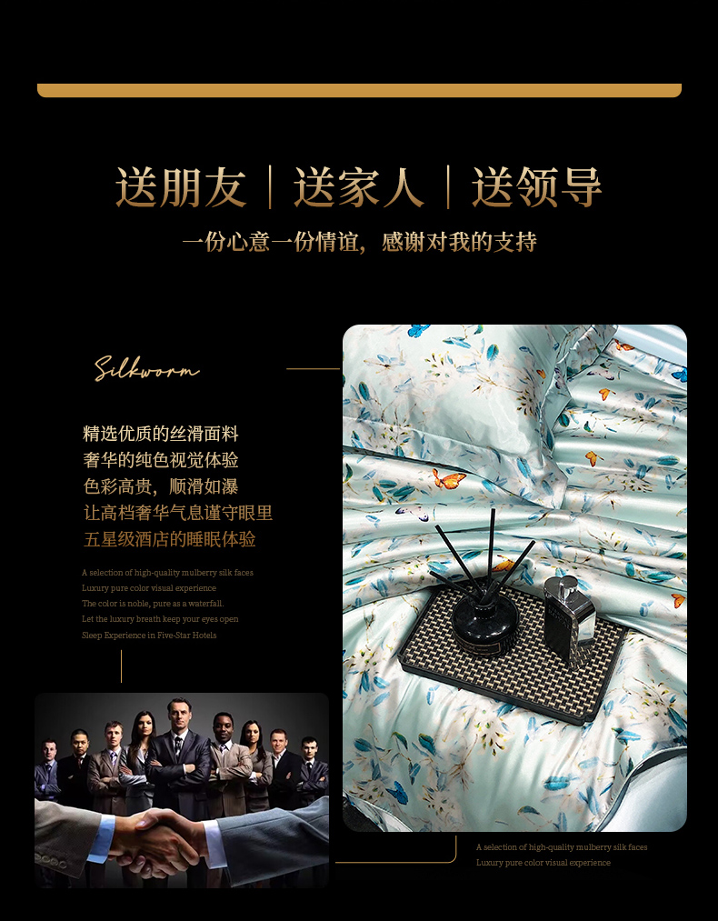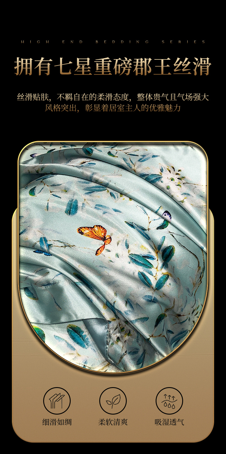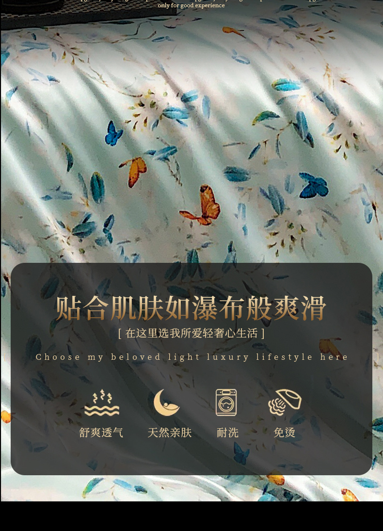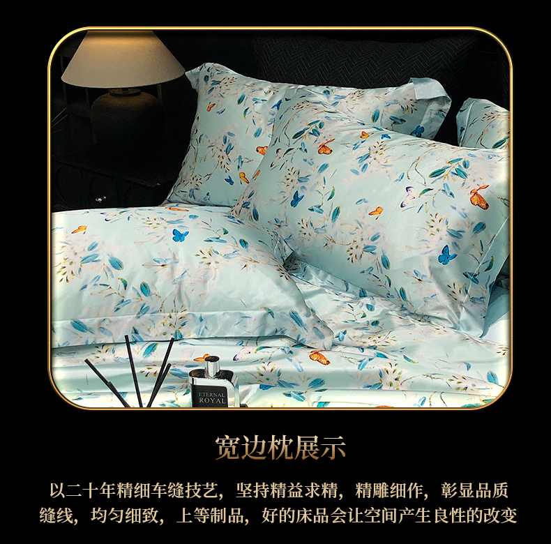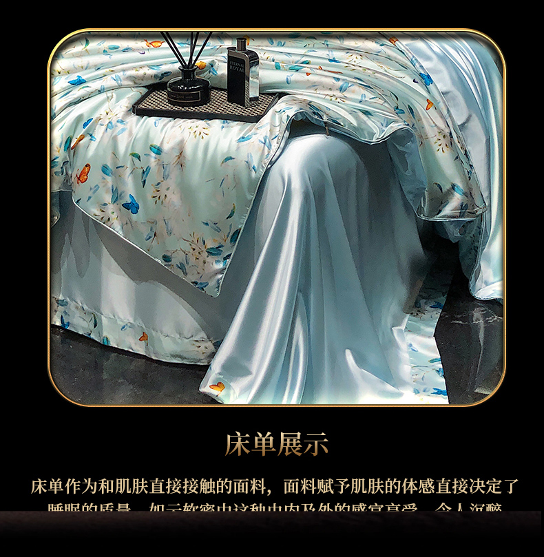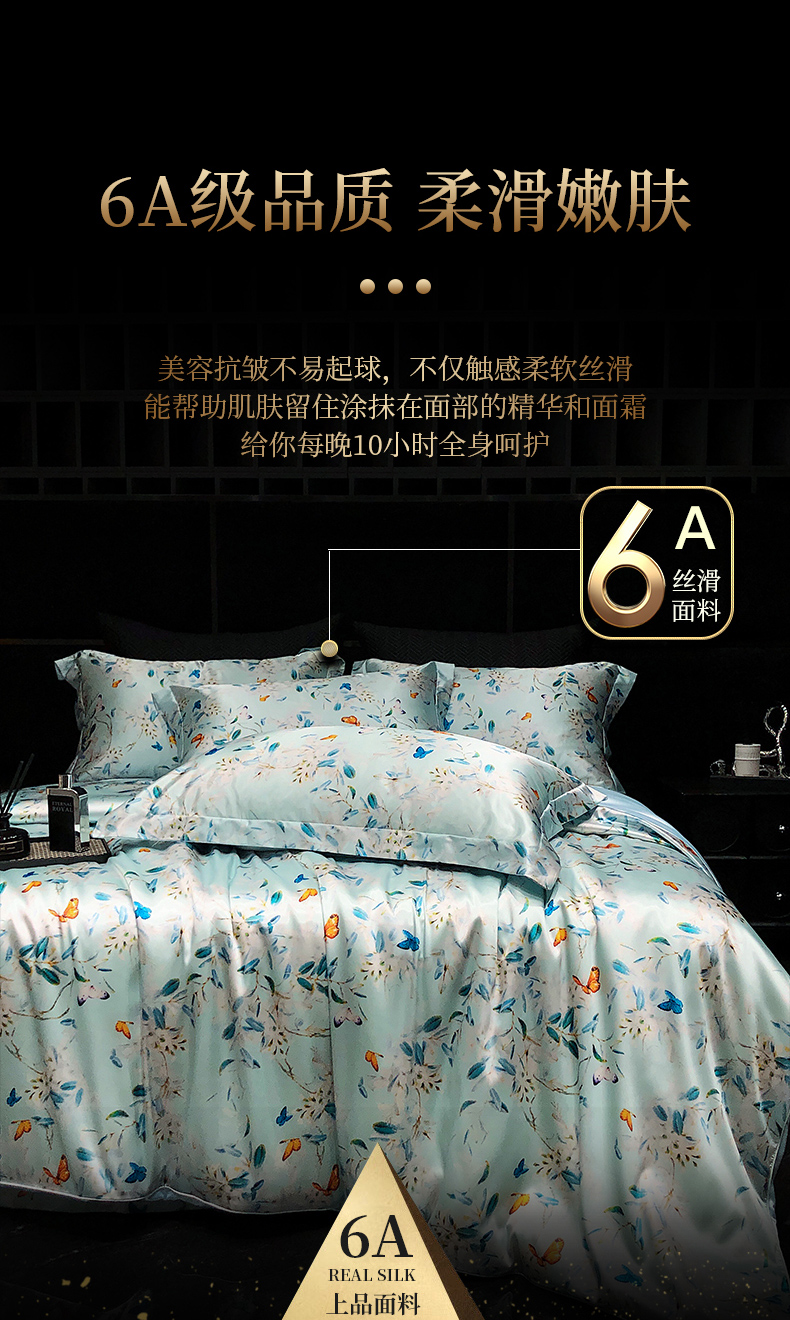 商品名称:黄鹂鸟 2025新款高端轻奢丝滑裸睡丝绸数码印花水洗真丝天丝四件套系列 -风格三 缤纷蝶梦