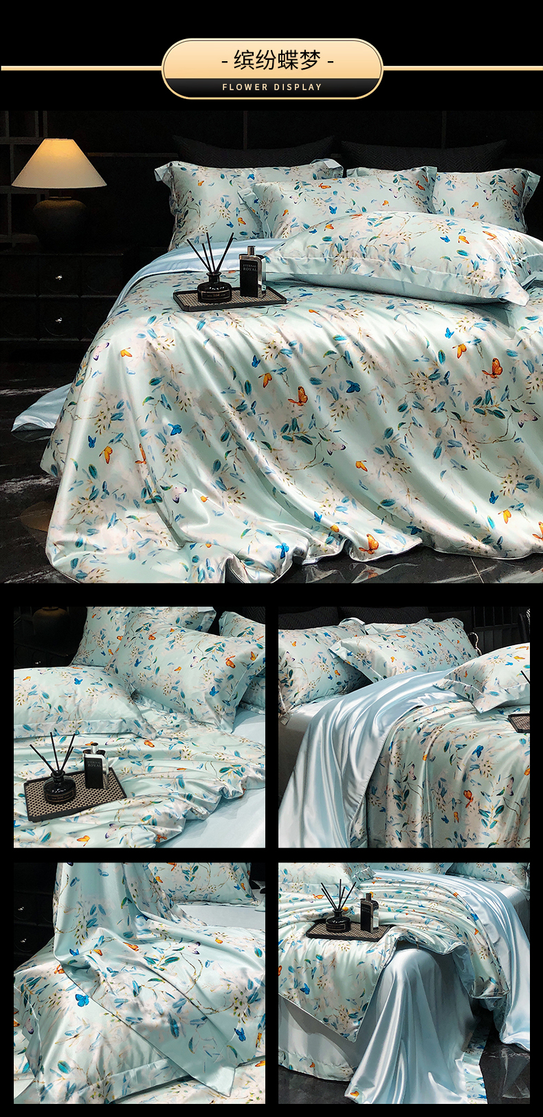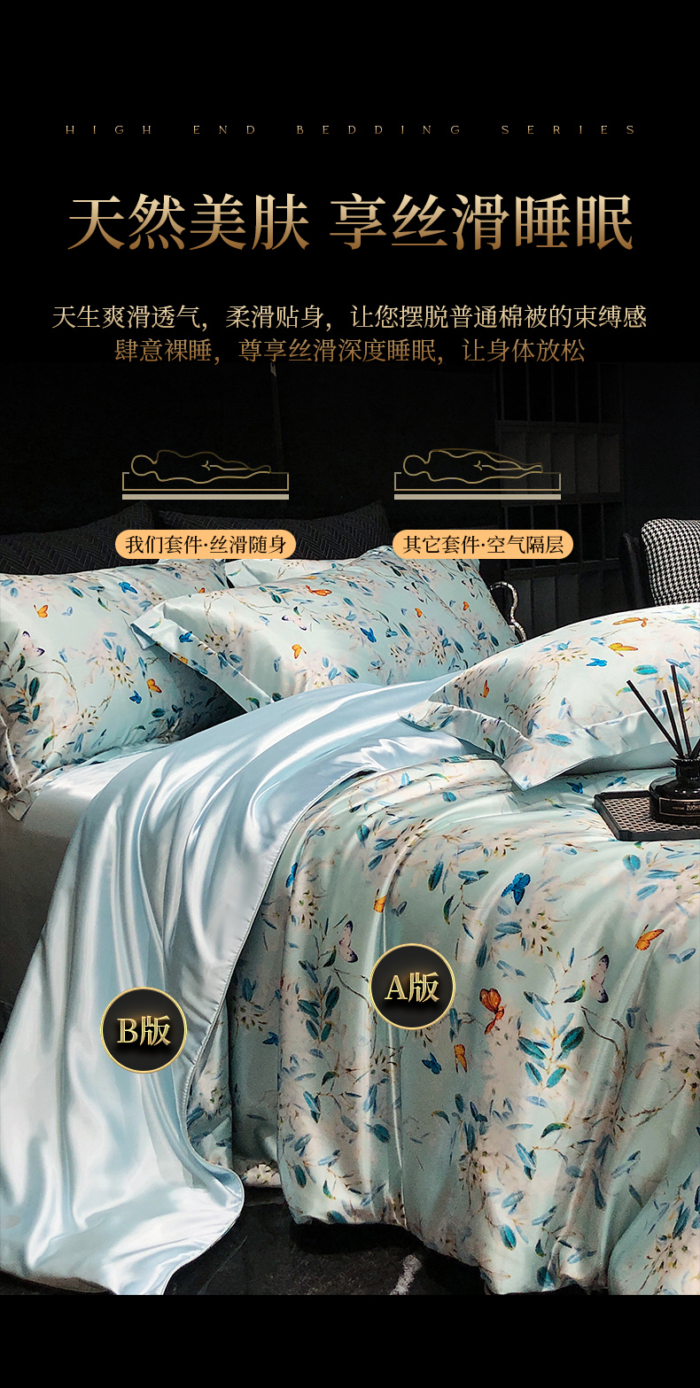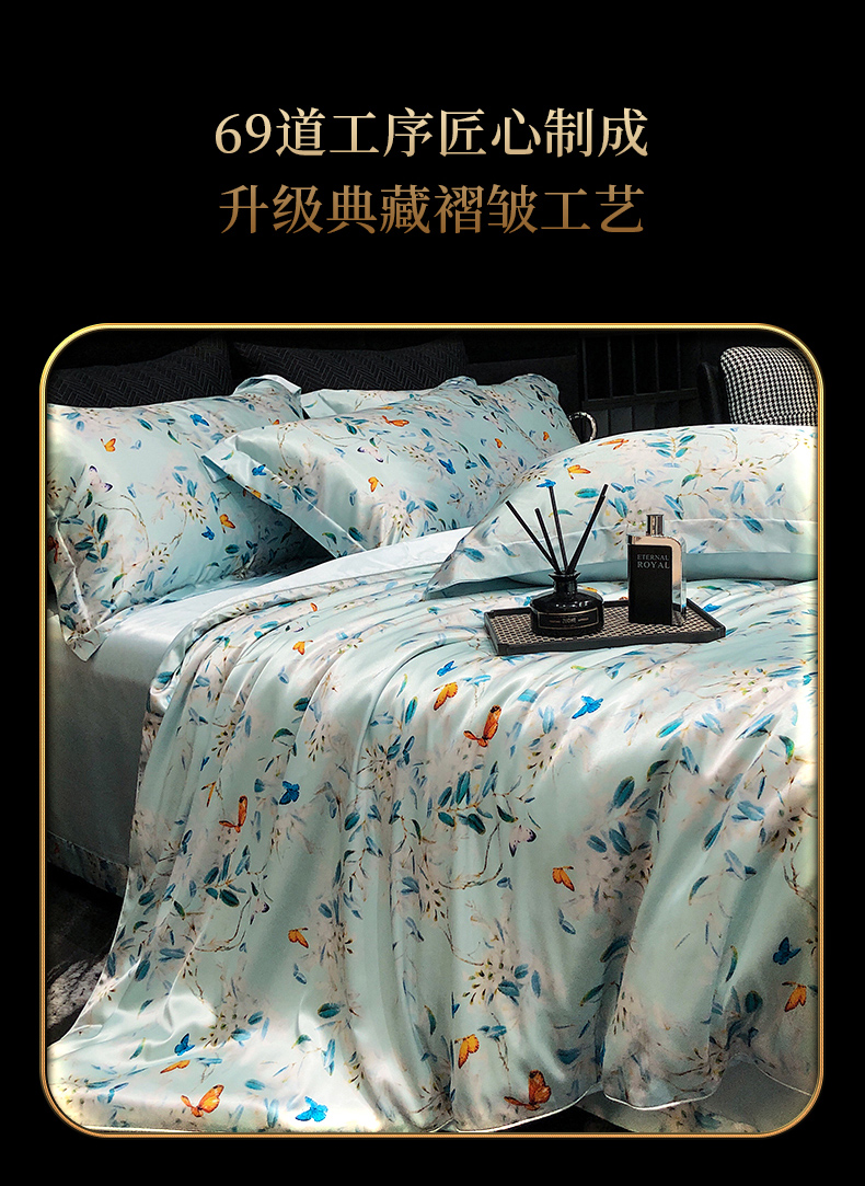 黄鹂鸟 2025新款高端轻奢丝滑裸睡丝绸数码印花水洗真丝天丝四件套系列 -风格三 缤纷蝶梦