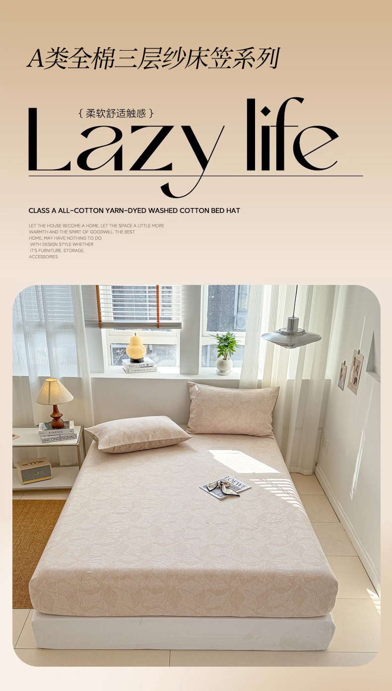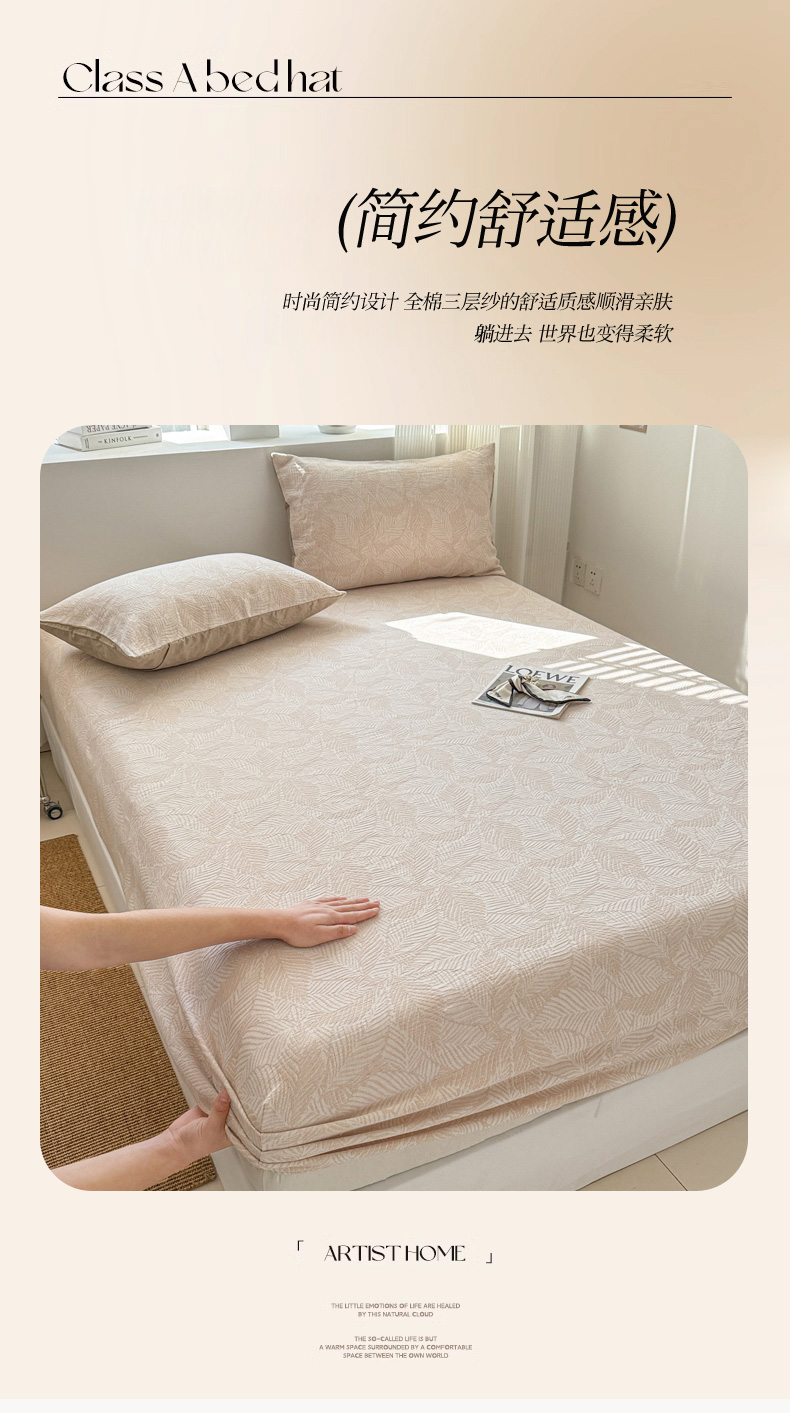 眠博士 2025新款AB版简约时尚A类全棉三层纱系列单床笠 三层纱单床笠-幸运叶-杏