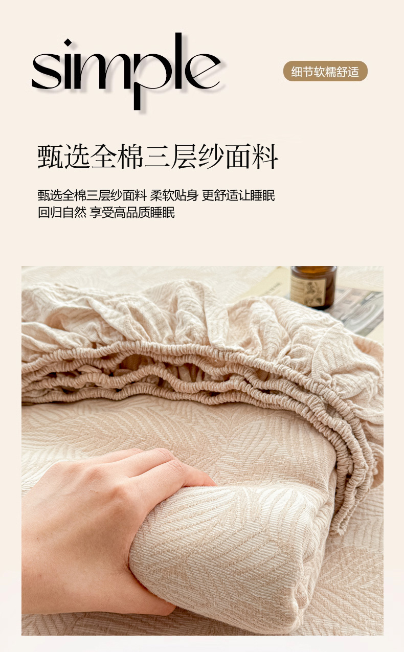 当前位置: 91家纺网 > 商品网购 > 床上用品 > 床笠 > 眠博士 2025新款AB版简约时尚A类全棉三层纱系列单床笠 三层纱单床笠-幸运叶-杏