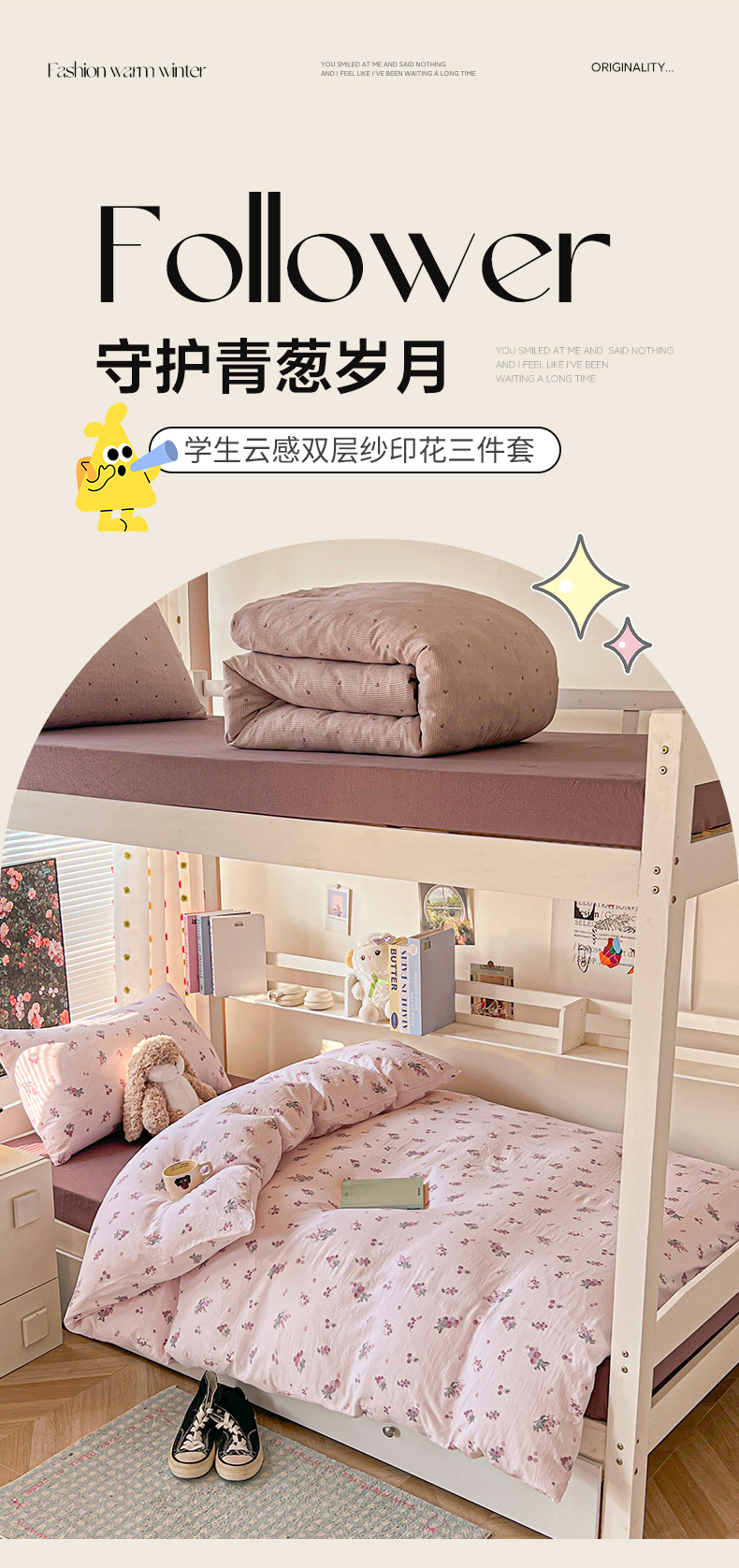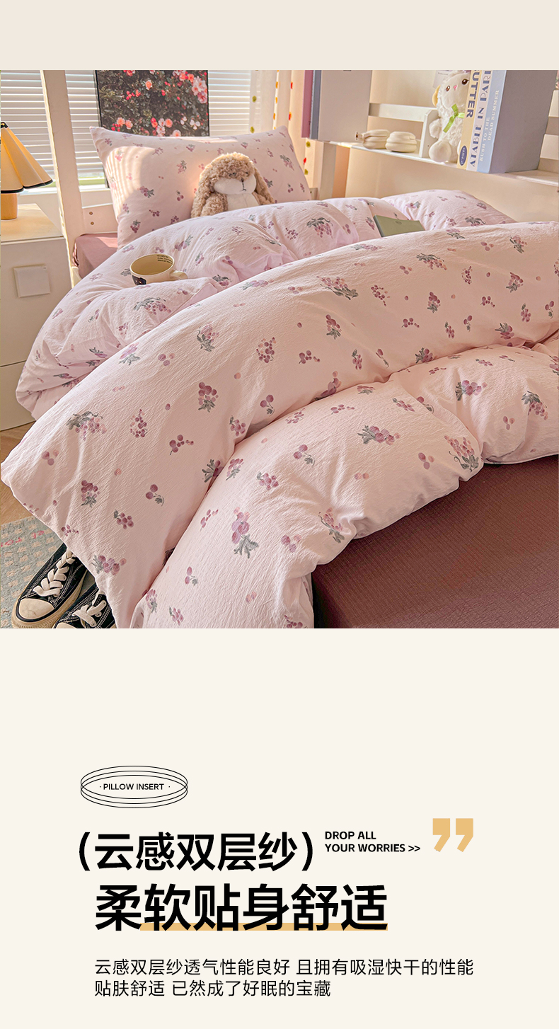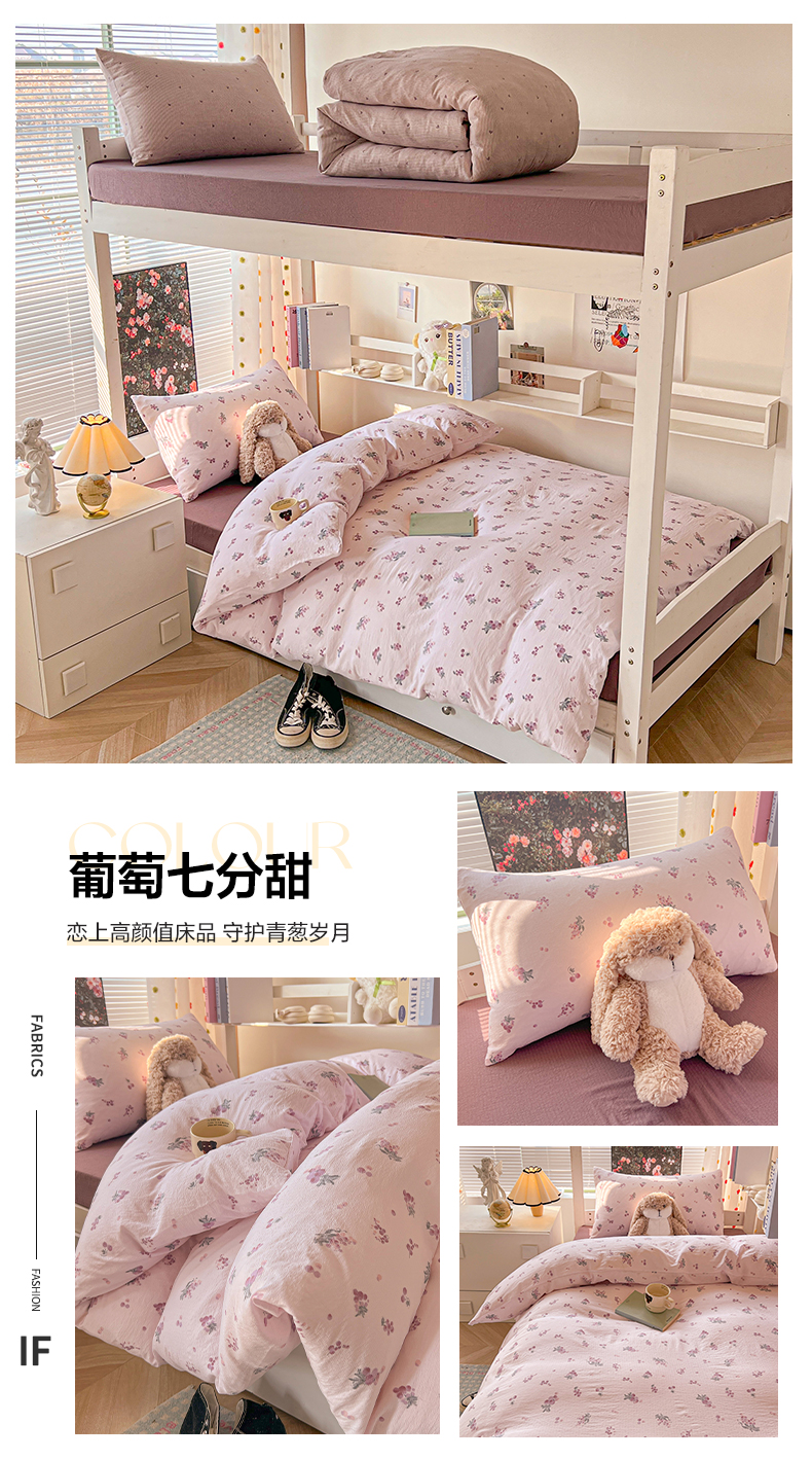 当前位置: 91家纺网 > 商品网购 > 床品套件 > 三件套 > 韩巢家纺 2025新款云感双层纱超柔裸睡级学生宿舍上下铺床单被套三件套-(提供卖家秀) 葡萄七分甜