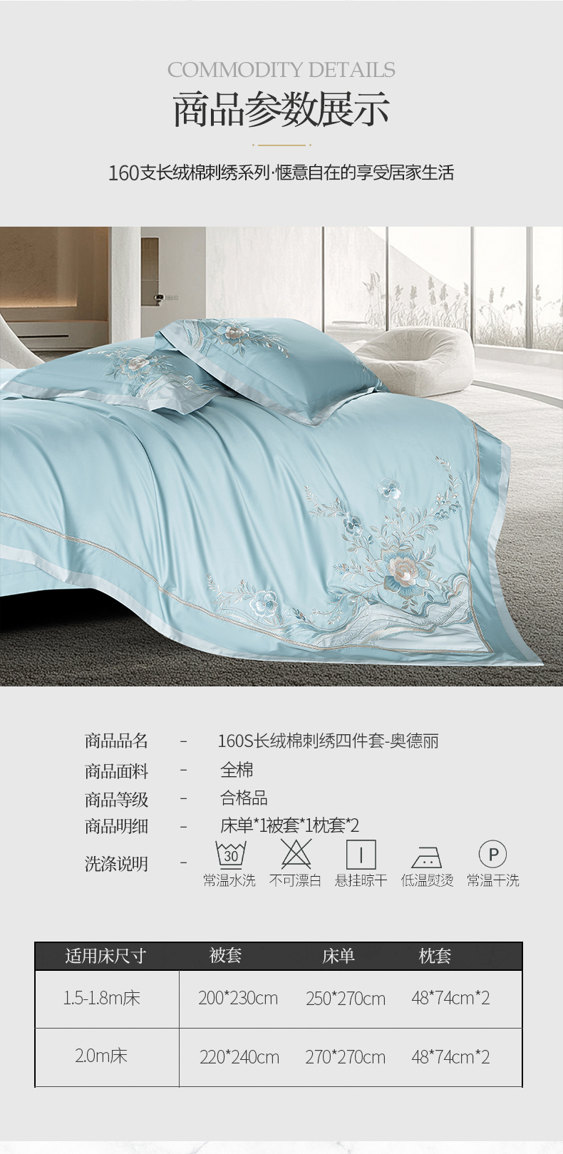 商品名称:高大尚婚庆馆 2025春夏新款 长绒棉高端绣花四件套-奥德丽 奥德丽-水晶兰
