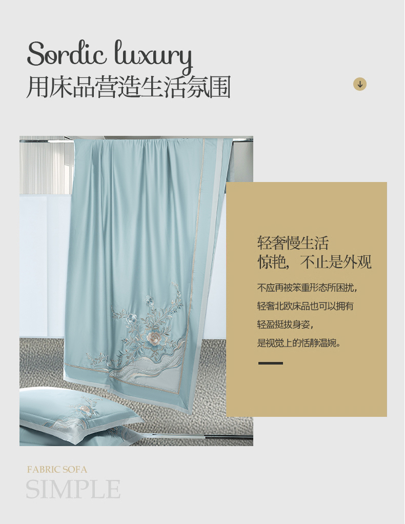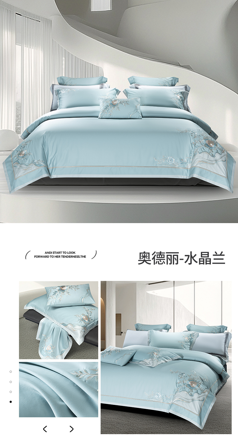 高大尚婚庆馆 2025春夏新款 长绒棉高端绣花四件套-奥德丽 奥德丽-水晶兰