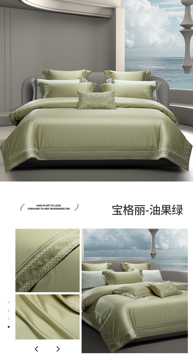 商品名称:高大尚婚庆馆 2025春夏新款 长绒棉高端绣花四件套-宝格丽 宝格丽-油果绿