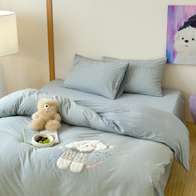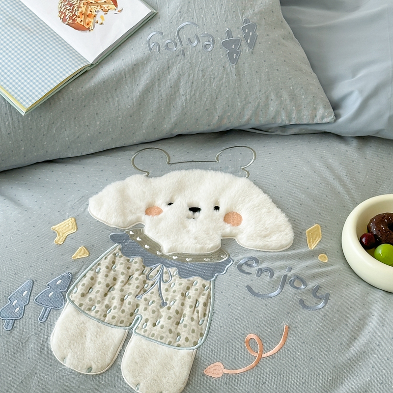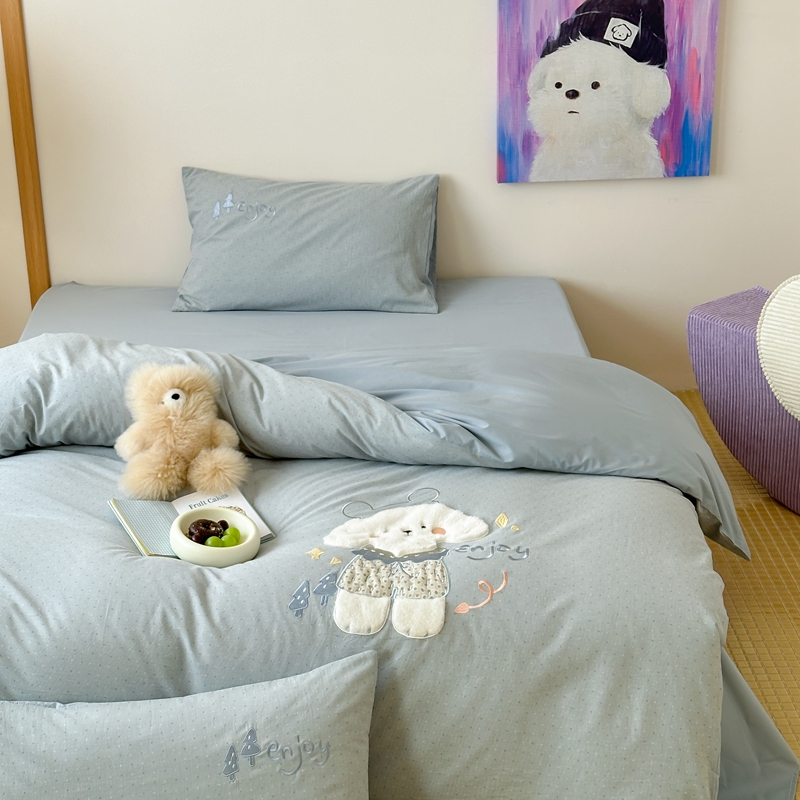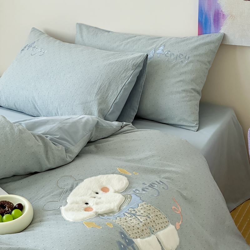 (总)觅糖家纺 2025新款色织水洗提花小波点贴布系列四件套,sweet兔,滑板小狮子,可爱松鼠,奶油比熊,小熊的故事,小羊驼