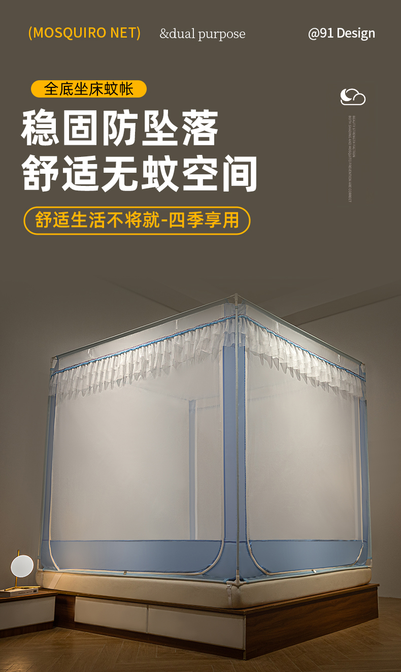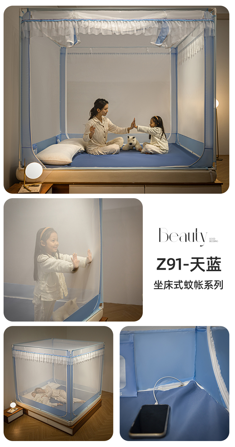 飞轮海蚊帐 2025新款防尘坐床全底蚊帐Z91 天蓝