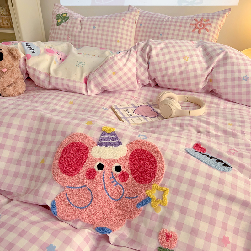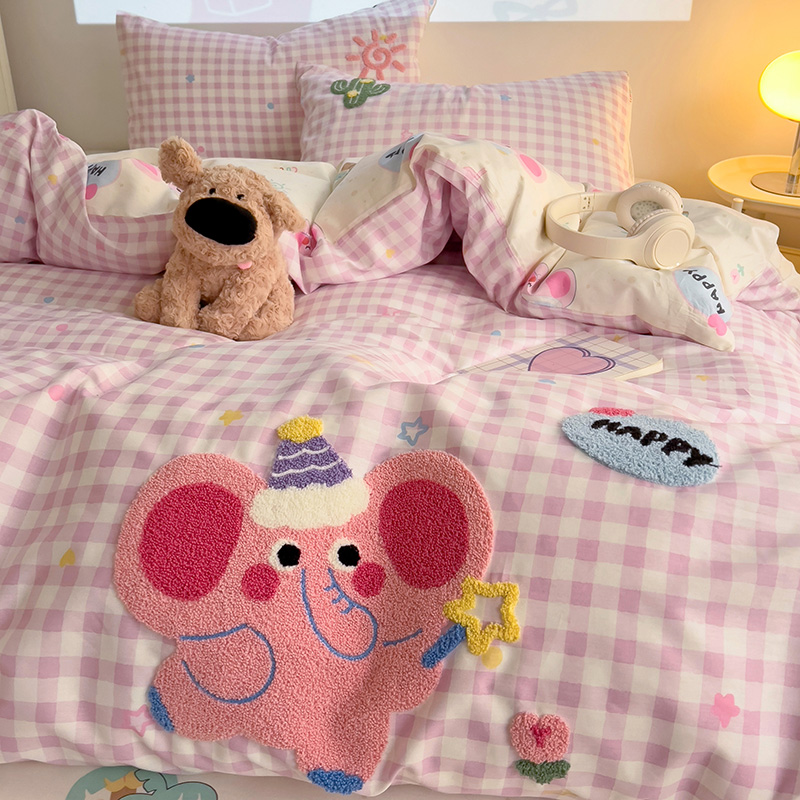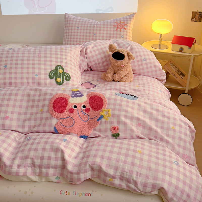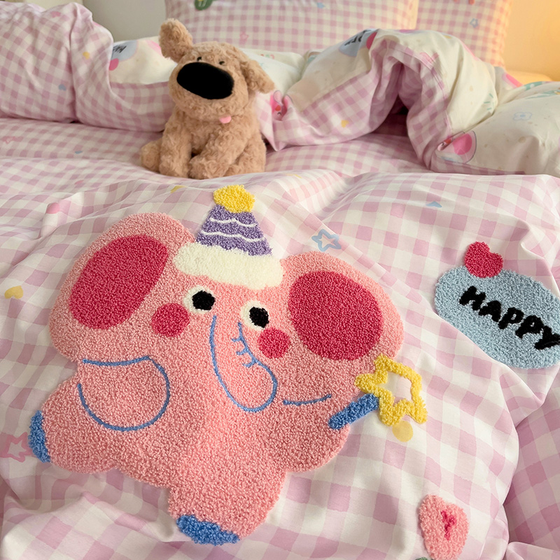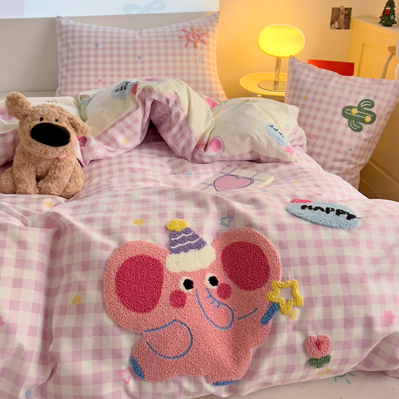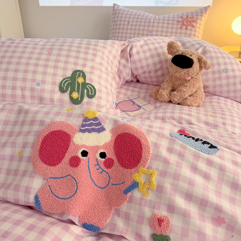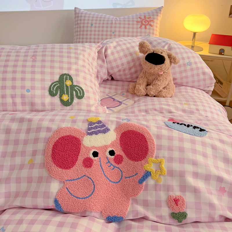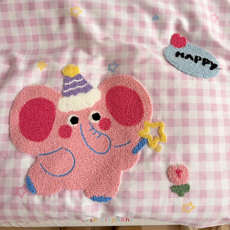 云锦家居 2025新款13370纯棉毛巾绣呆萌系列四件套 粉色小象