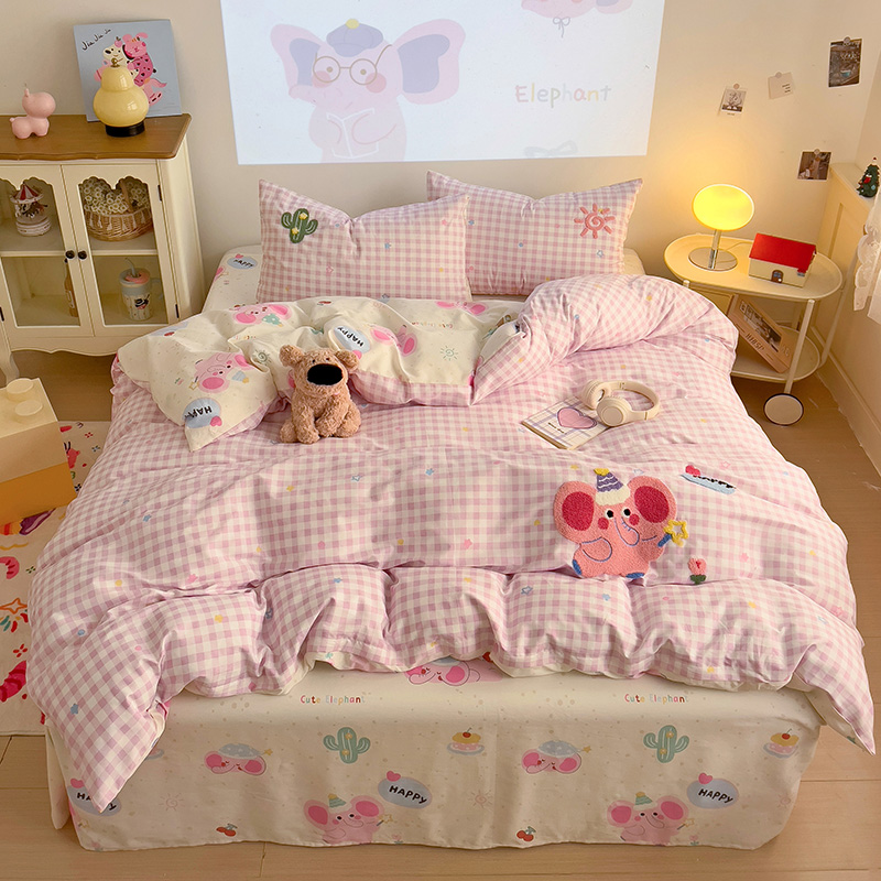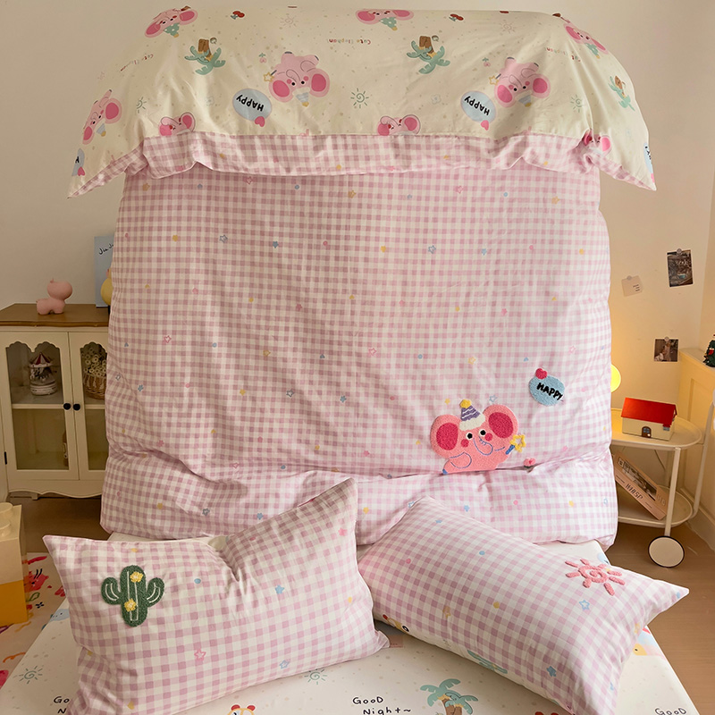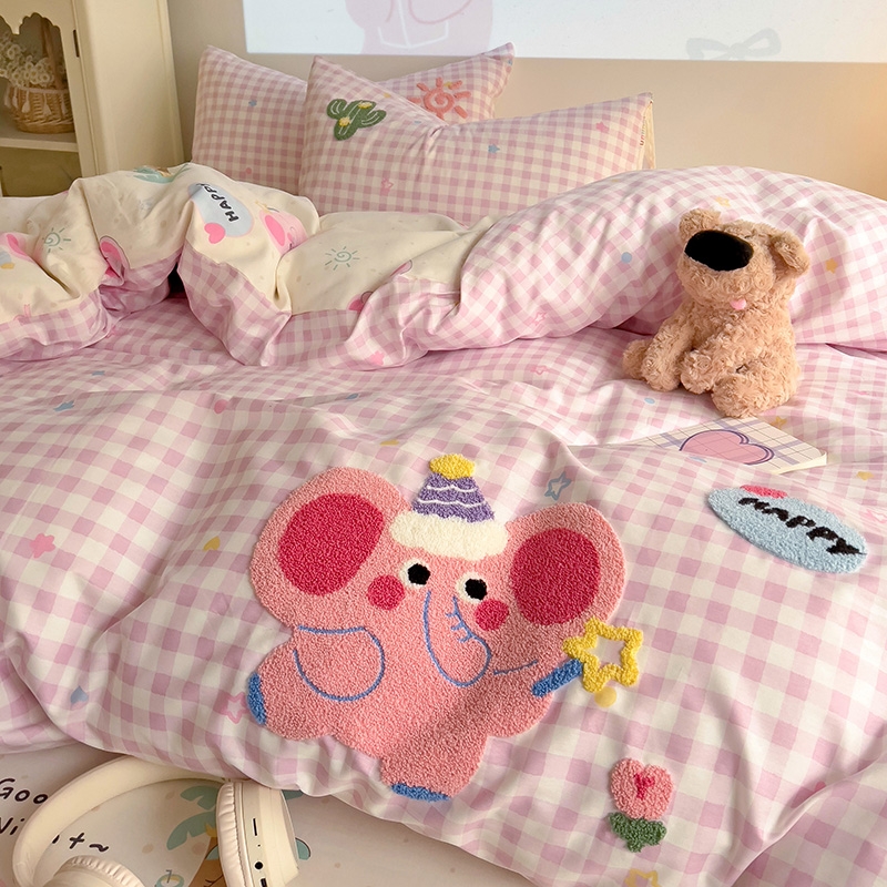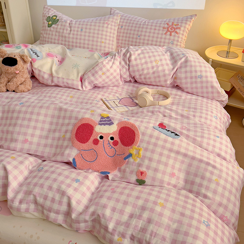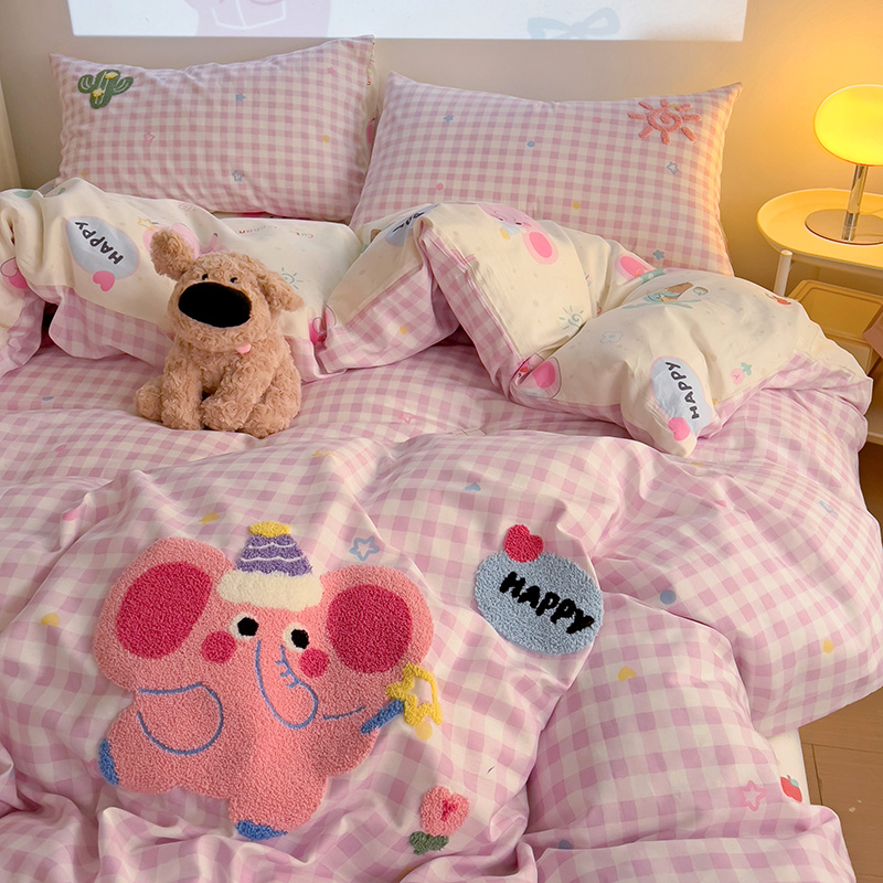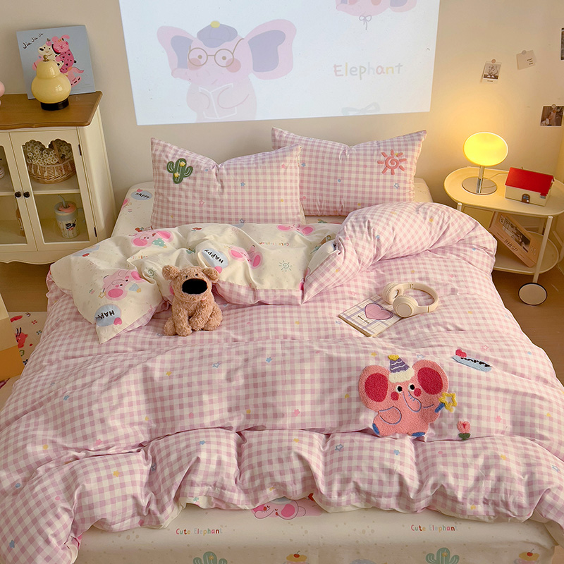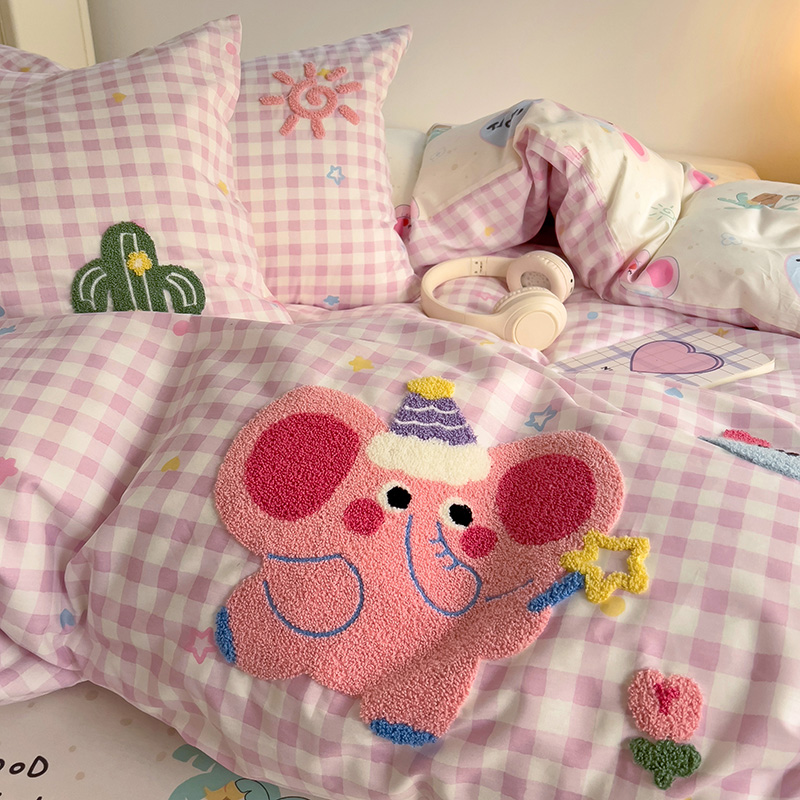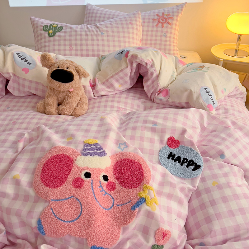 云锦家居 2025新款13370纯棉毛巾绣呆萌系列四件套 粉色小象