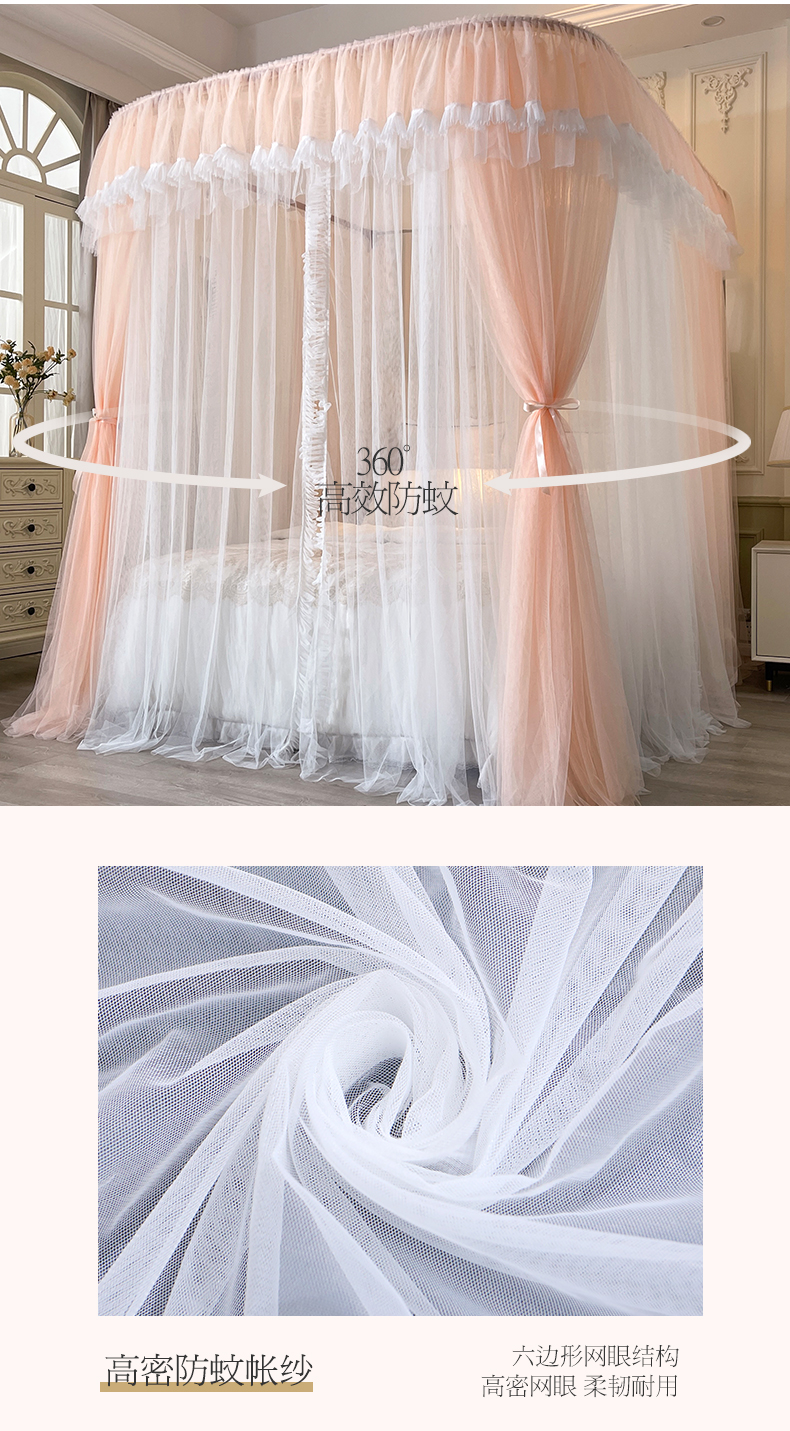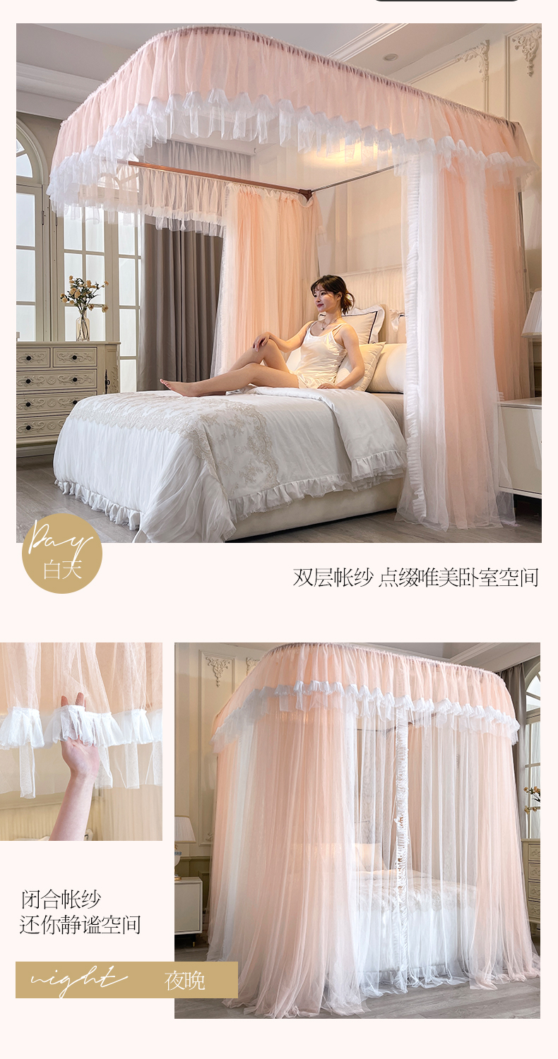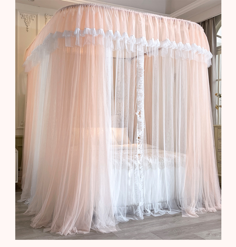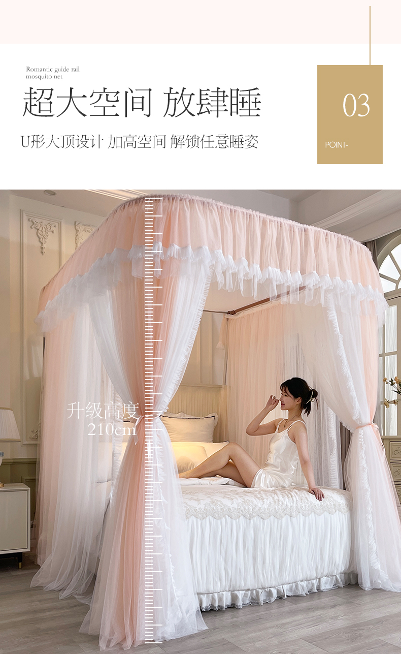 宝莱利 2025年新款拉幕导轨蚊帐(可升降合金弯头支架)-田园风情 玫瑰粉