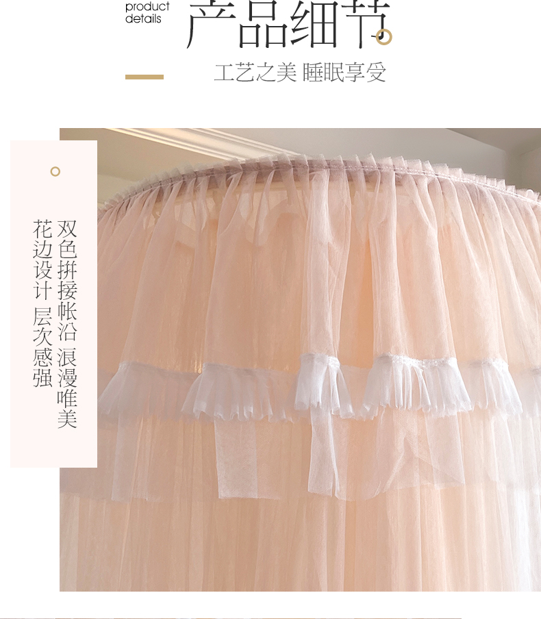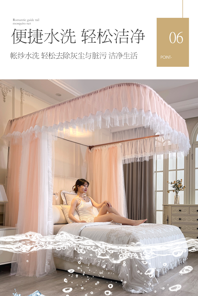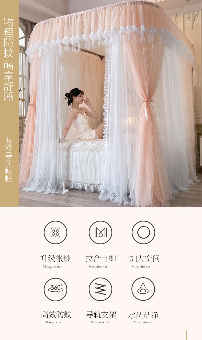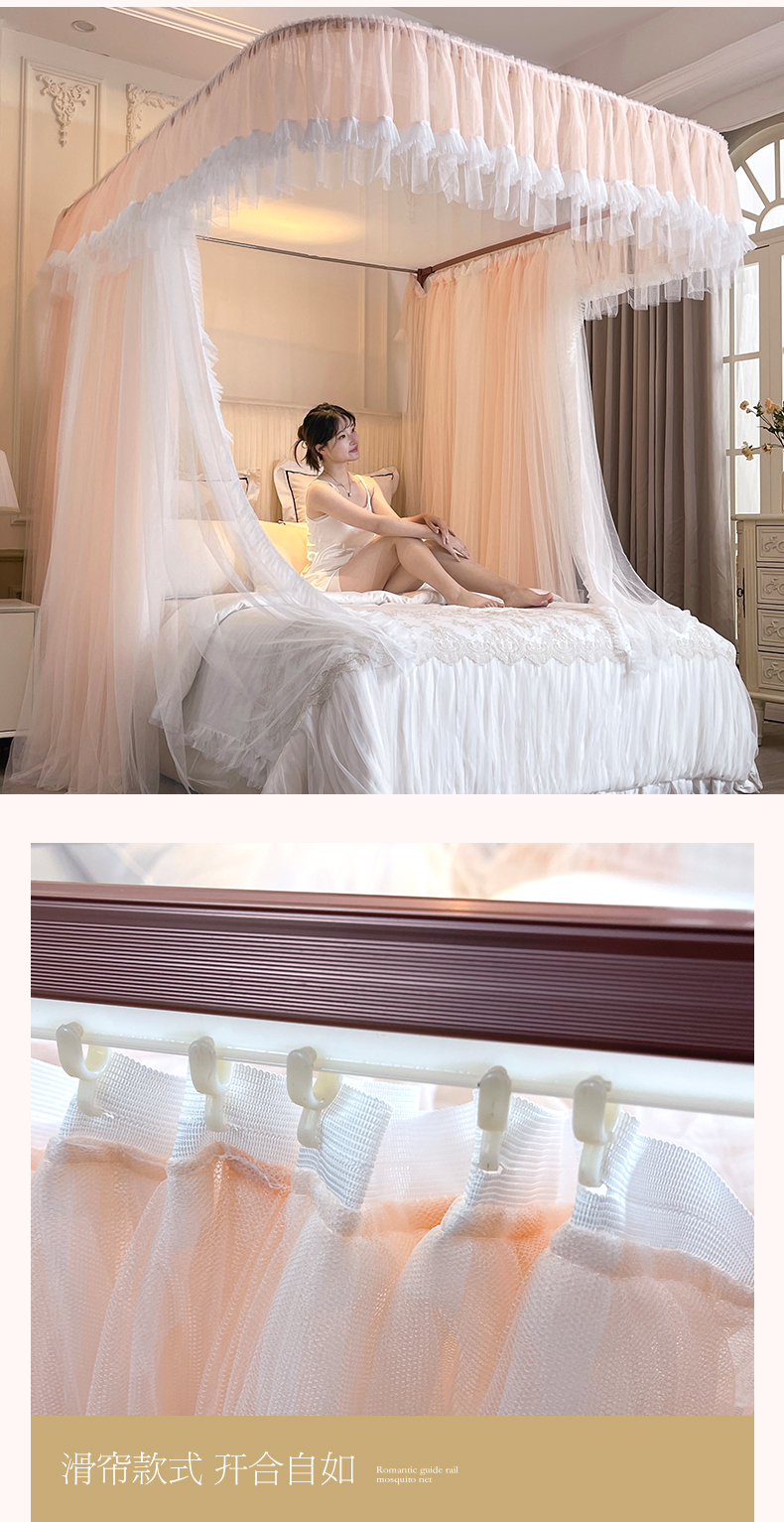 商品名称:宝莱利 2025年新款拉幕导轨蚊帐(可升降合金弯头支架)-田园风情 玫瑰粉