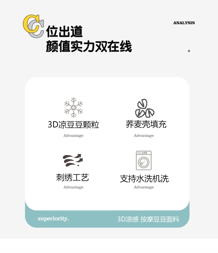 商品名称:(总)仁宇枕业 2025新款新品 猫爪凉感豆豆儿童学生幼儿园成人夏季清凉全荞麦枕头枕芯