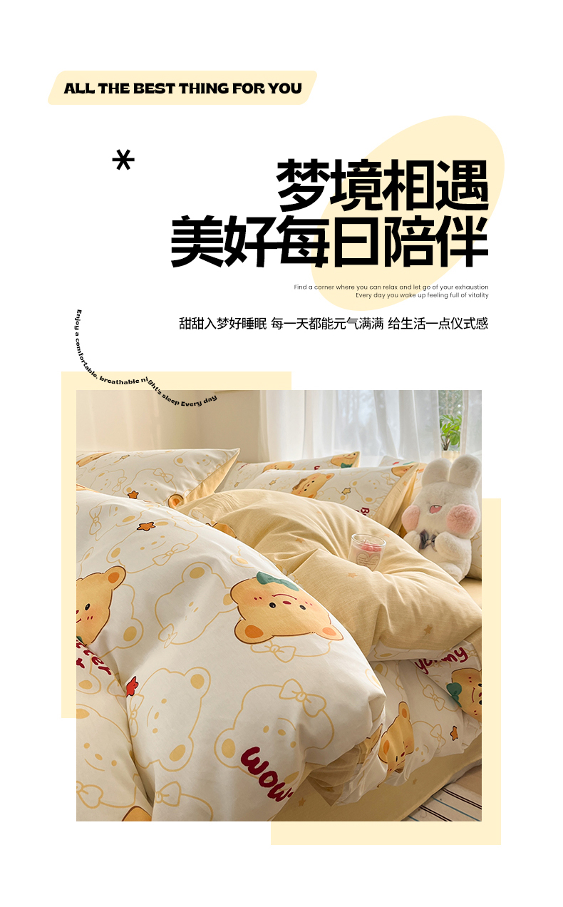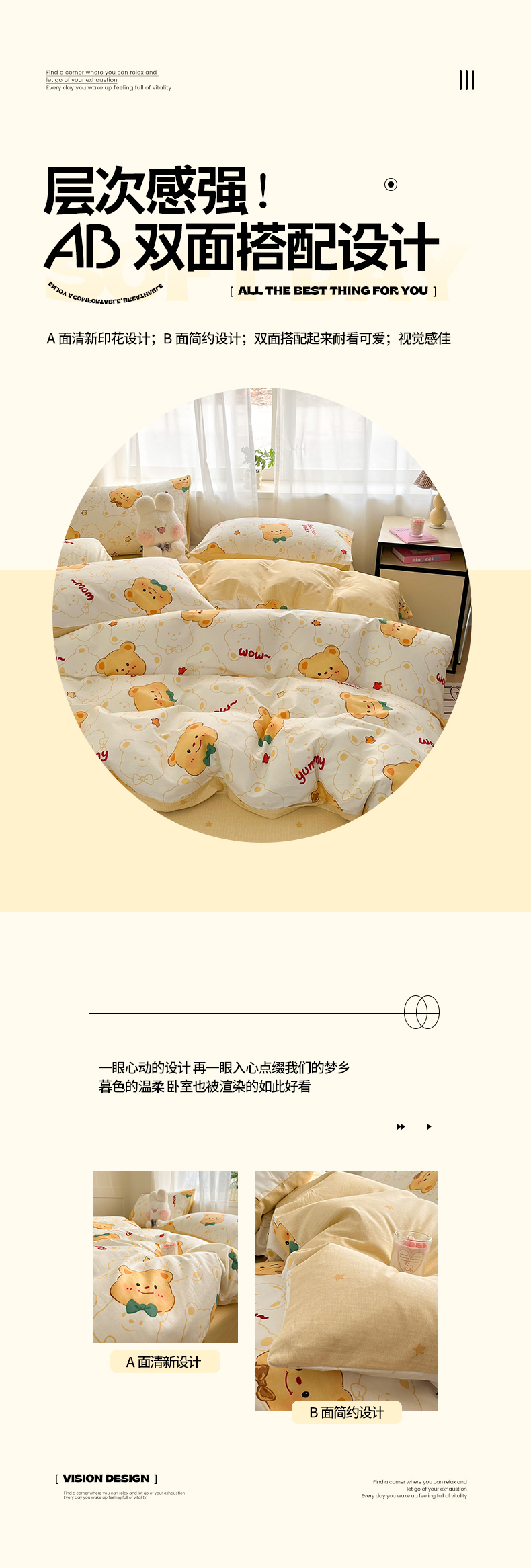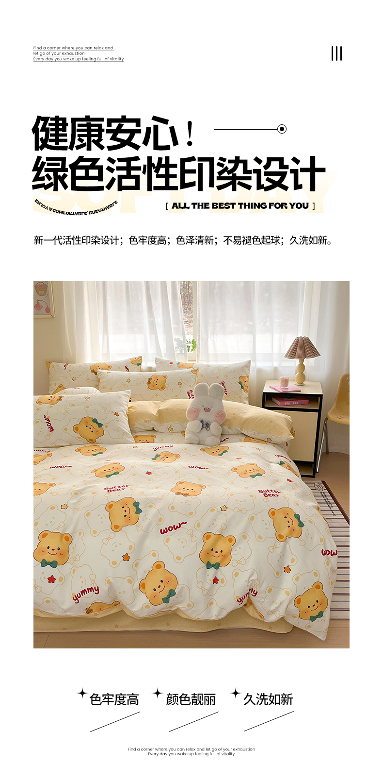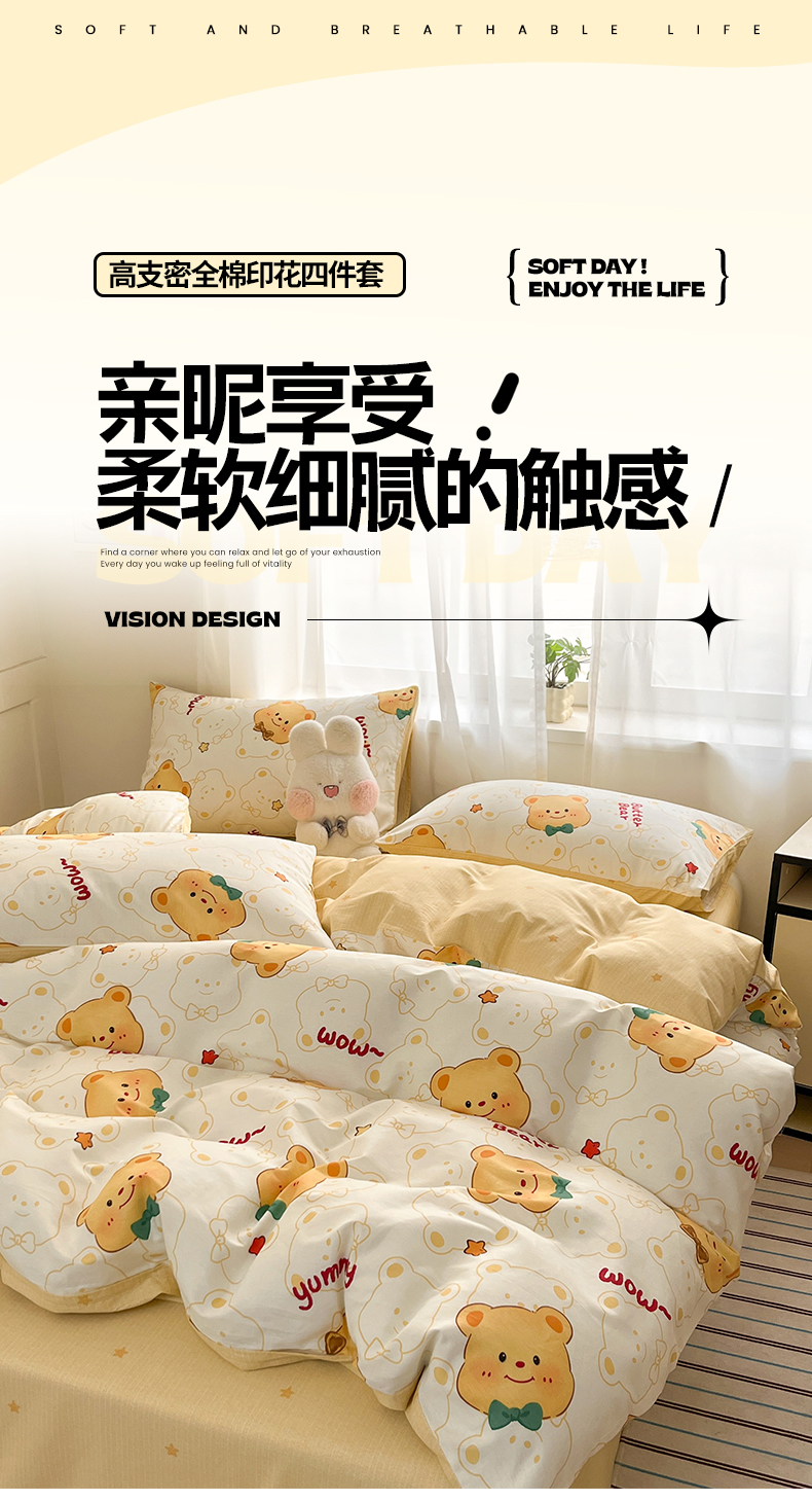 吉象家纺 2025新款高支密全棉印花四件套12868跑量款 瑞迪熊