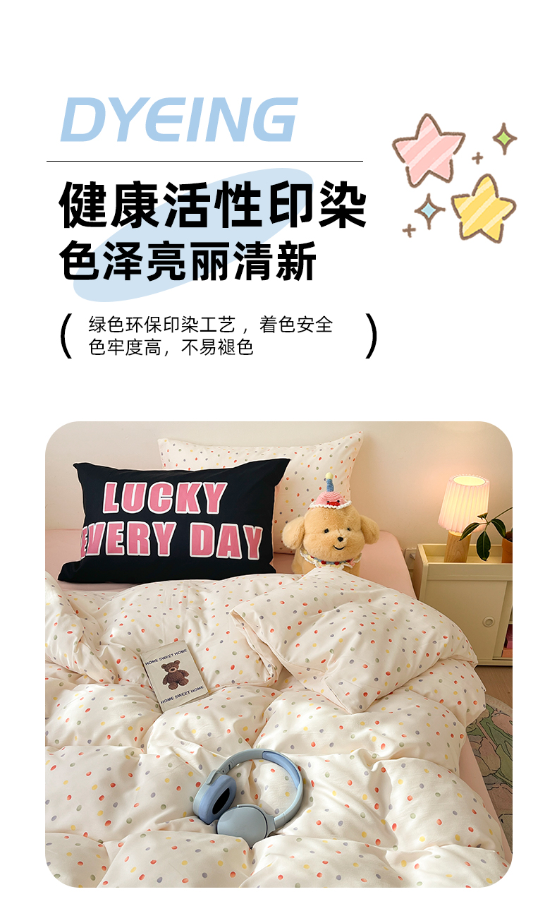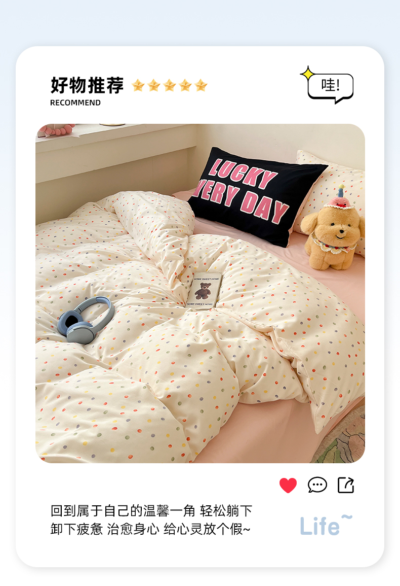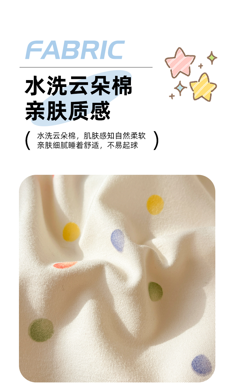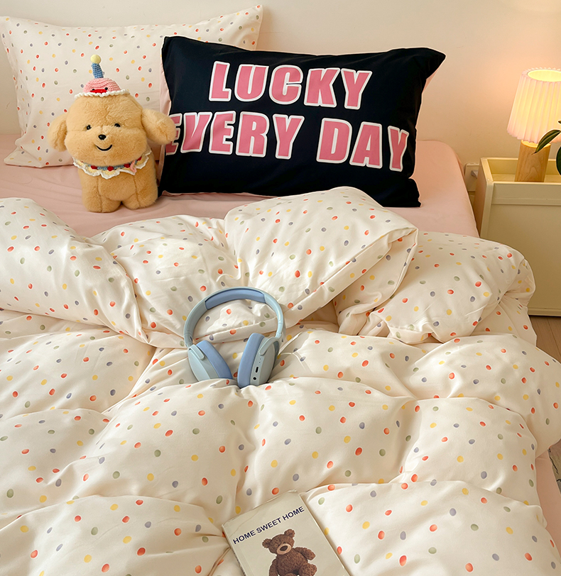 当前位置: 91家纺网 > 商品网购 > 床品套件 > 四件套 > 水洗棉四件套 > 好亿来家纺 2025新款水洗云朵棉大版枕套四件套单品系列-四件套 彩色波点