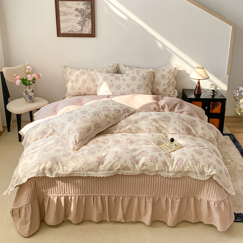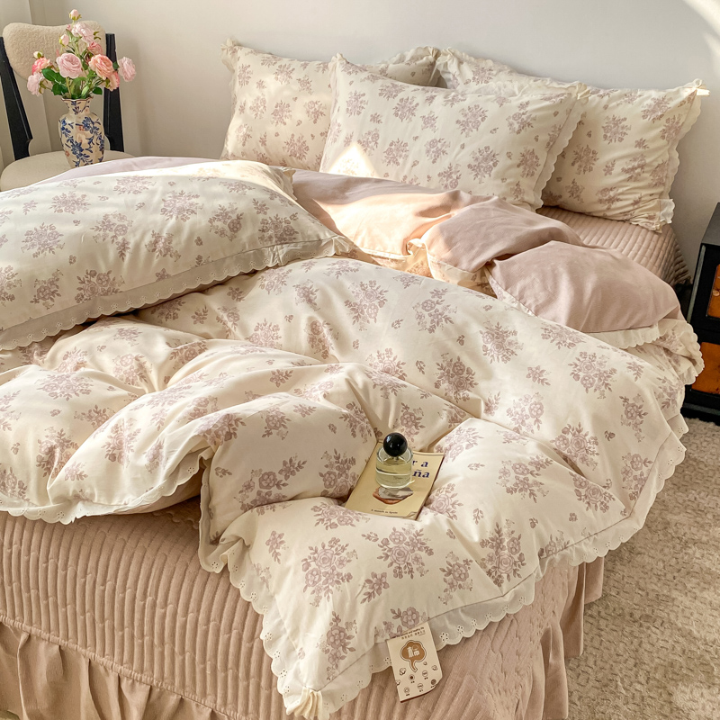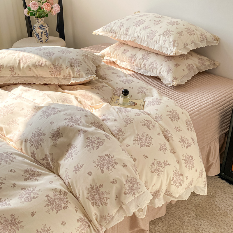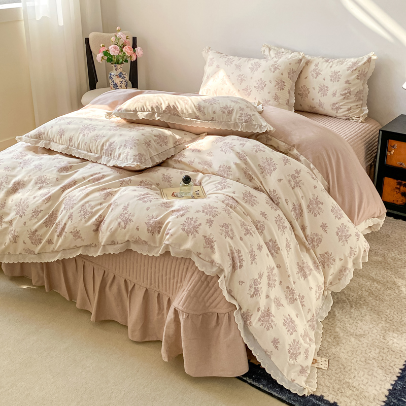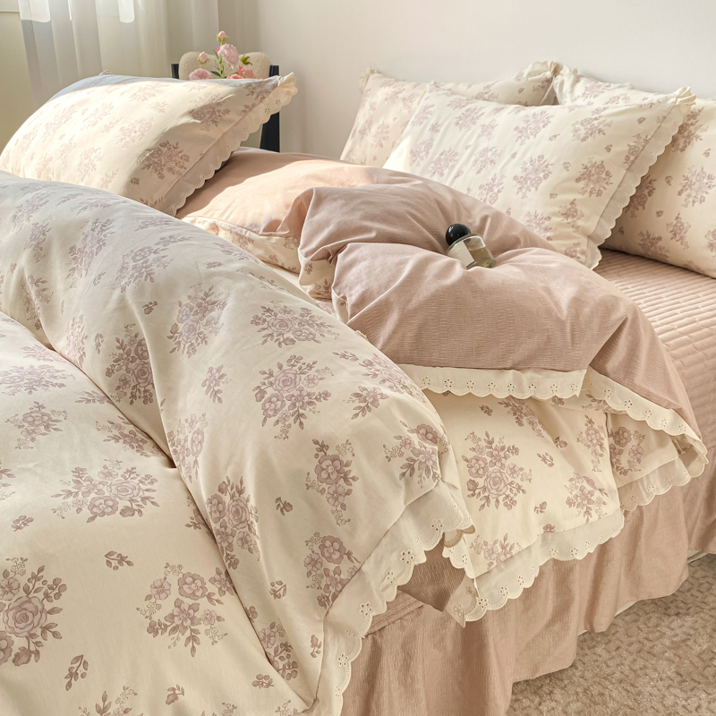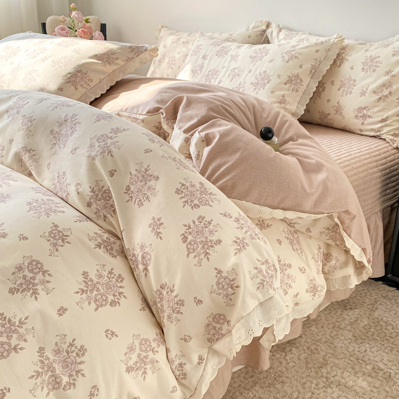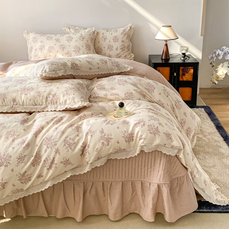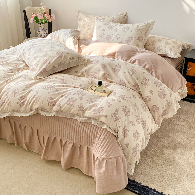 梦可莱家居 2025新款全棉韩版蕾丝边床盖四件套 彩绘