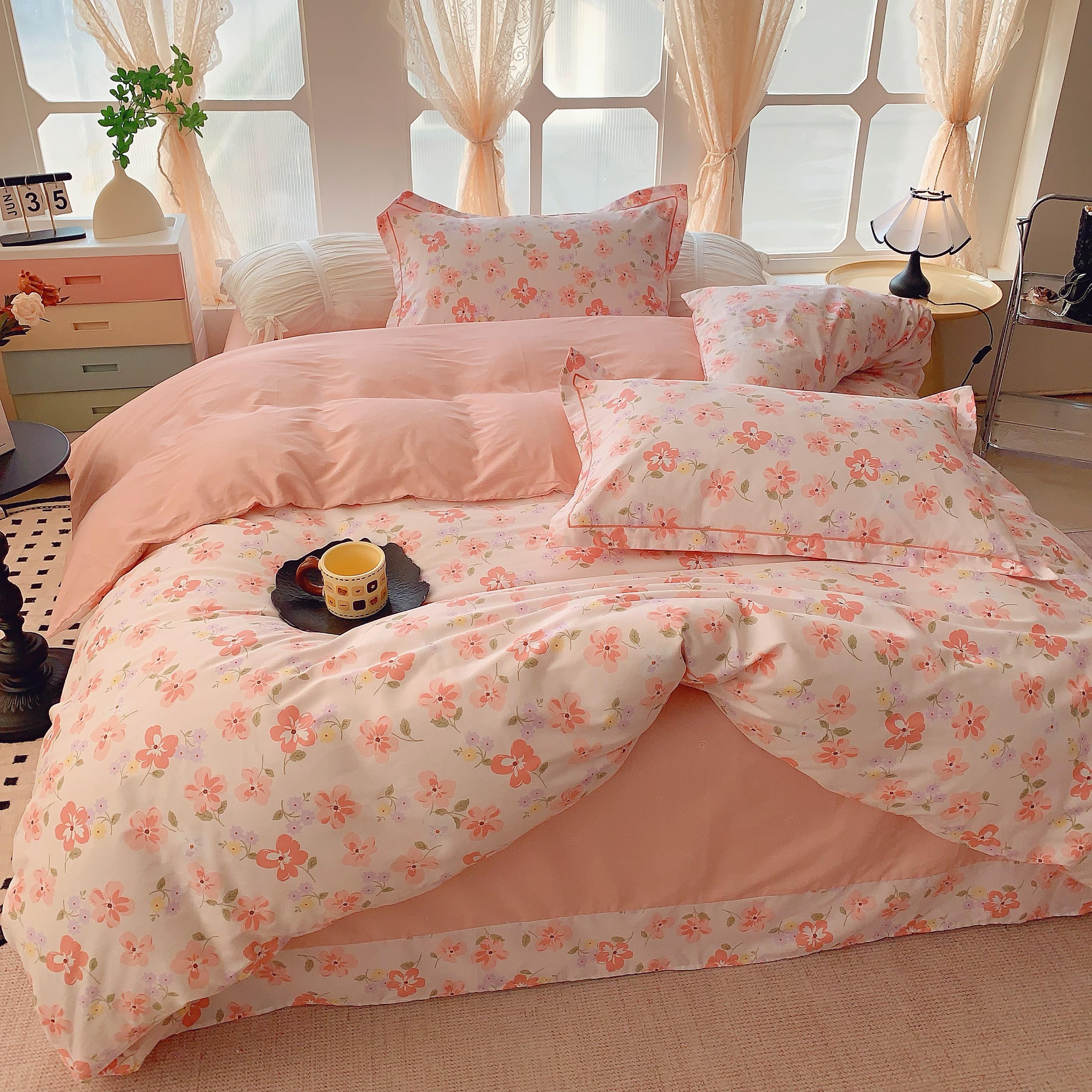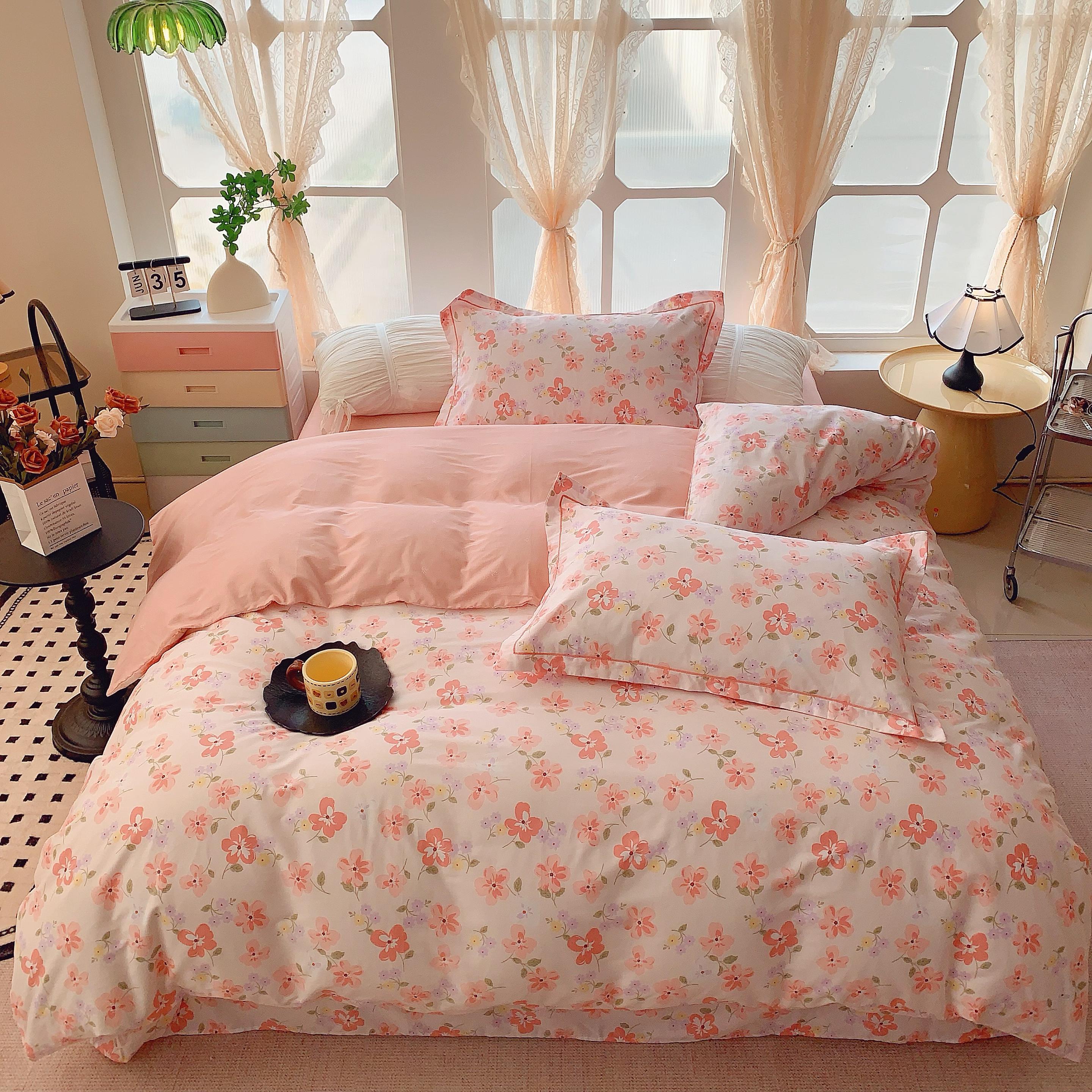 奈萝家纺 2025新款亲肤小清新全棉四件套 芬芳粉
