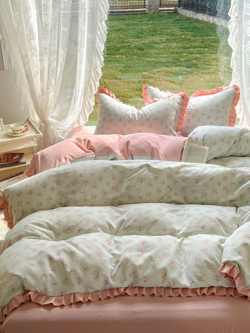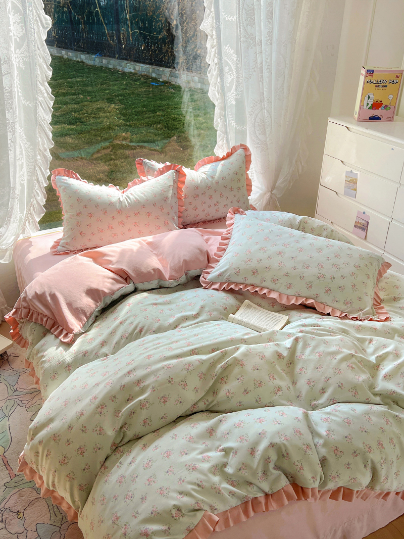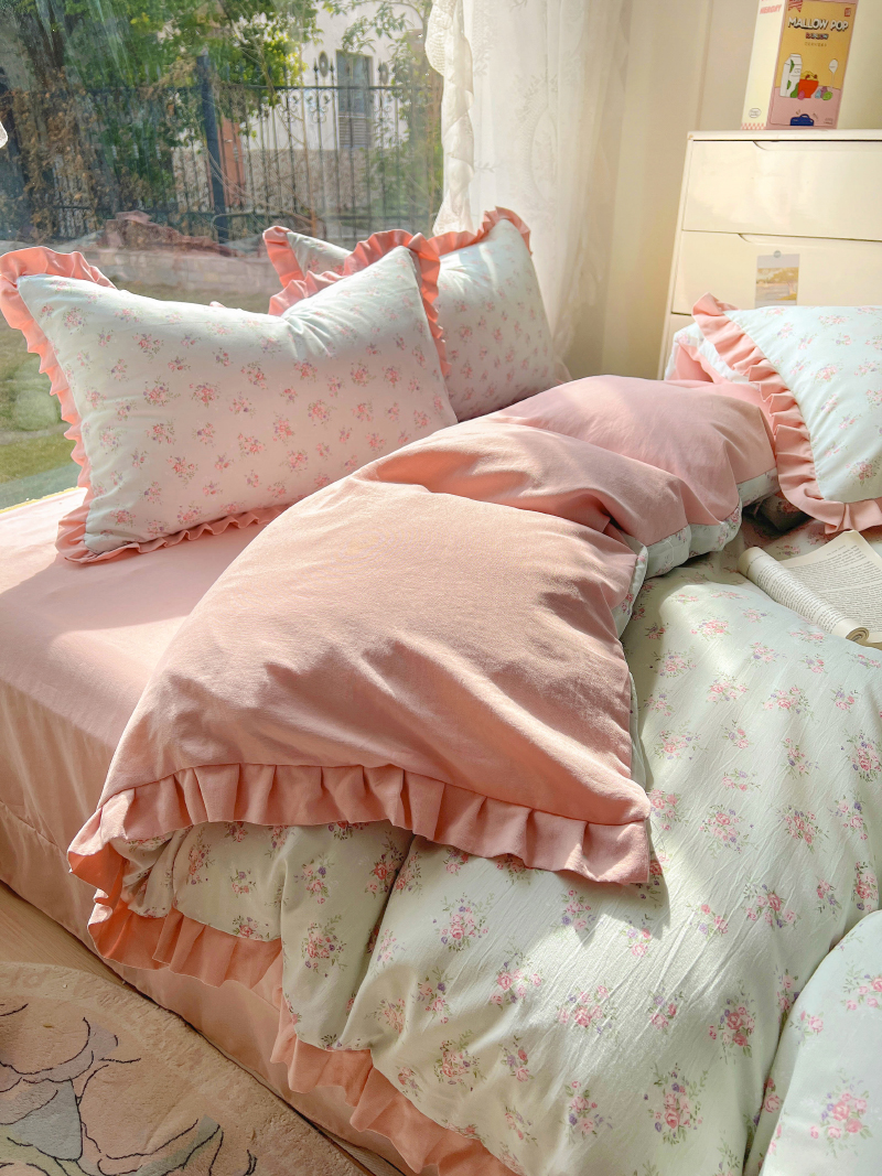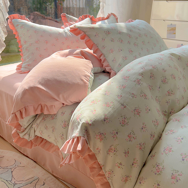 商品名称:欧尚 2025新款针织棉双层纱四件套 浪漫花开