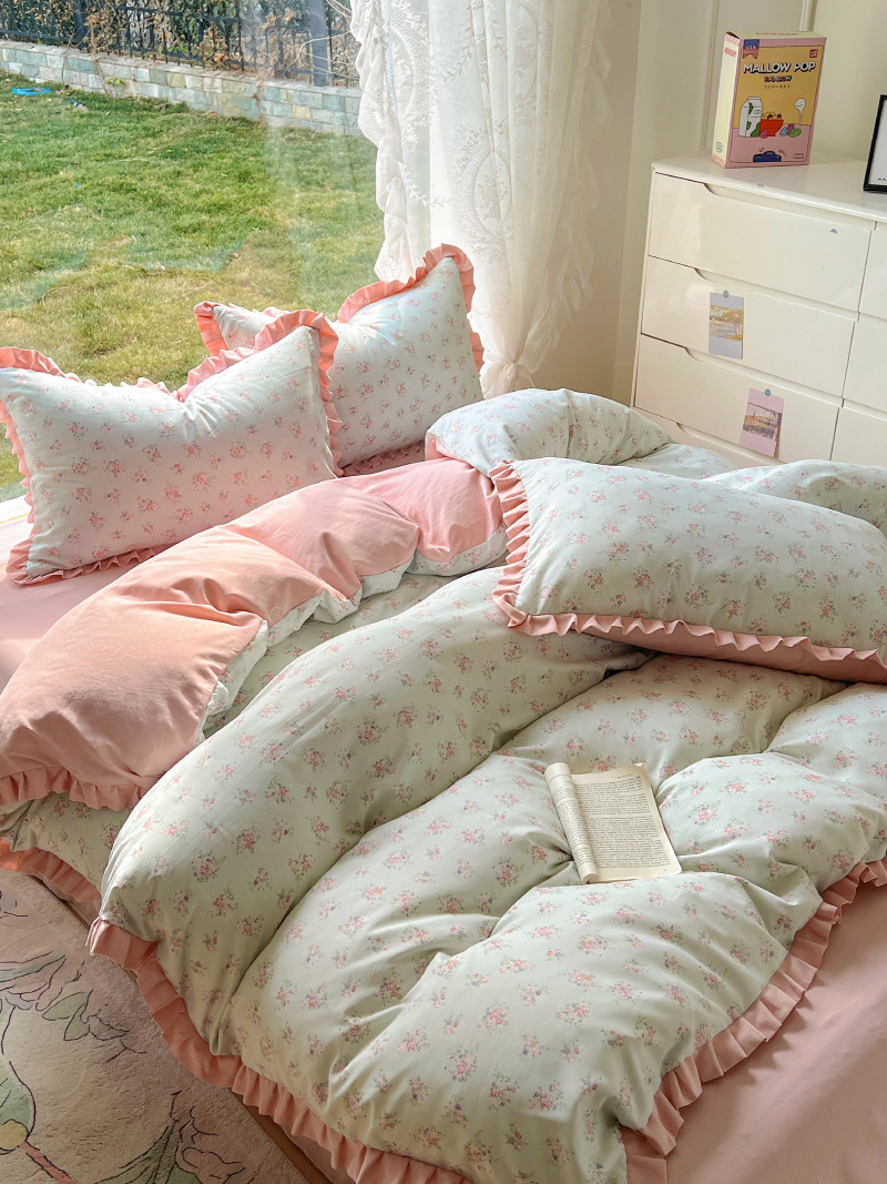(总)欧尚 2025新款牛奶绒花边床盖四件套,粉点点,花小玉,咖色小心心,蓝点点,慕然,仙女粉,仙女紫