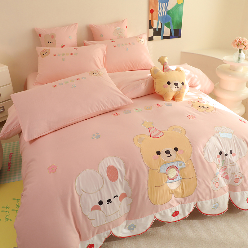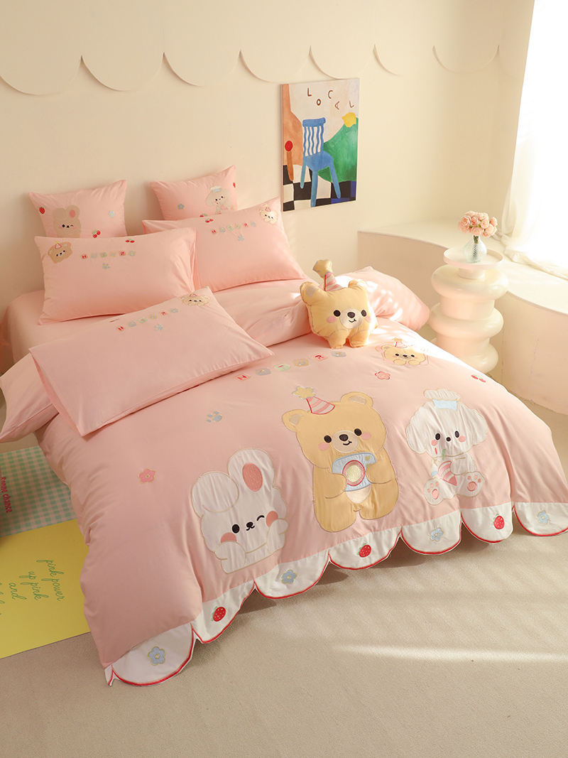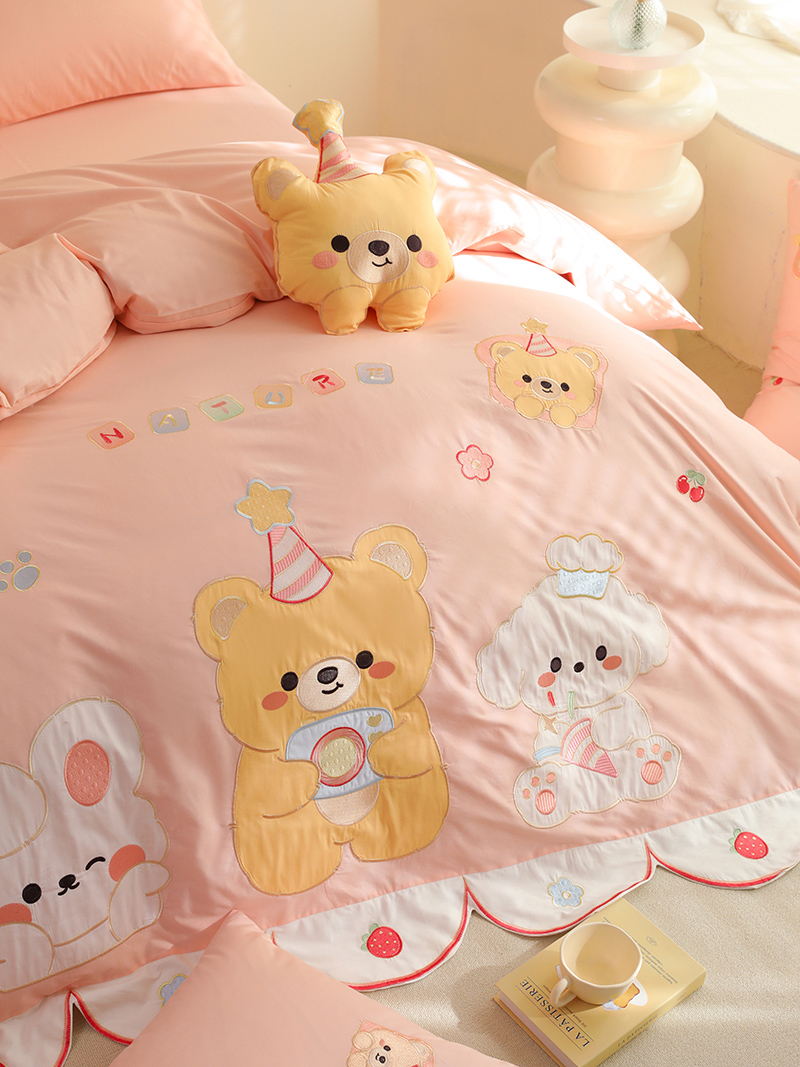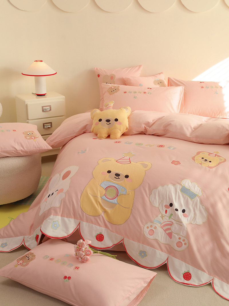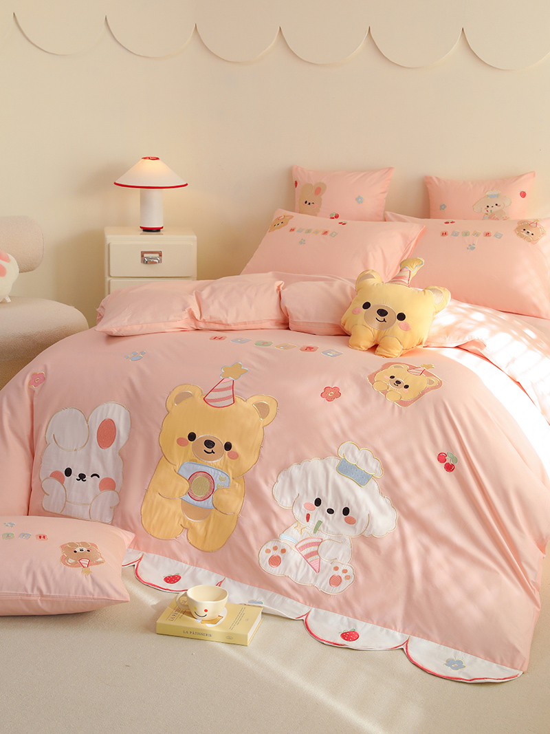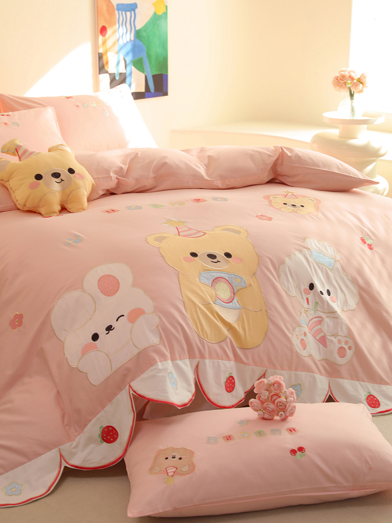 绒棉世家 2025绒棉世家新款全棉水洗棉贴布绣专版四件套 宠物乐园