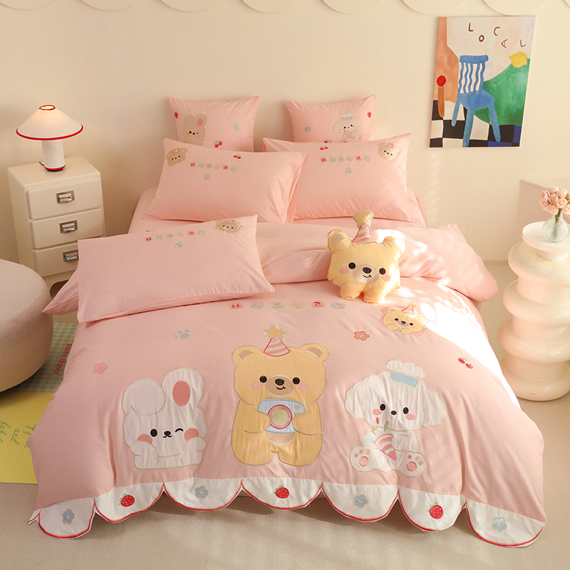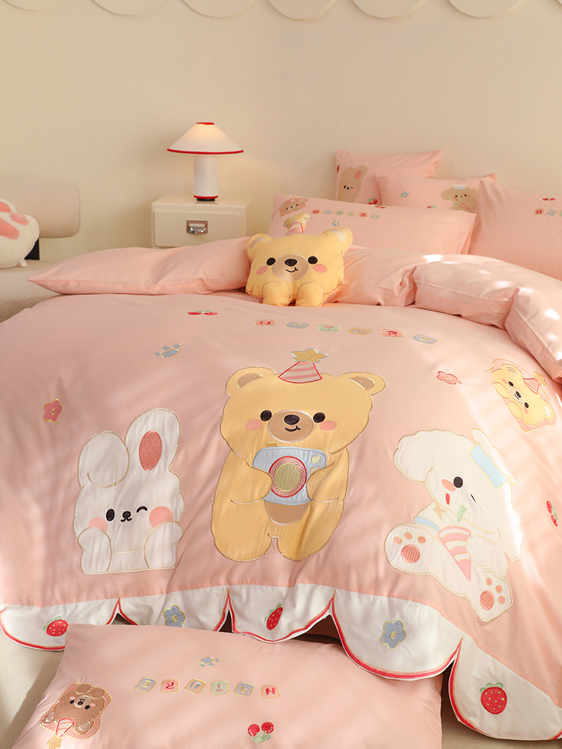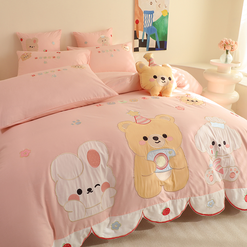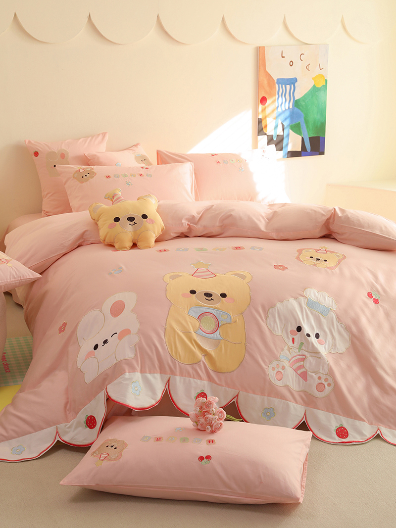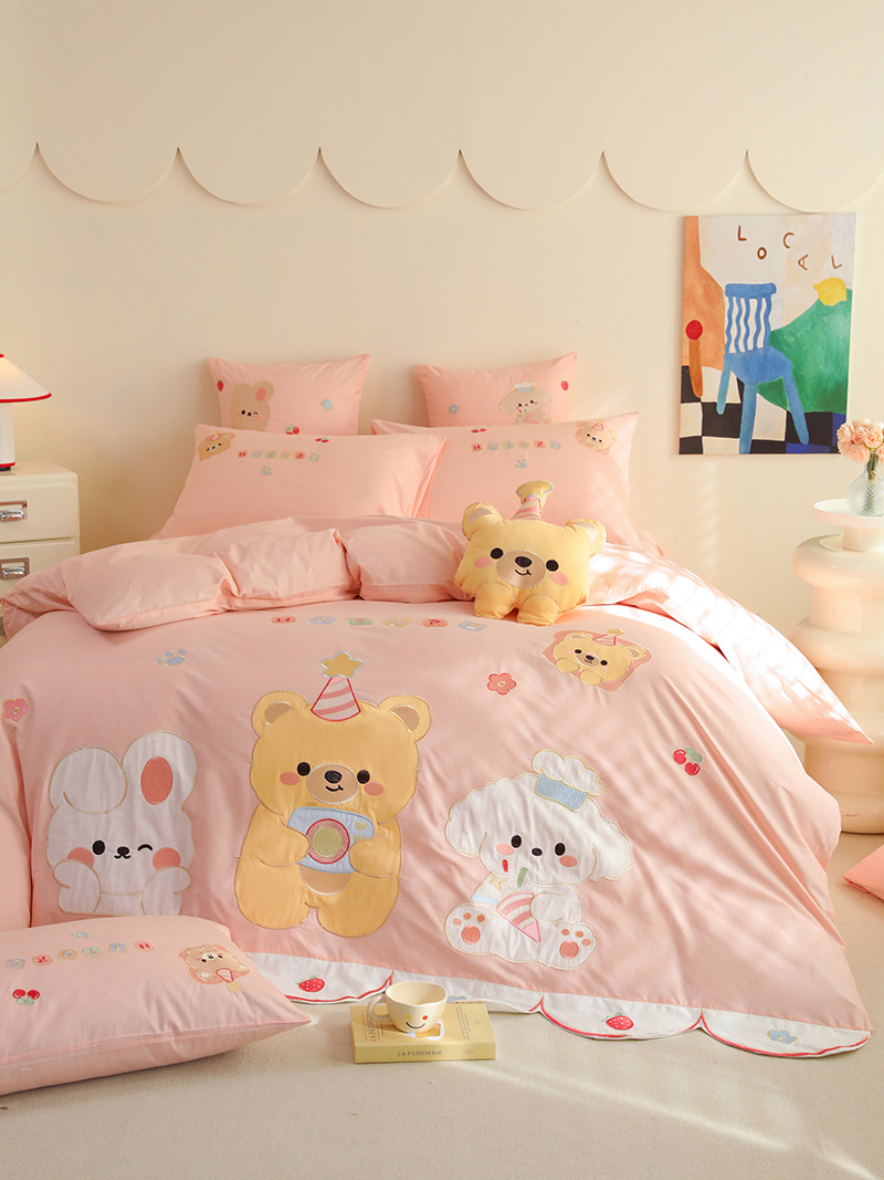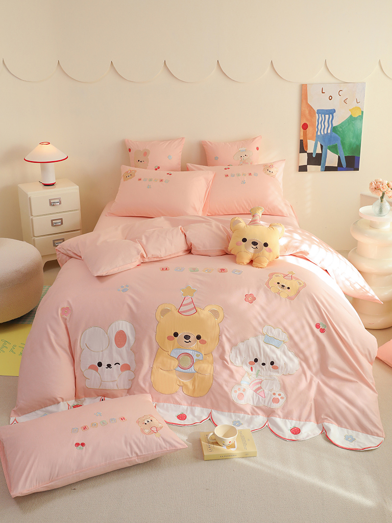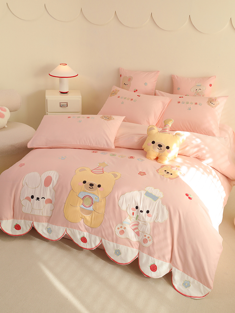 绒棉世家 2025绒棉世家新款全棉水洗棉贴布绣专版四件套 宠物乐园