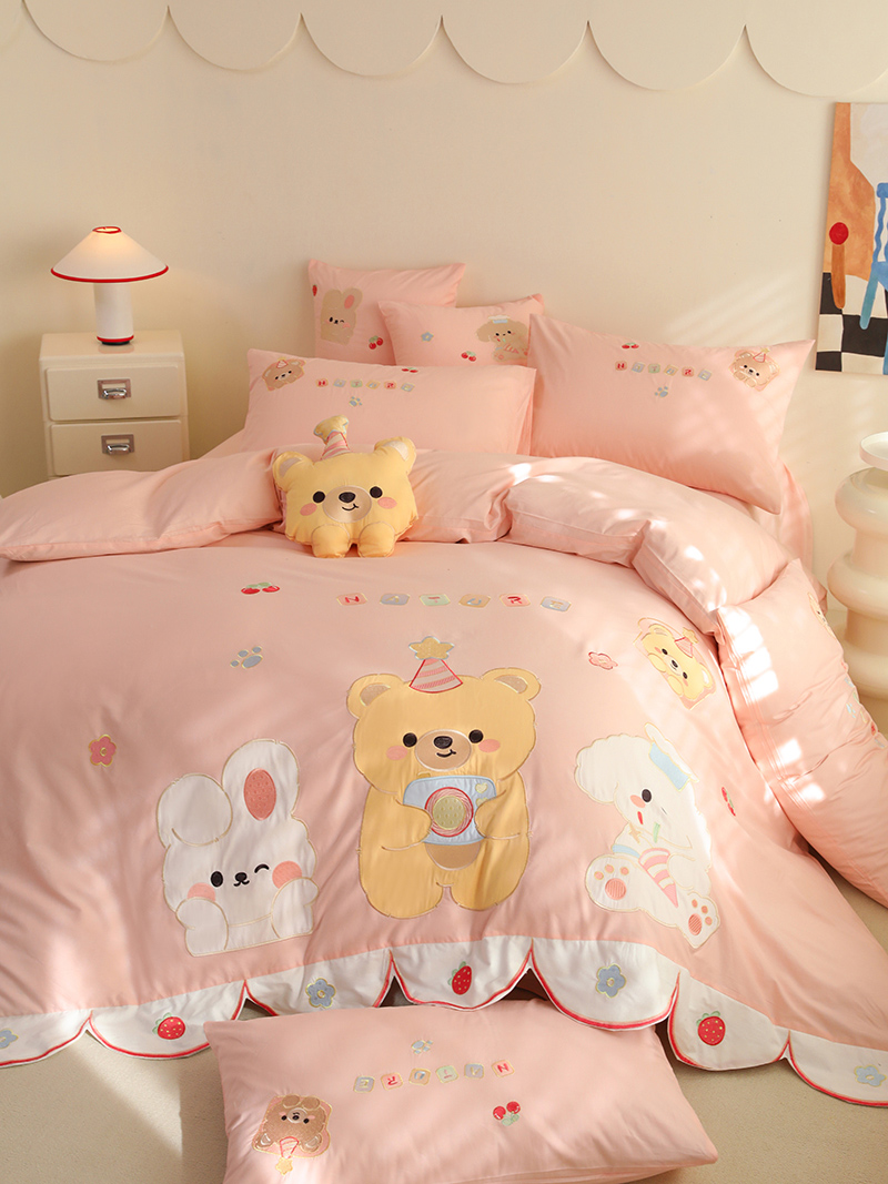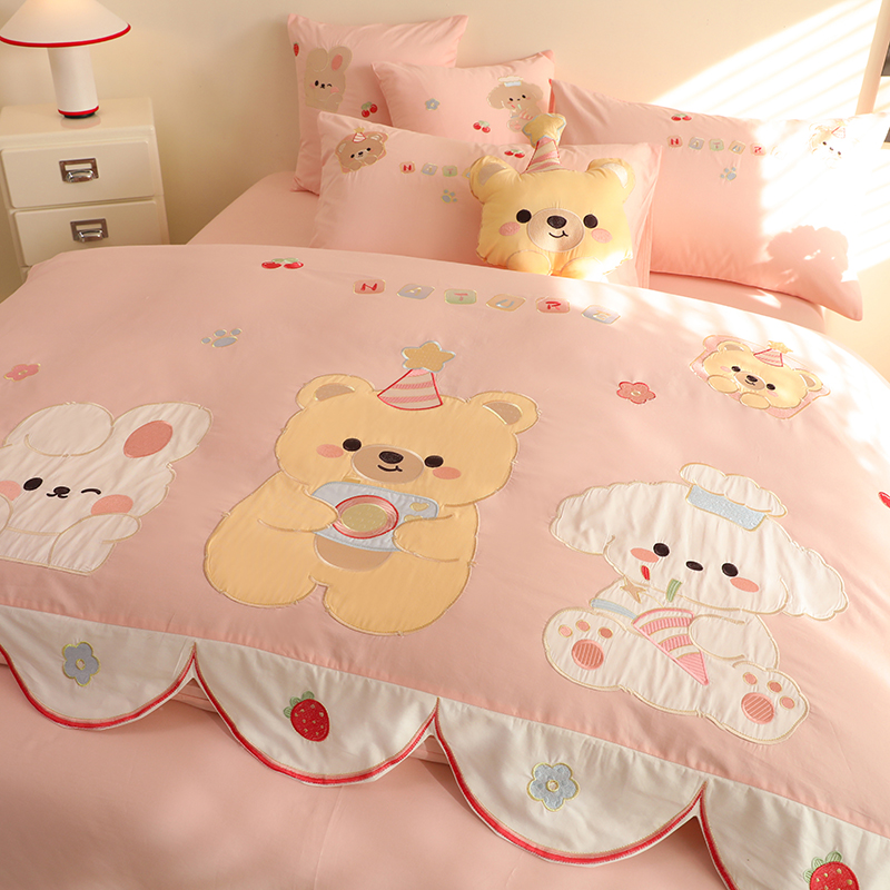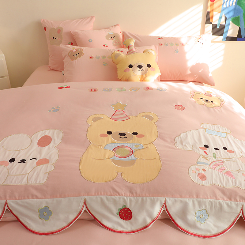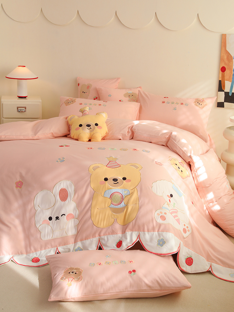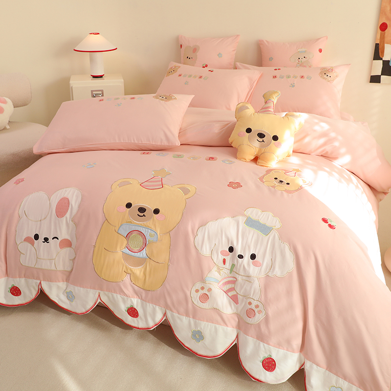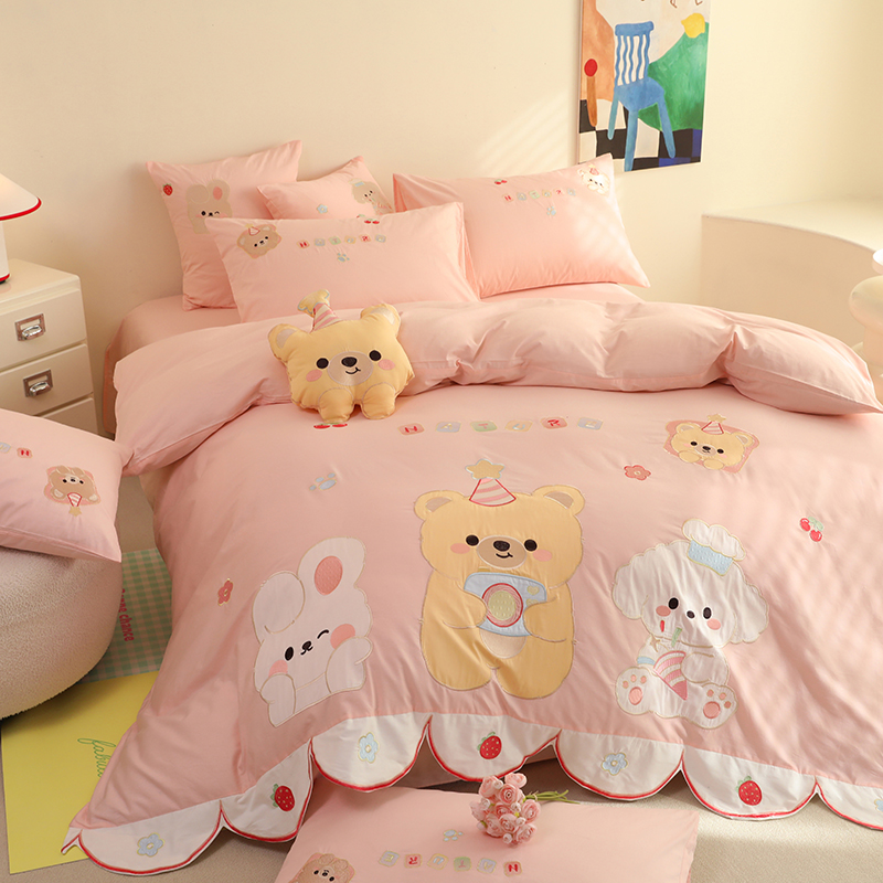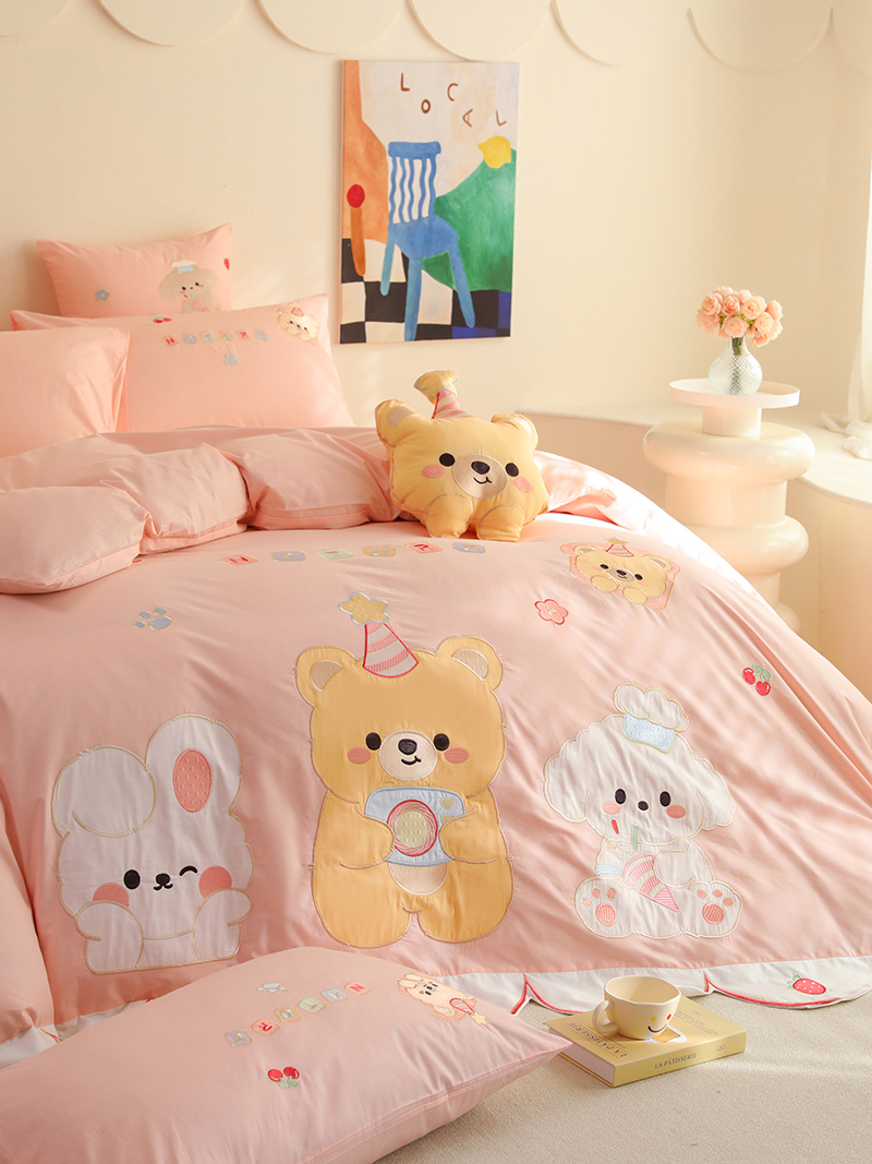 绒棉世家 2025绒棉世家新款全棉水洗棉贴布绣专版四件套 宠物乐园
