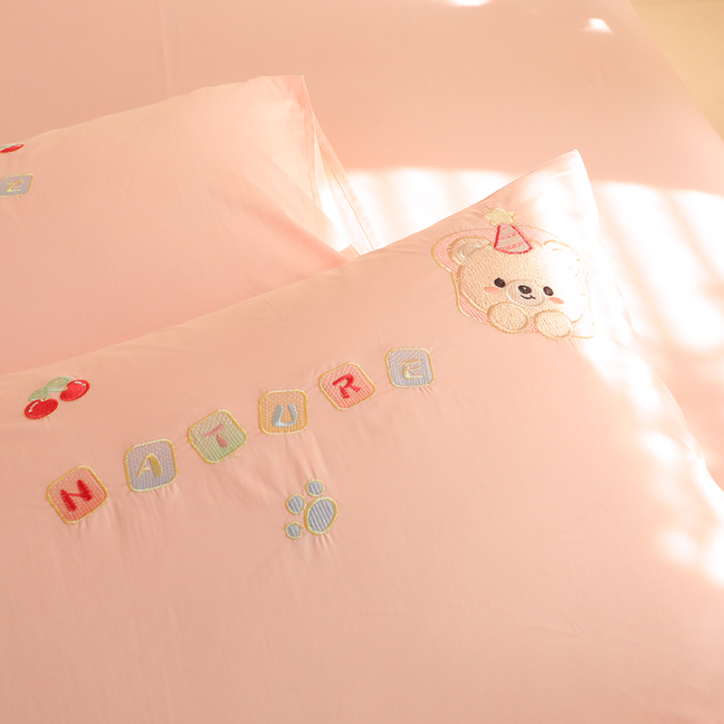 (总)绒棉世家 2025新款贴布绣A类牛奶绒高克重四件套-粉色草莓,粉色草莓