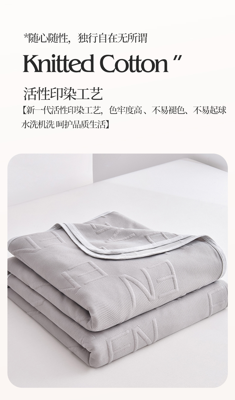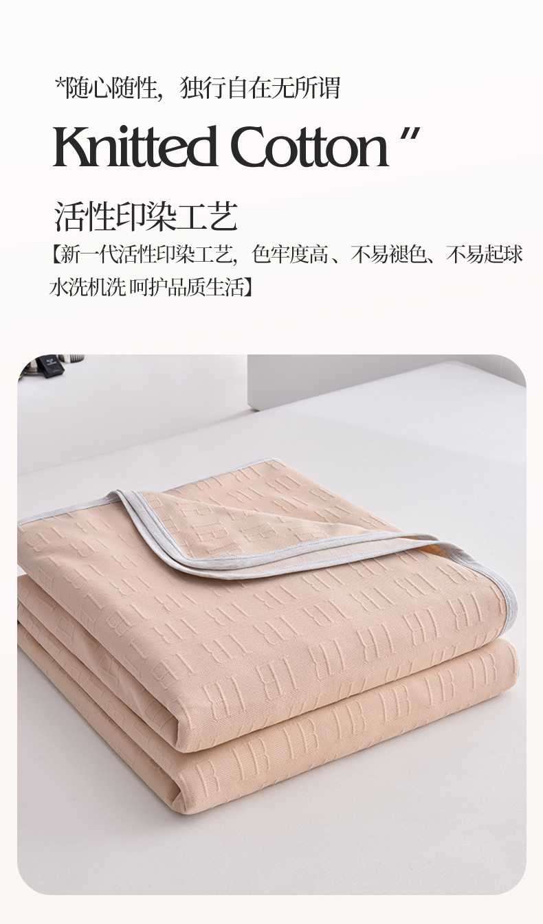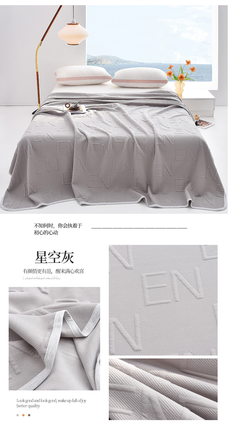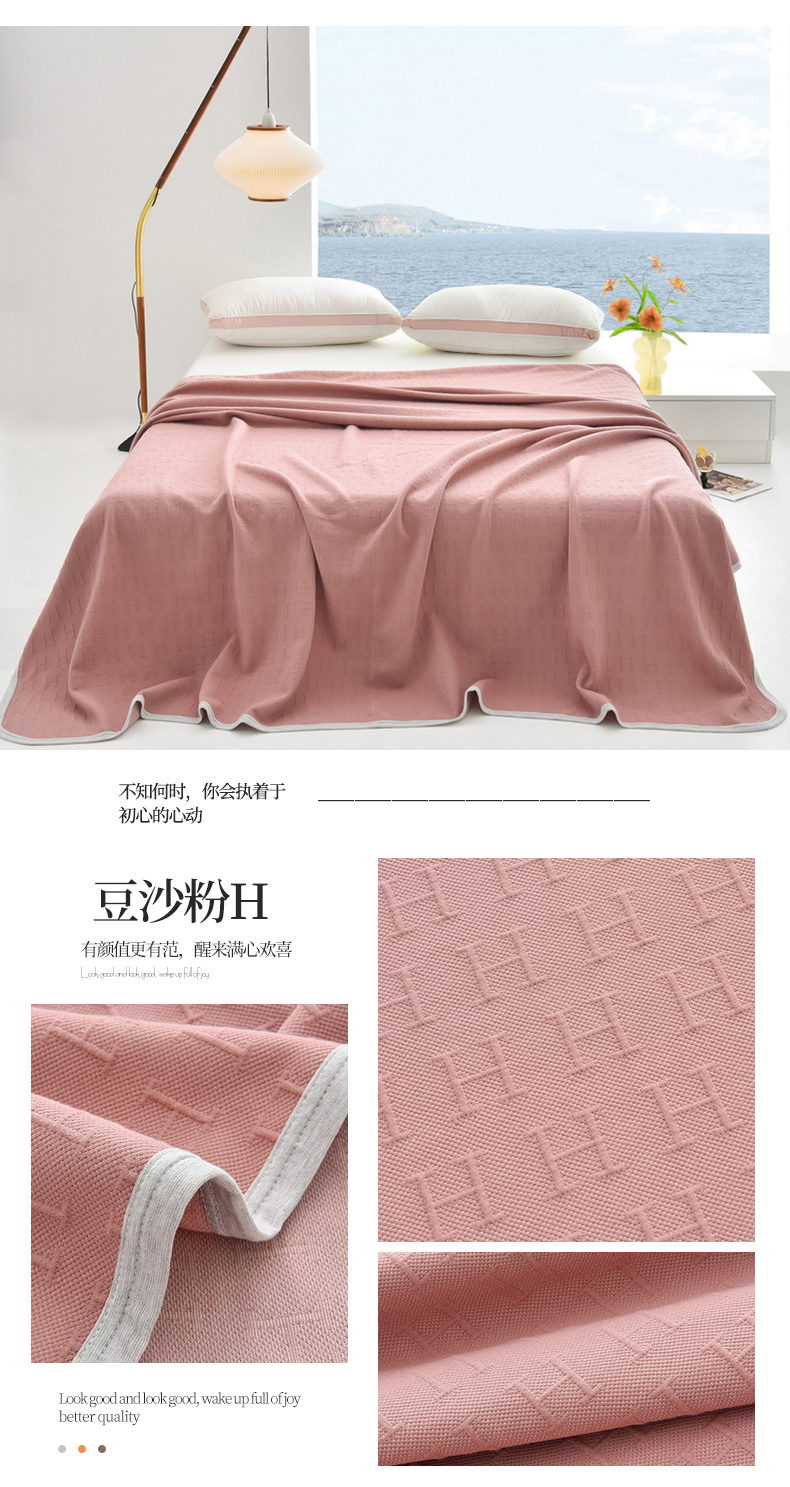 (总)米奈家居 2025全棉针织棉提花多功能盖毯,豆沙粉EN,豆沙粉H,公主粉,莱茵绿,玛雅灰,柠檬黄,绅士灰,天空蓝,香槟金EN,香槟金H,星空灰