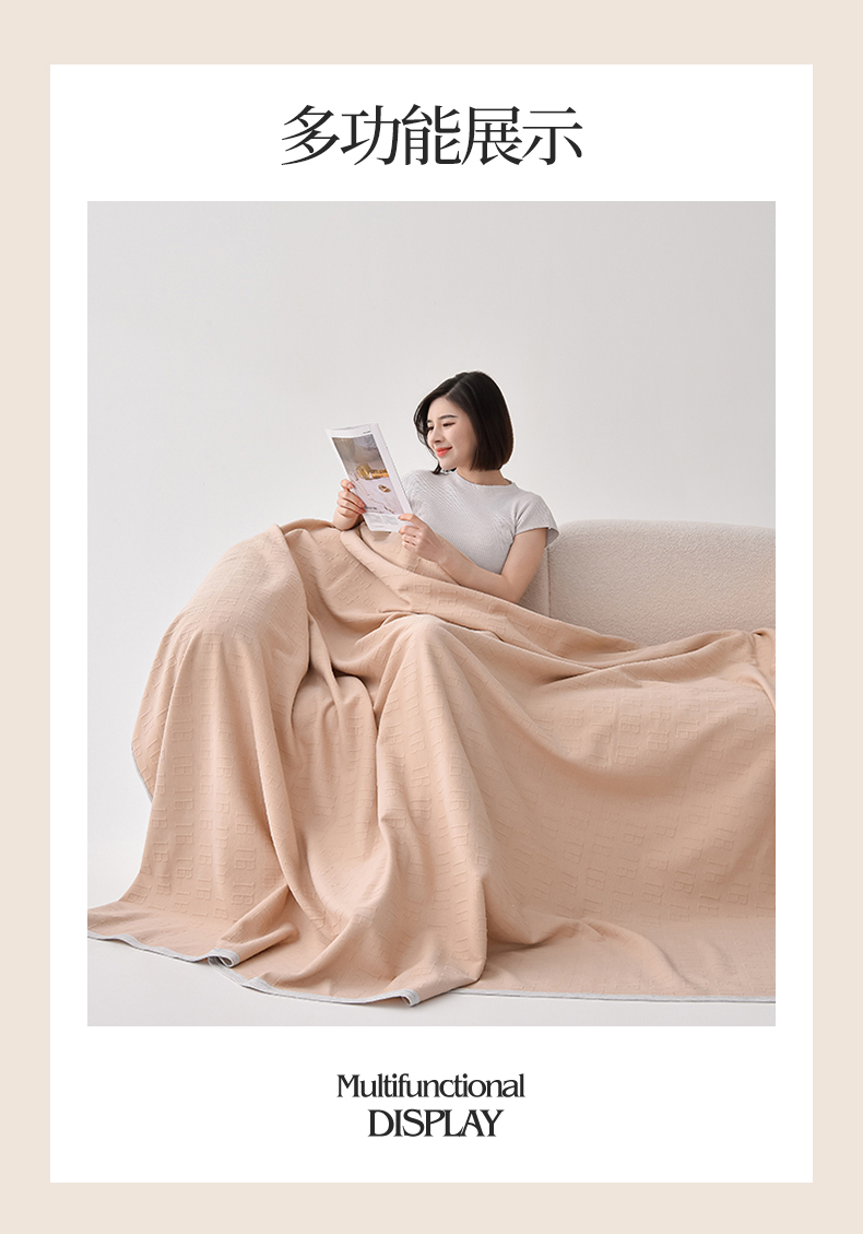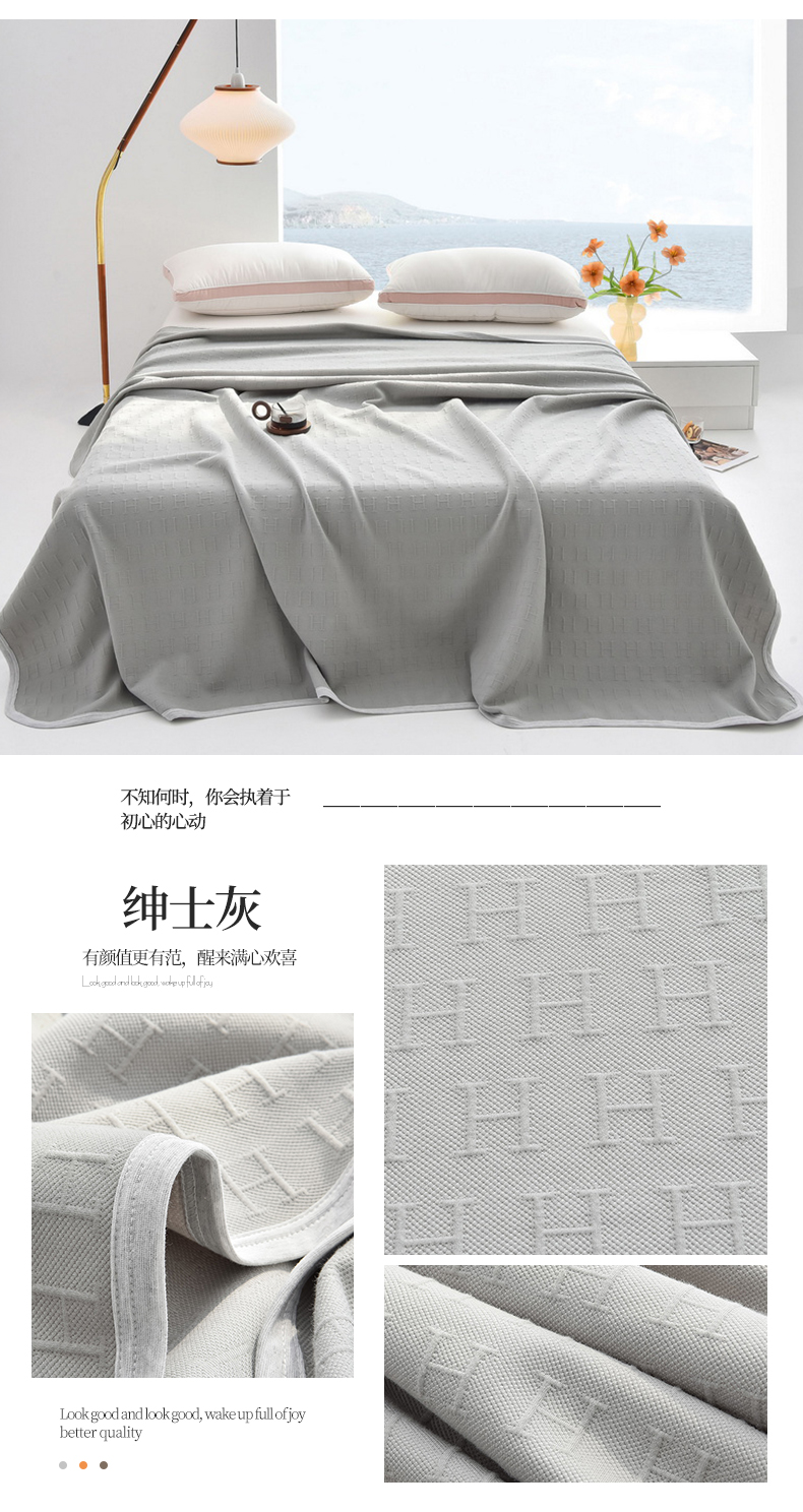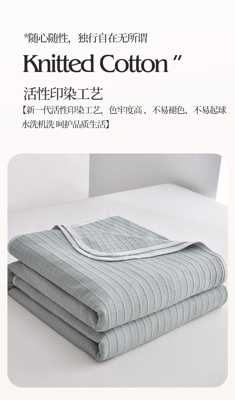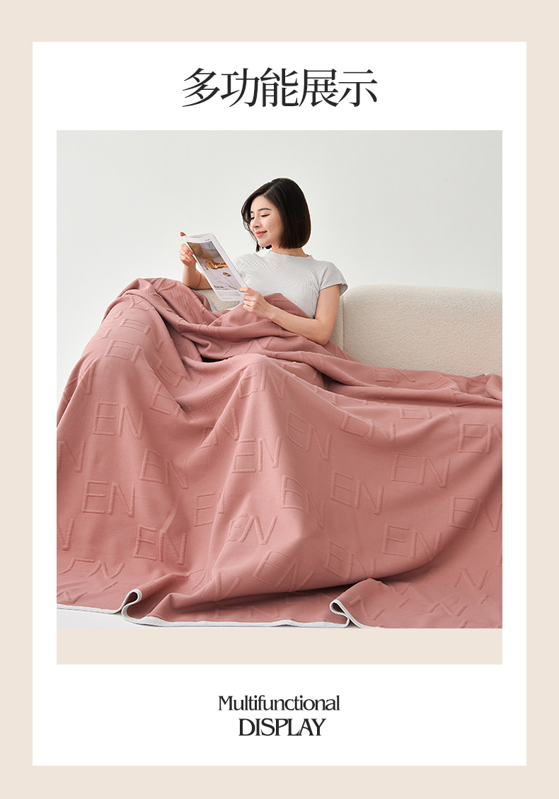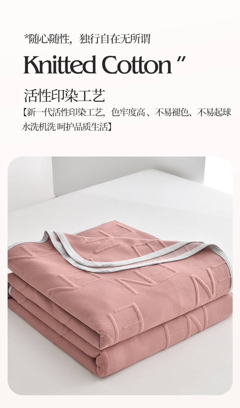 (总)米奈家居 2025全棉针织棉提花多功能盖毯,豆沙粉EN,豆沙粉H,公主粉,莱茵绿,玛雅灰,柠檬黄,绅士灰,天空蓝,香槟金EN,香槟金H,星空灰