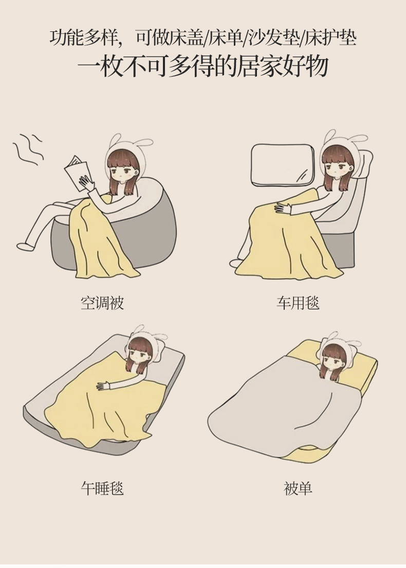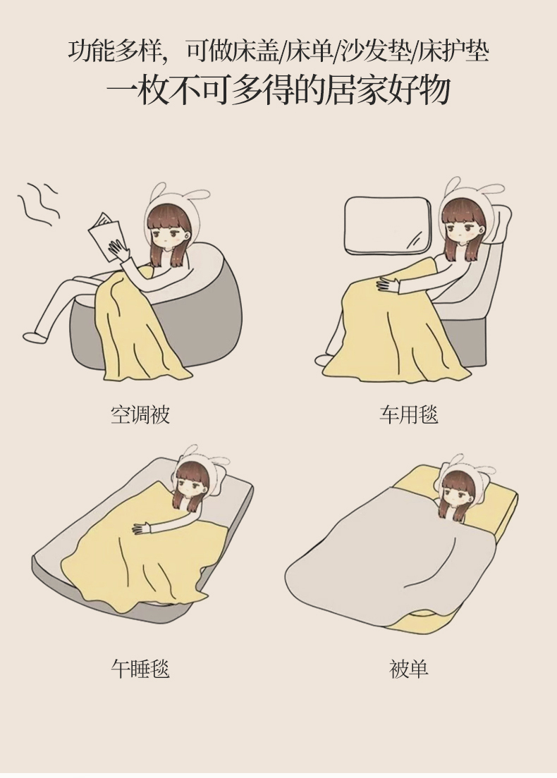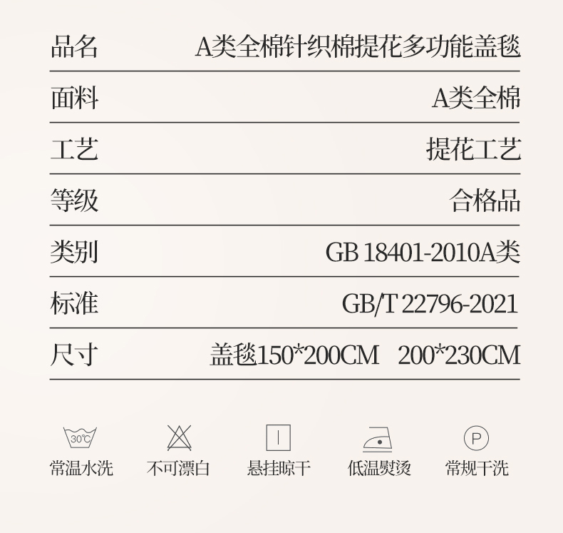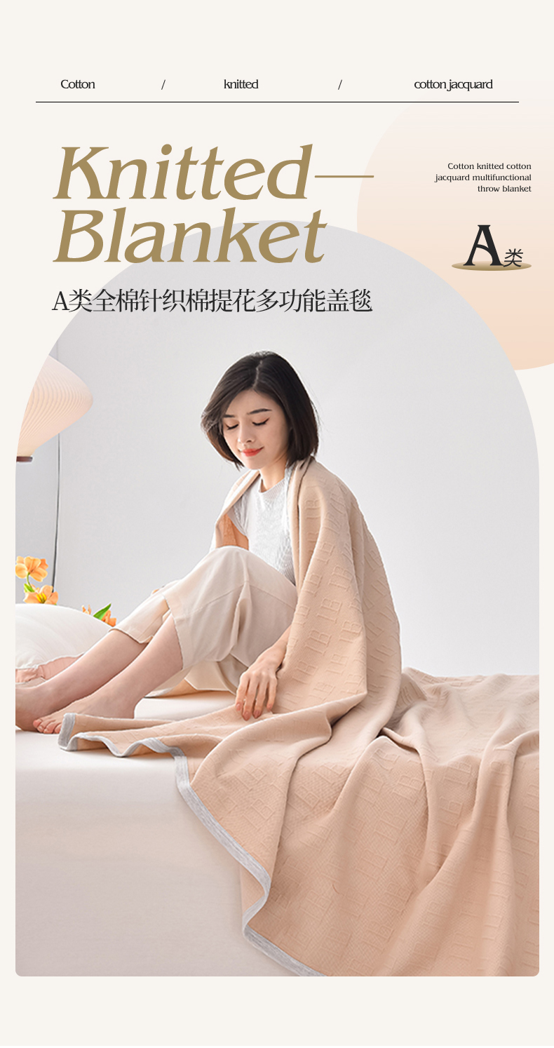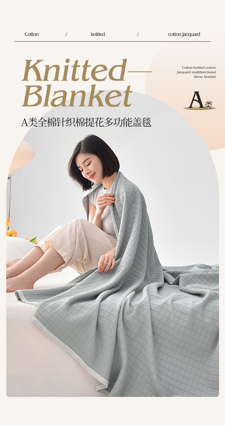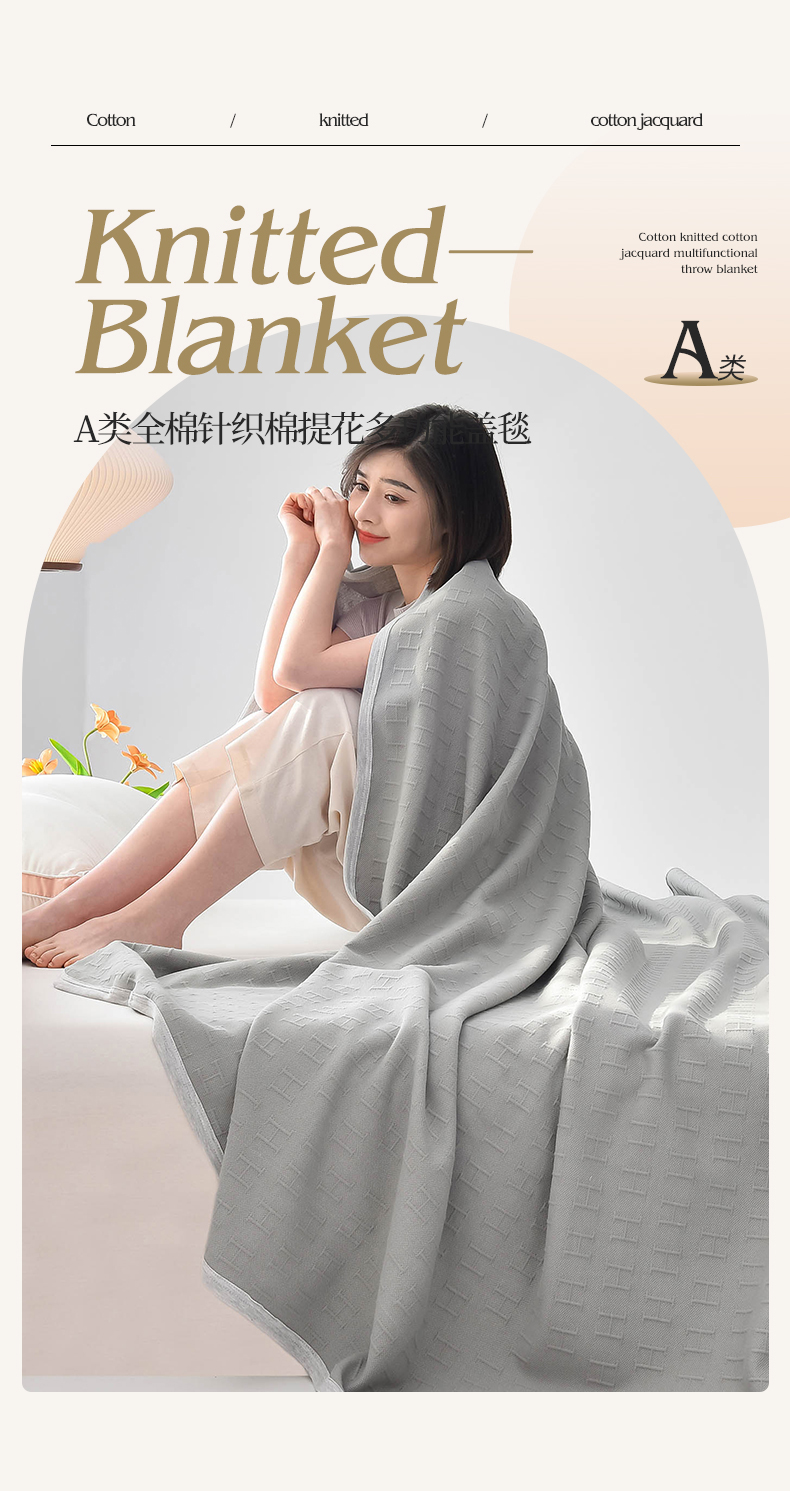 商品名称:(总)米奈家居 2025全棉针织棉提花多功能盖毯