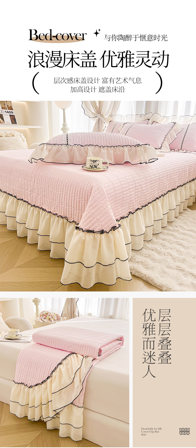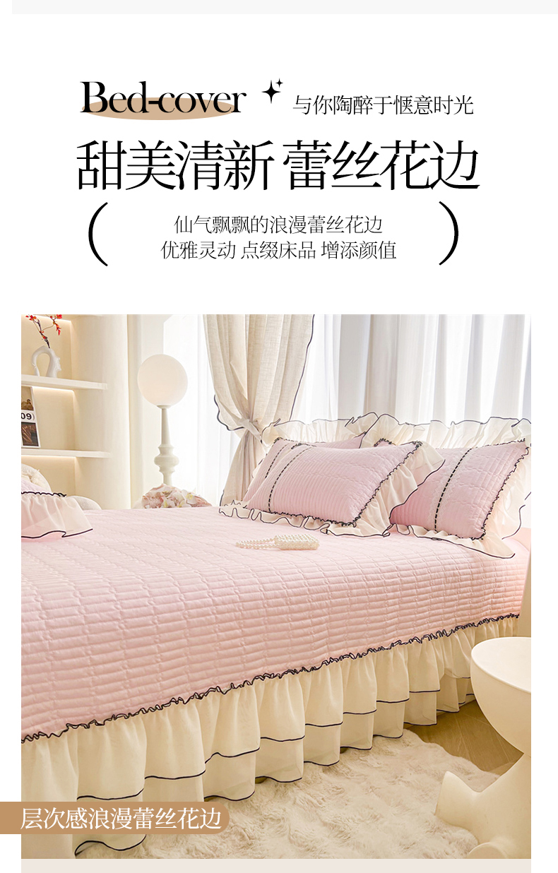 鑫棉坊 2025年新款全棉床盖三件套-花影倾梦 花影倾梦-樱花粉