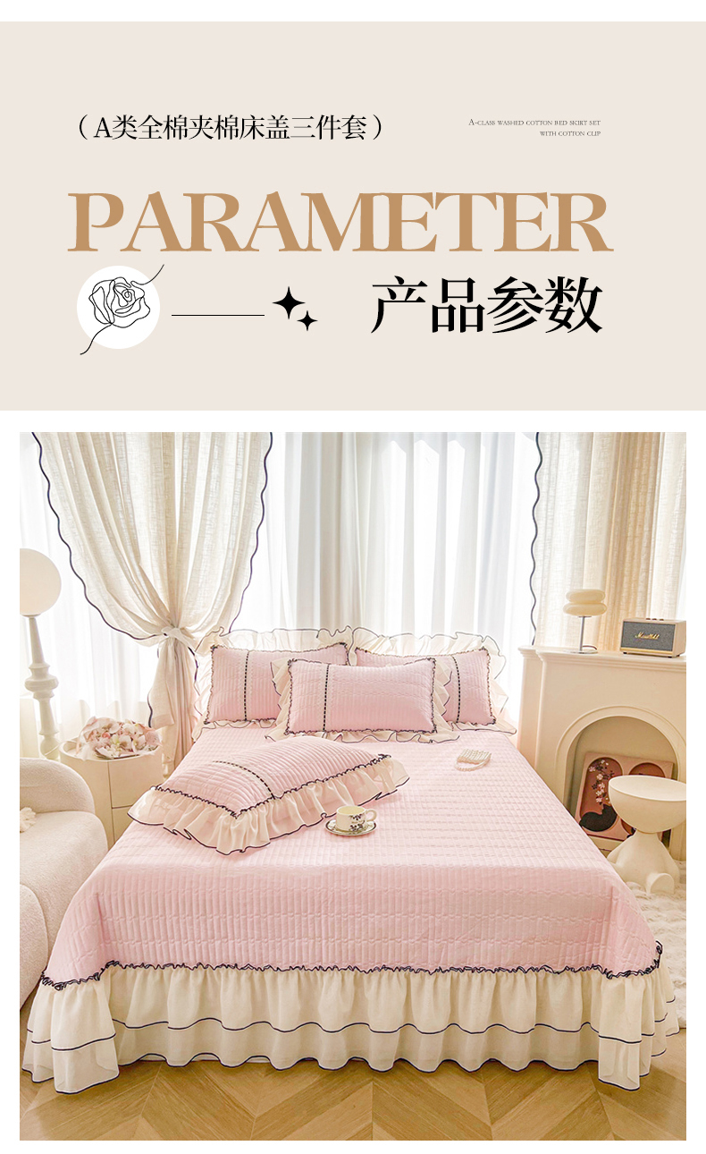 商品名称:鑫棉坊 2025年新款全棉床盖三件套-花影倾梦 花影倾梦-樱花粉