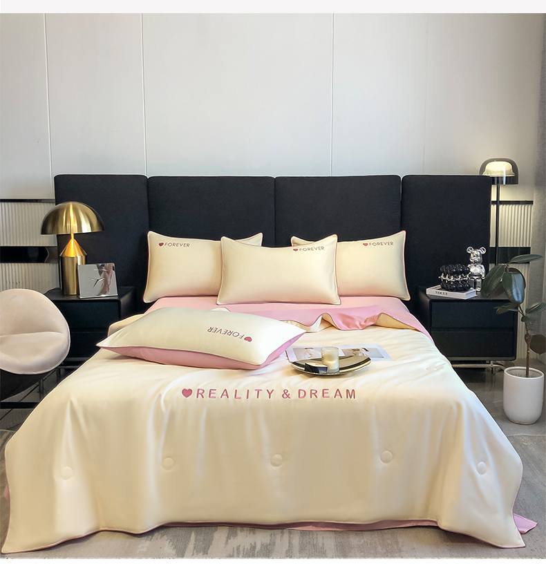 • 91家纺网 家纺一手货源 找家纺 吾诺 2025 双拼及羽毛刺绣夏被四件套绣花夏被水洗天丝夏被水洗真丝夏凉被空调被 奶黄-豆沙