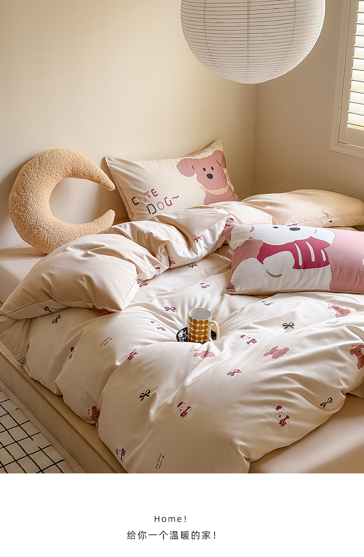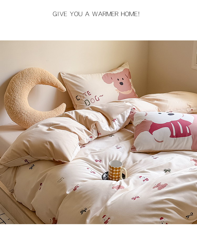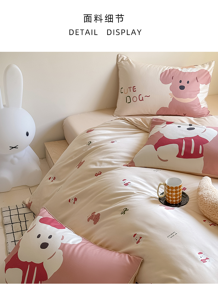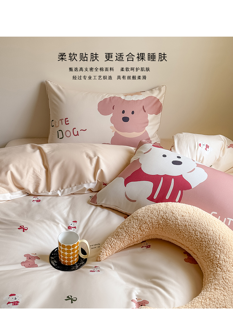 Mr.pig猪先生水洗棉 2025新款50贡缎长绒棉数码印花嵌绳四件套 俏皮狗